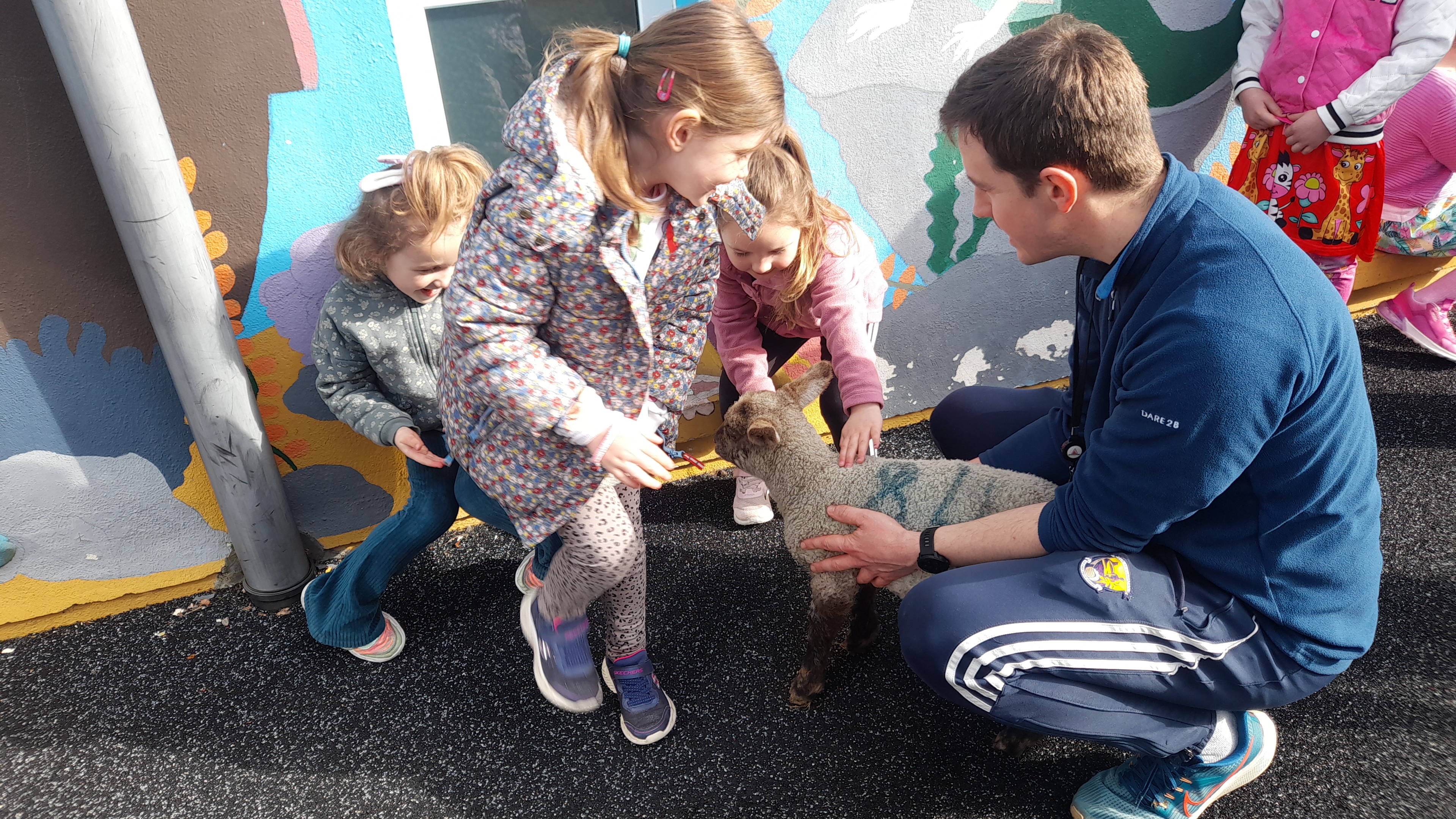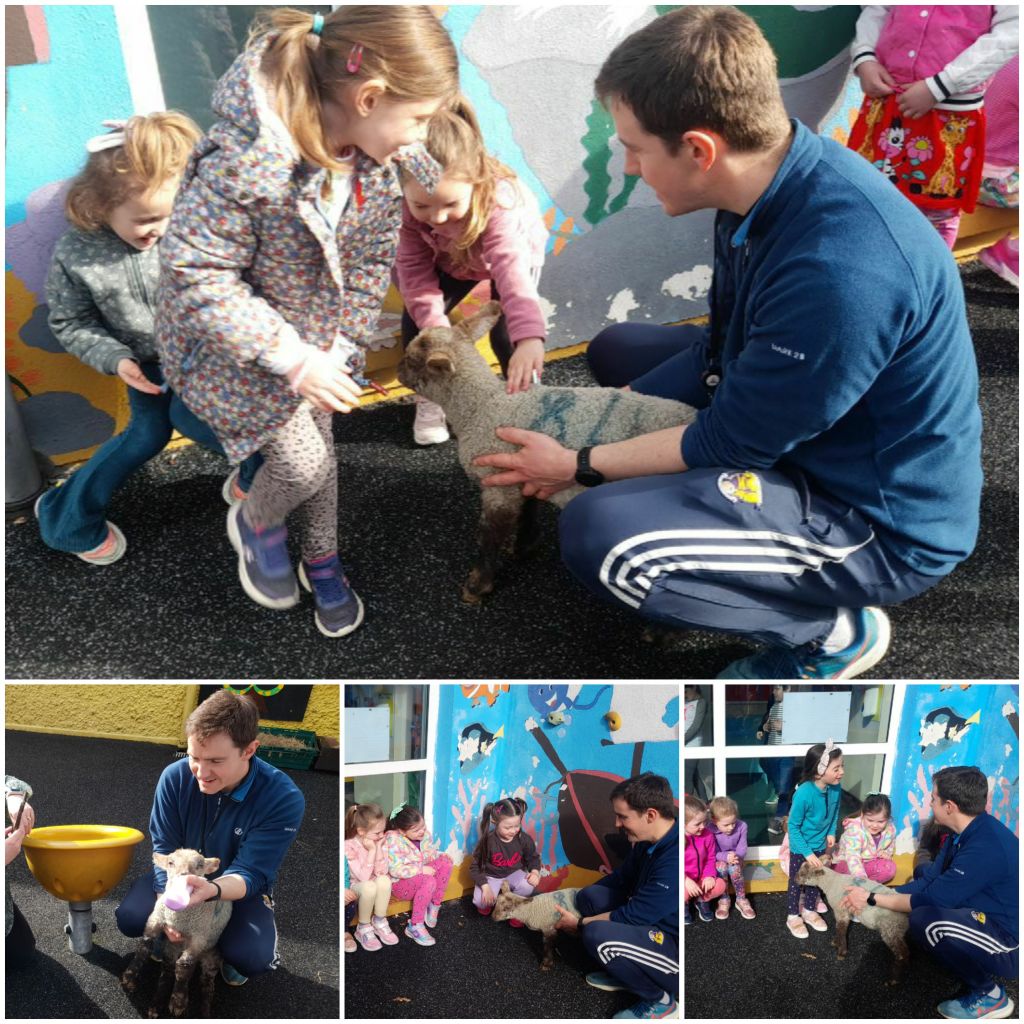 We had two very special visitors in our school on Thursday 18th April. SNA/par-time farmer Pat kindly brought two of his newest additions in to see all the children. We asked Pat lots of questions and found out a lot of information about lambs!