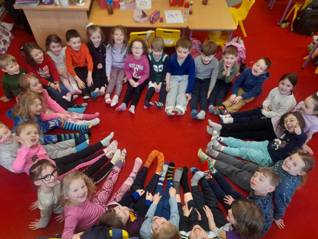 Junior Infants were ‘rockin’ their funky/colourful/odd socks on March 21st to mark World Down Syndrome Day. The theme this year ws “With us, not for us.” For more information on World Down Syndrome Day go to https://downsyndrome.ie/whats-happening/world-down-syndrome-day/