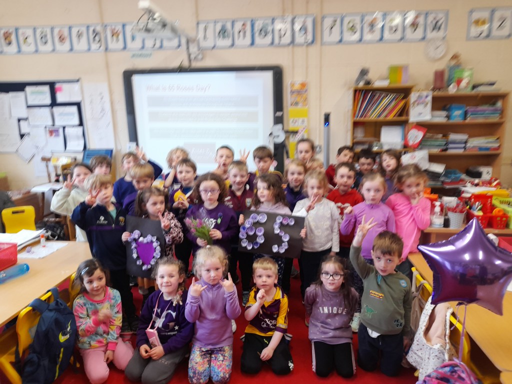 14th April was the National Awareness Day for Cystic Fibrosis in Ireland. Today, Monday 17th April, we participated in spreading awareness for Cystic Fibrosis and celebrated with our friend Savannah. It will be our first year marking this in our school and as purple is also the colour synonymous with this day, we invited the children to wear purple. Junior infants marked this day of awareness and celebrated our friend in style!