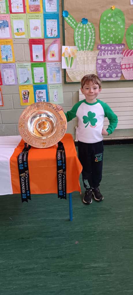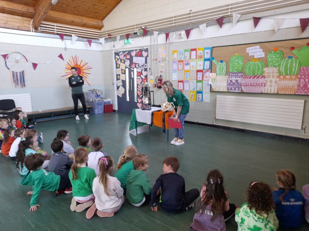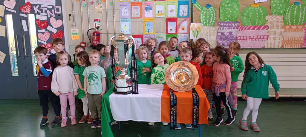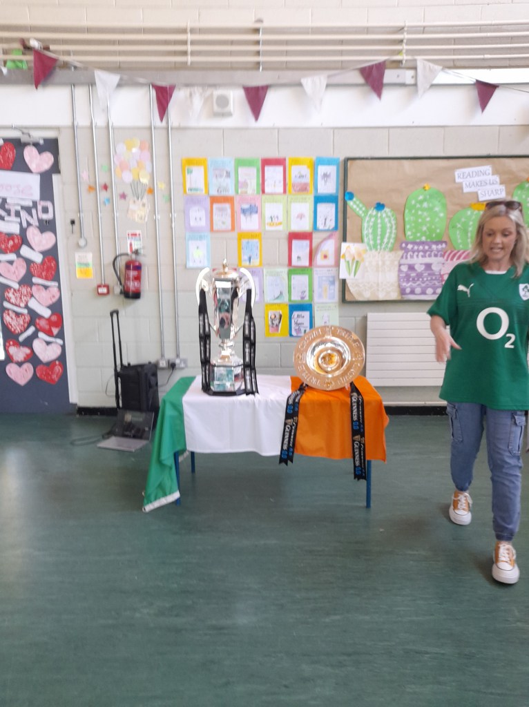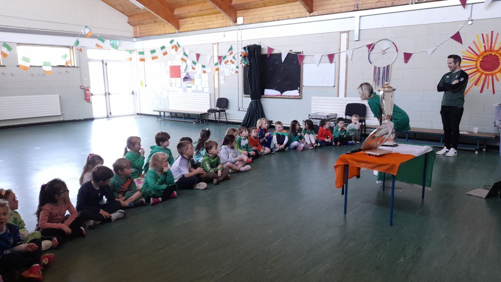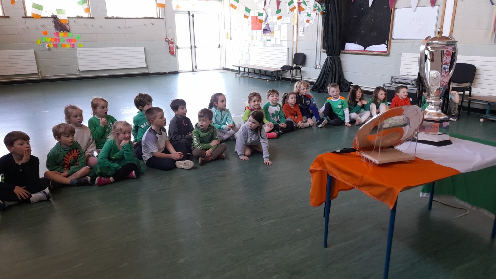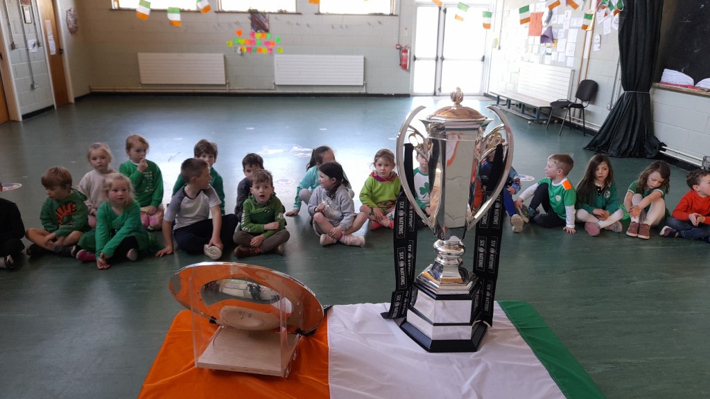 The boys and girls of Piercestown National School were honoured to be able to catch a glimpse of the 6 Nations and Triple Crown in school today. Rory Wilson Senior Team Operations Executive at Irish Rugby Football Union (IRFU) and past pupil of Piercestown National School answered our many questions and gave us the amazing opportunity to take some photos too!