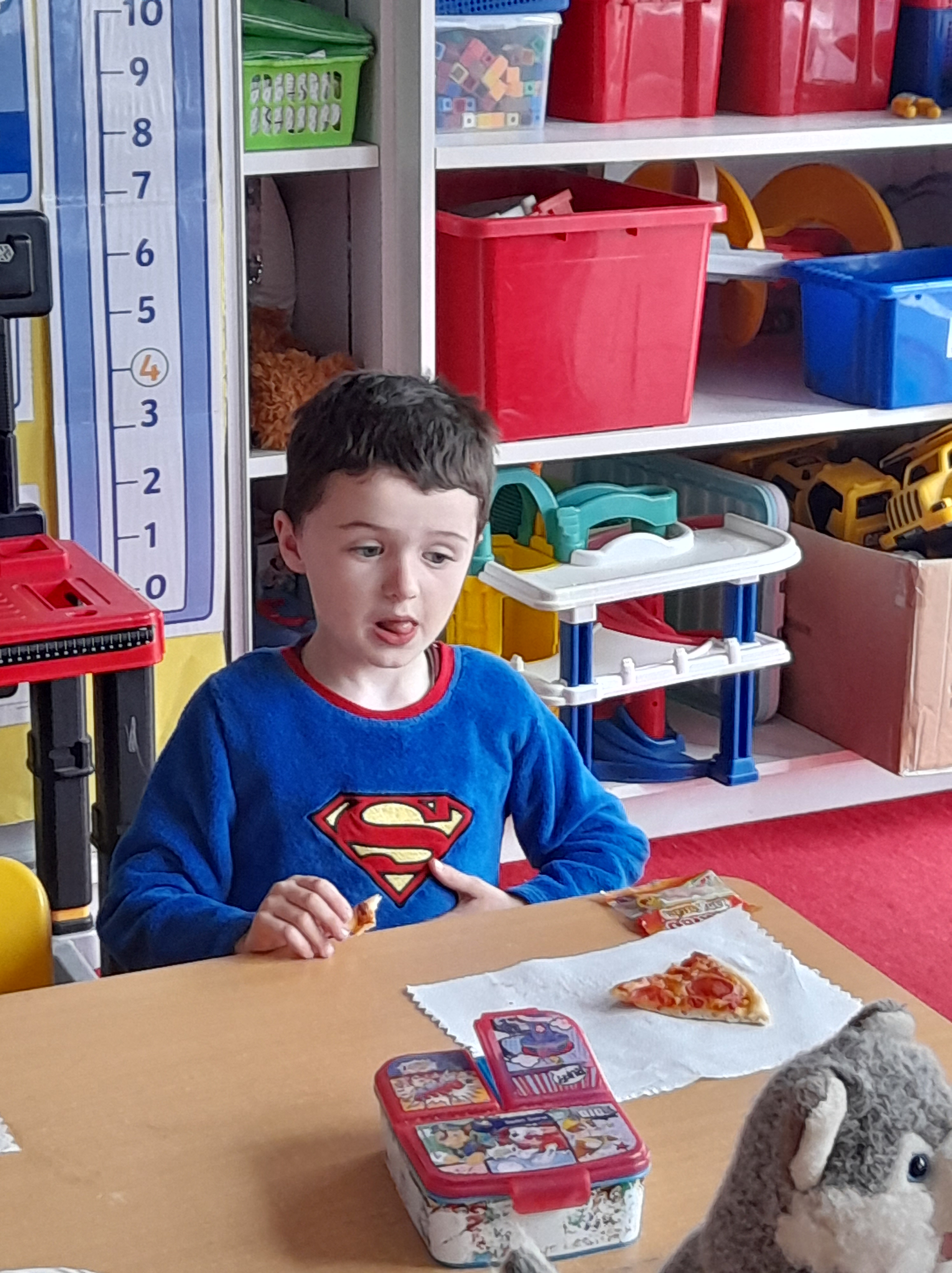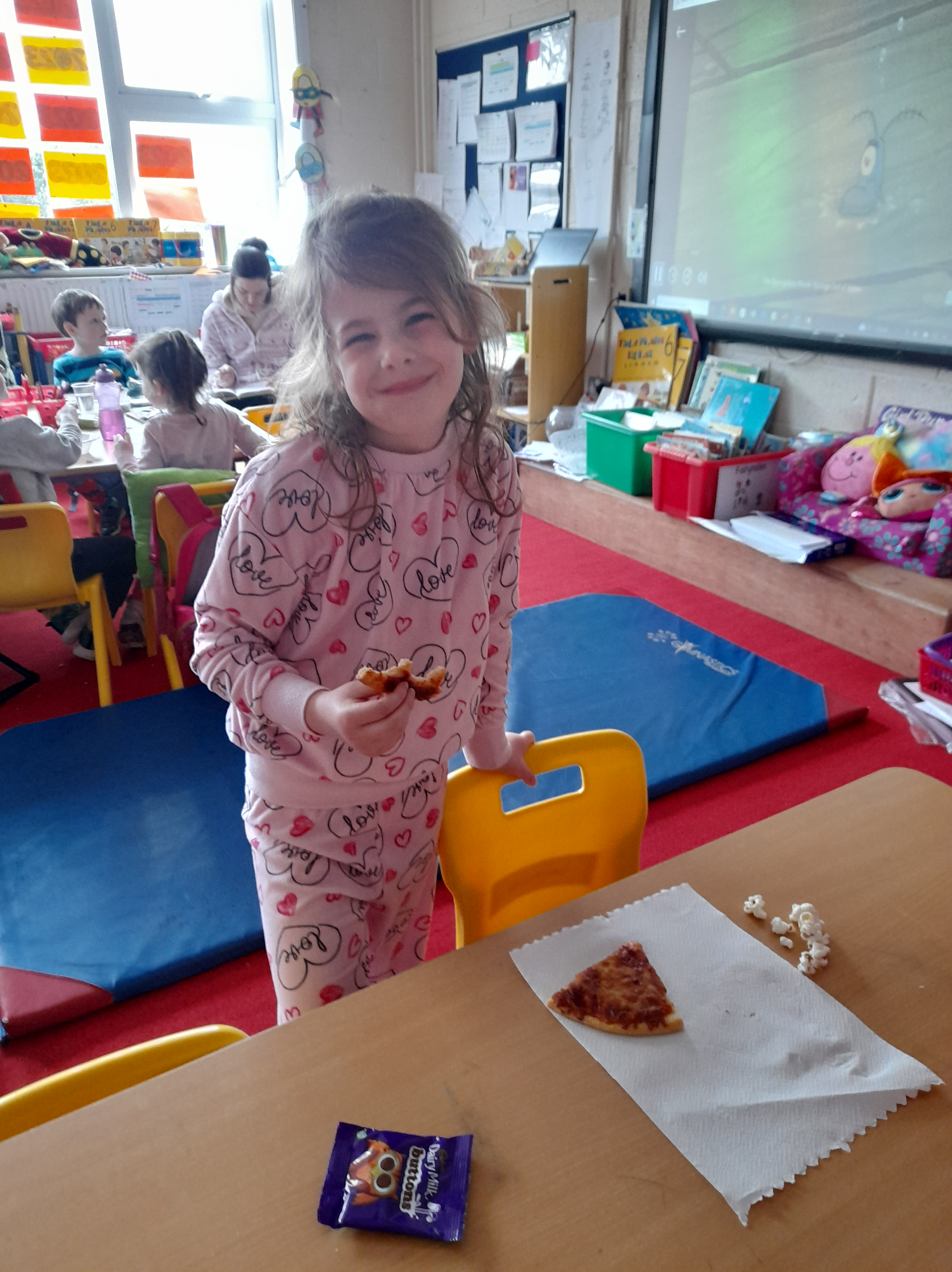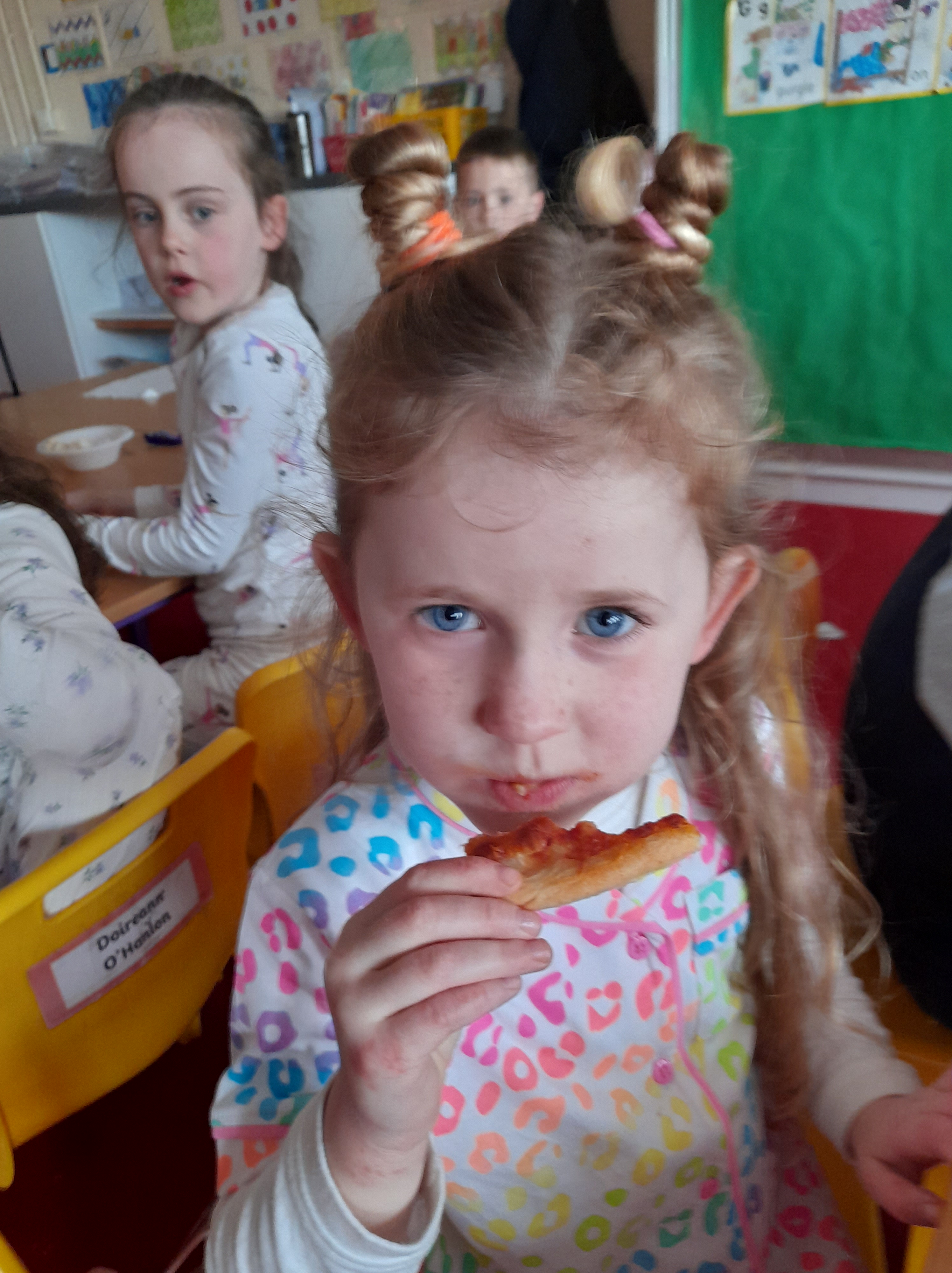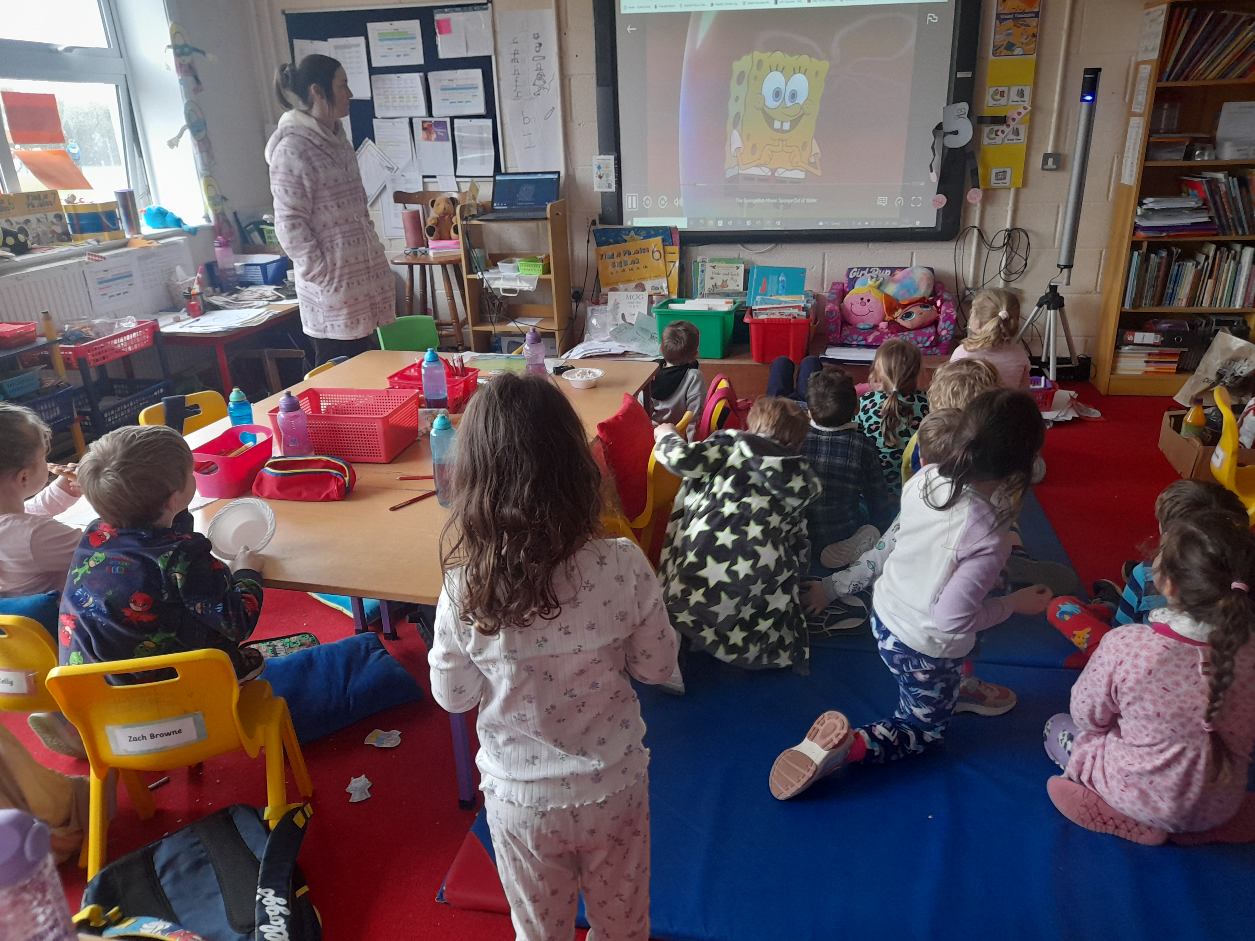Junior Infants worked diligently for the month of March and were awarded a PIZZA PARTY for being Class of the Month. They had a great afternoon stuffing themselves with pizza, popcorn and treats while watching SpongeBob SquarePants!