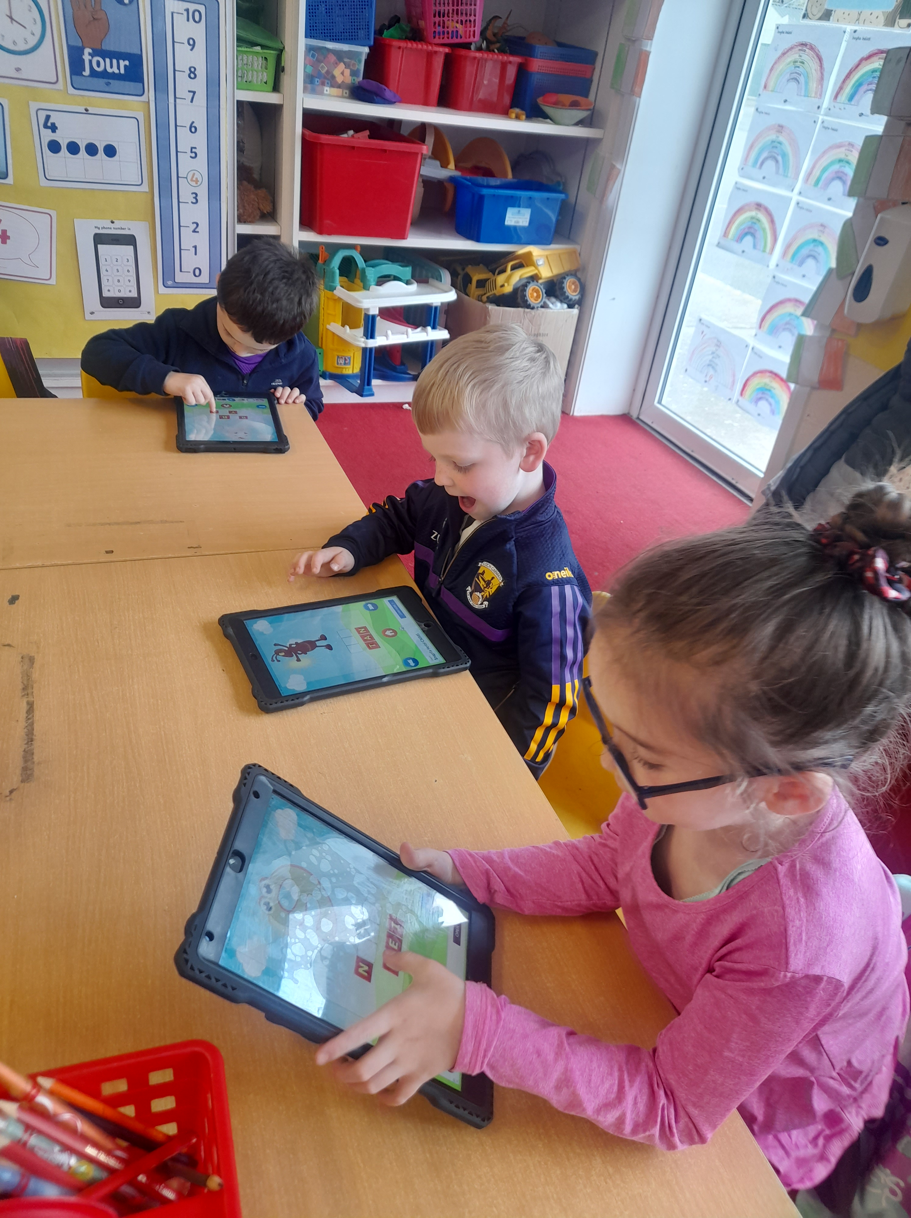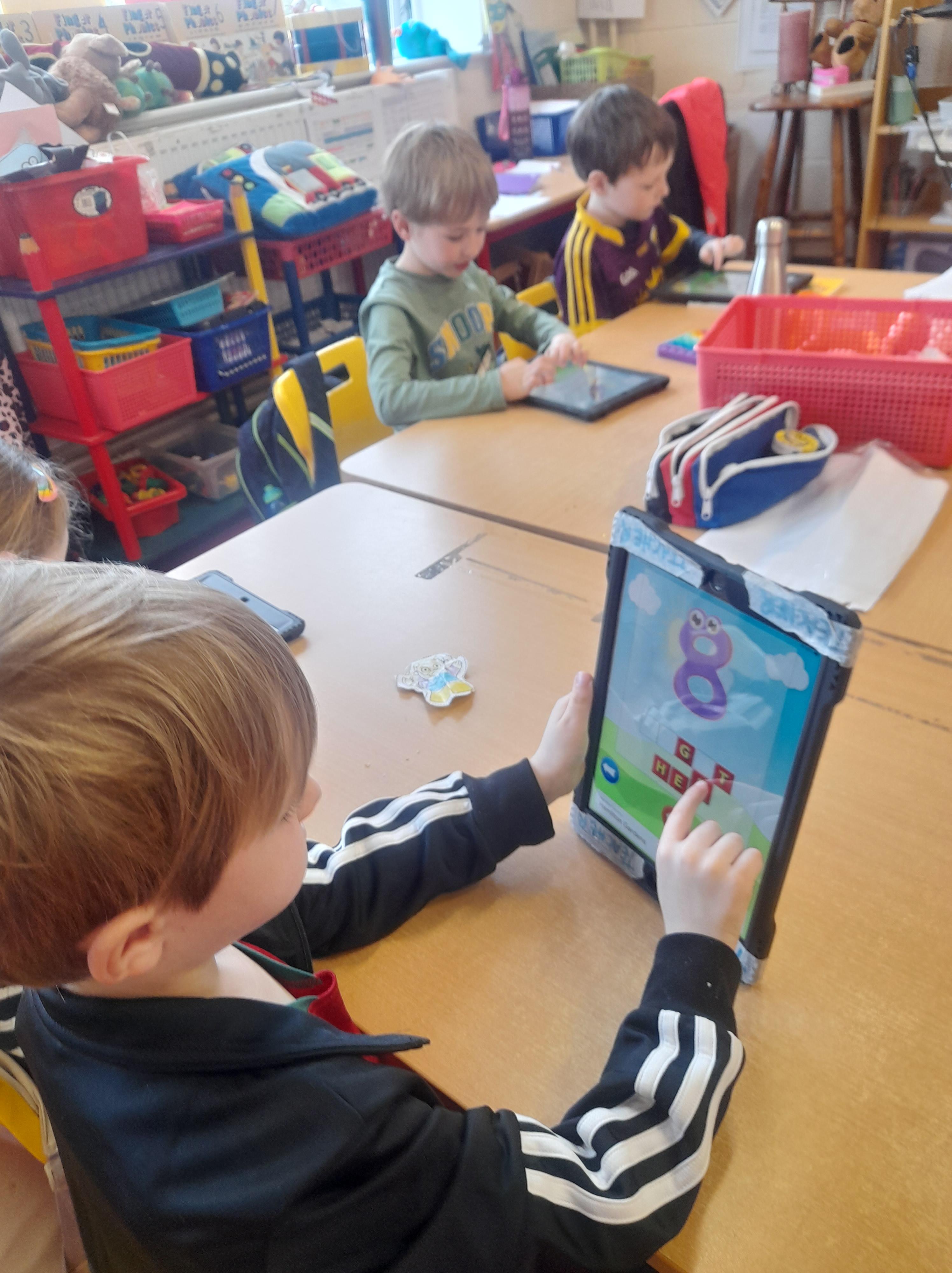 Junior Infants thoroughly enjoyed blending using the Spelling Bugs app and continuing their number work using Numberblocks. They were so diligent they even got to spend time exploring the numerous other apps as a reward.