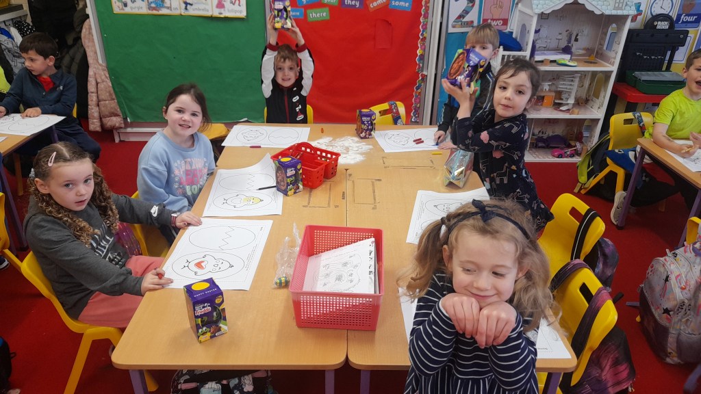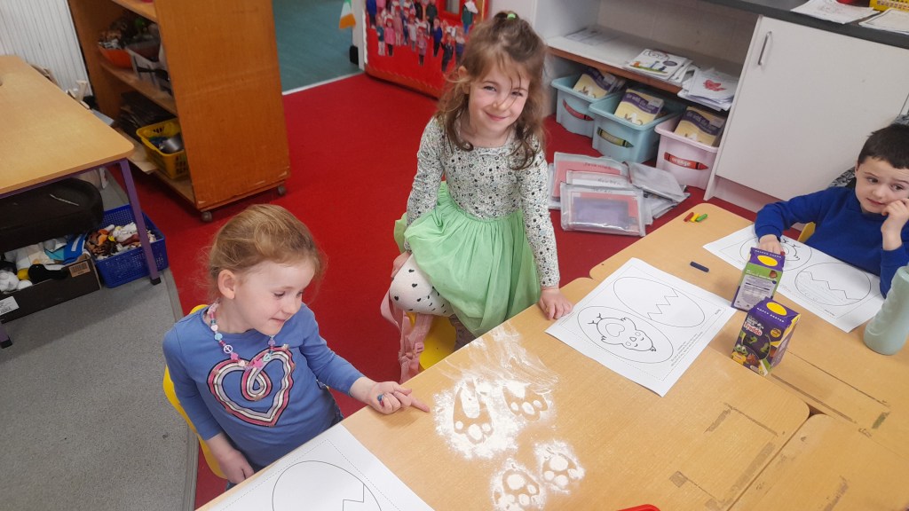 The Easter Bunny hopped by the Junior Infant classroom to leave a special treat for all the amazing, hardworking students on their last day of Term. He even left some evidence of his visit all over their desks! It was smiles and Easter craft all round and they even managed to save their chocolate treats for home.