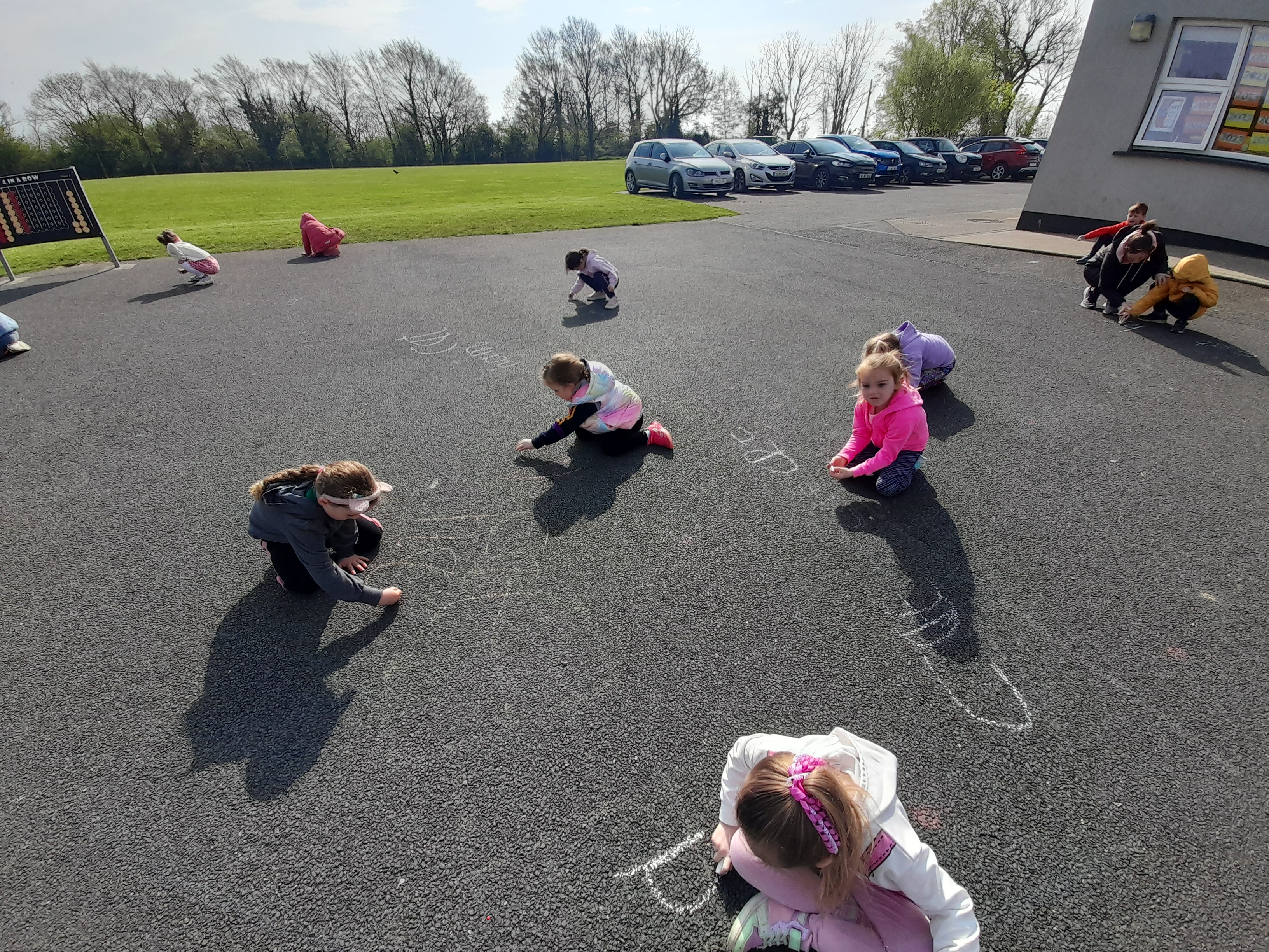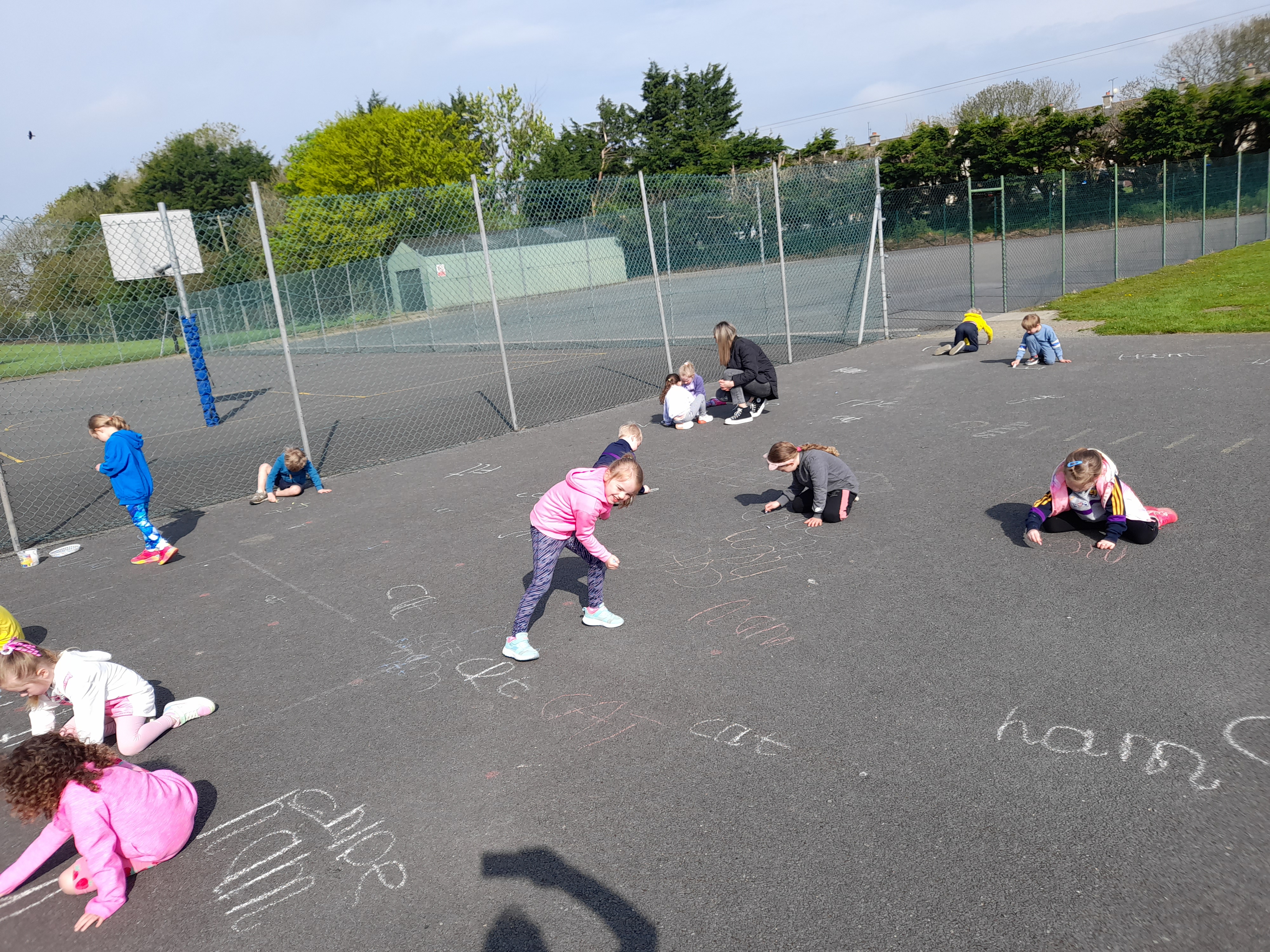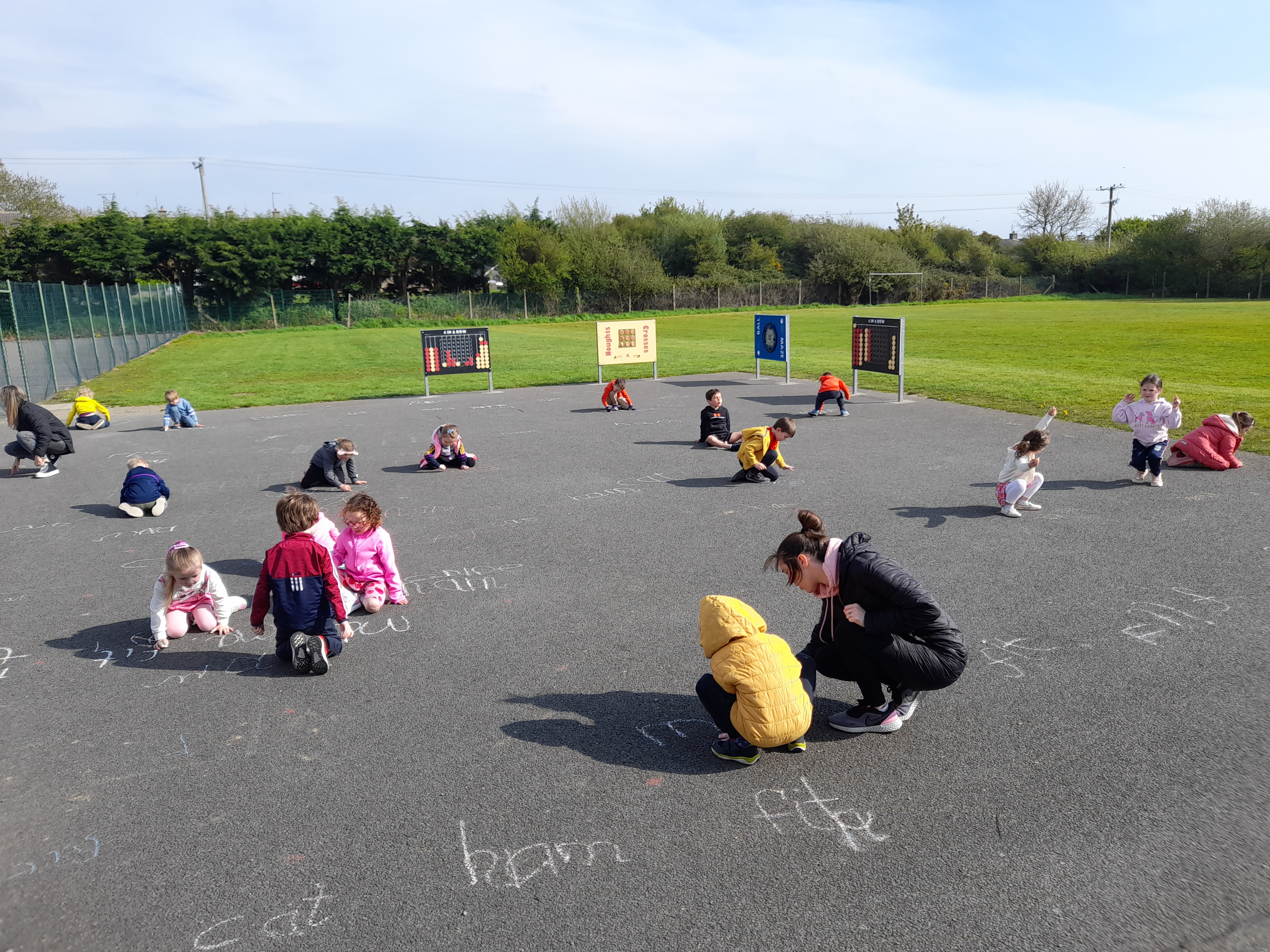 Junior Infants took advantage of the fine weather and headed outside for some blending work this morning. We have some amazing spellers in our midst!