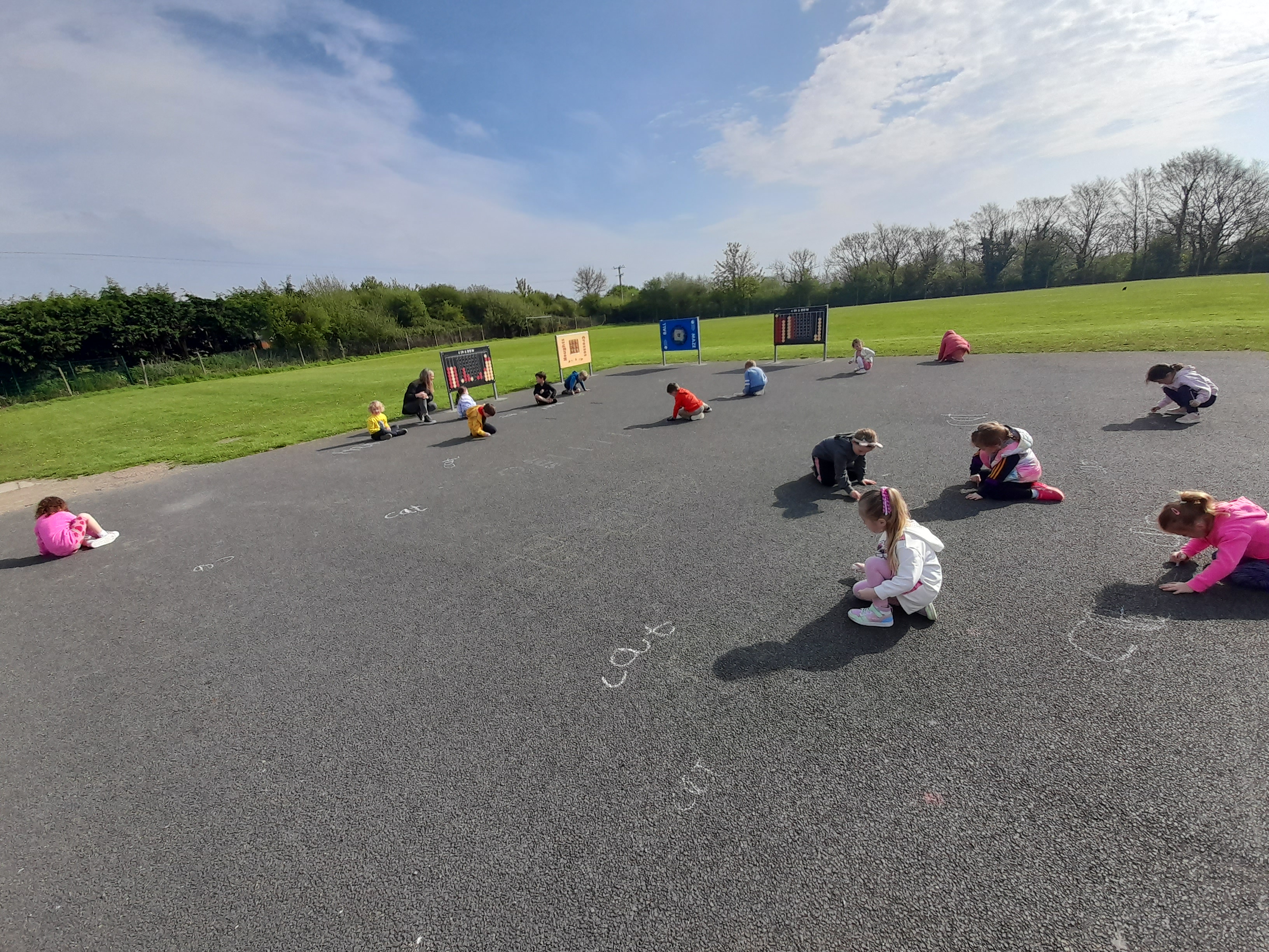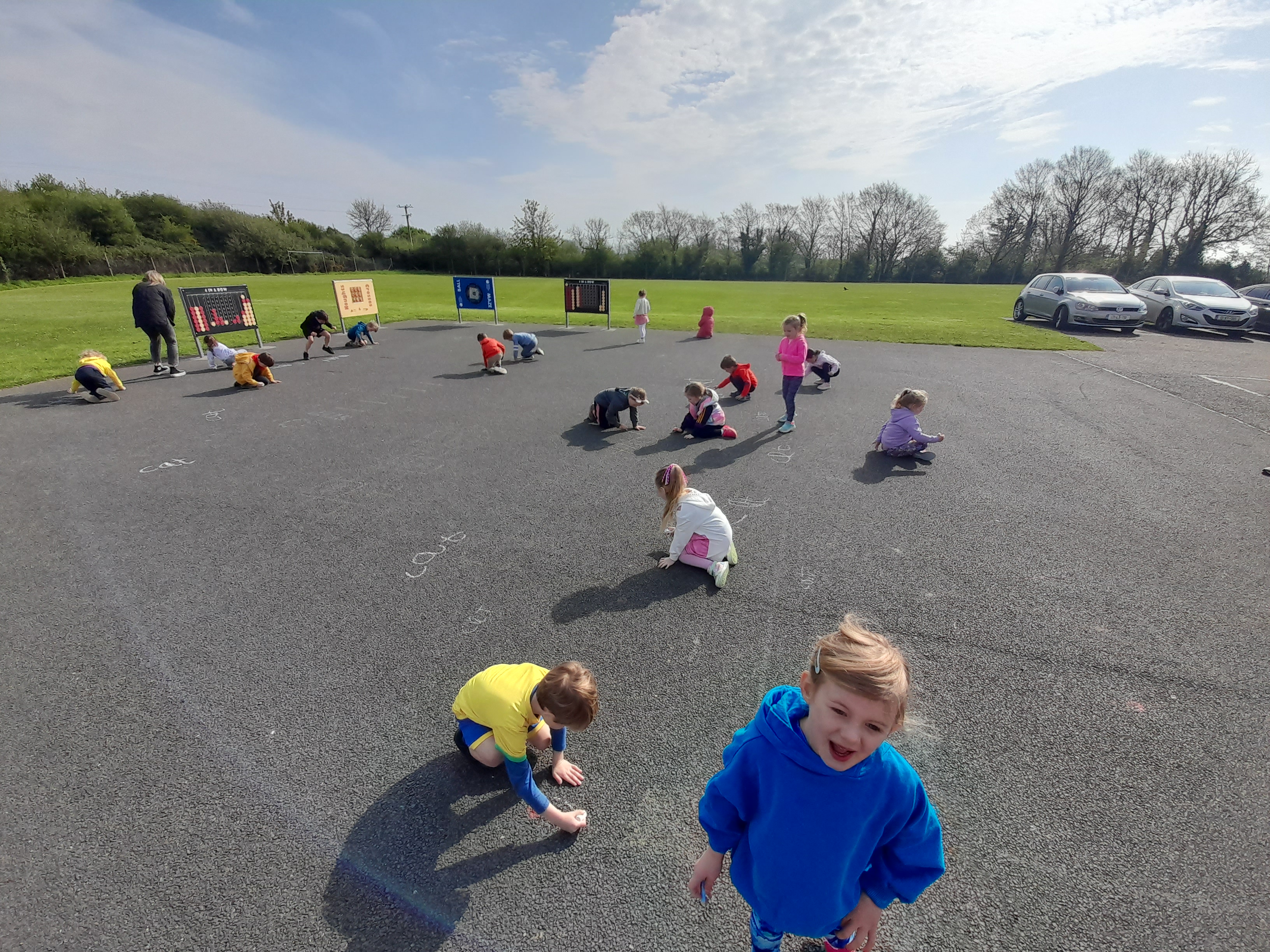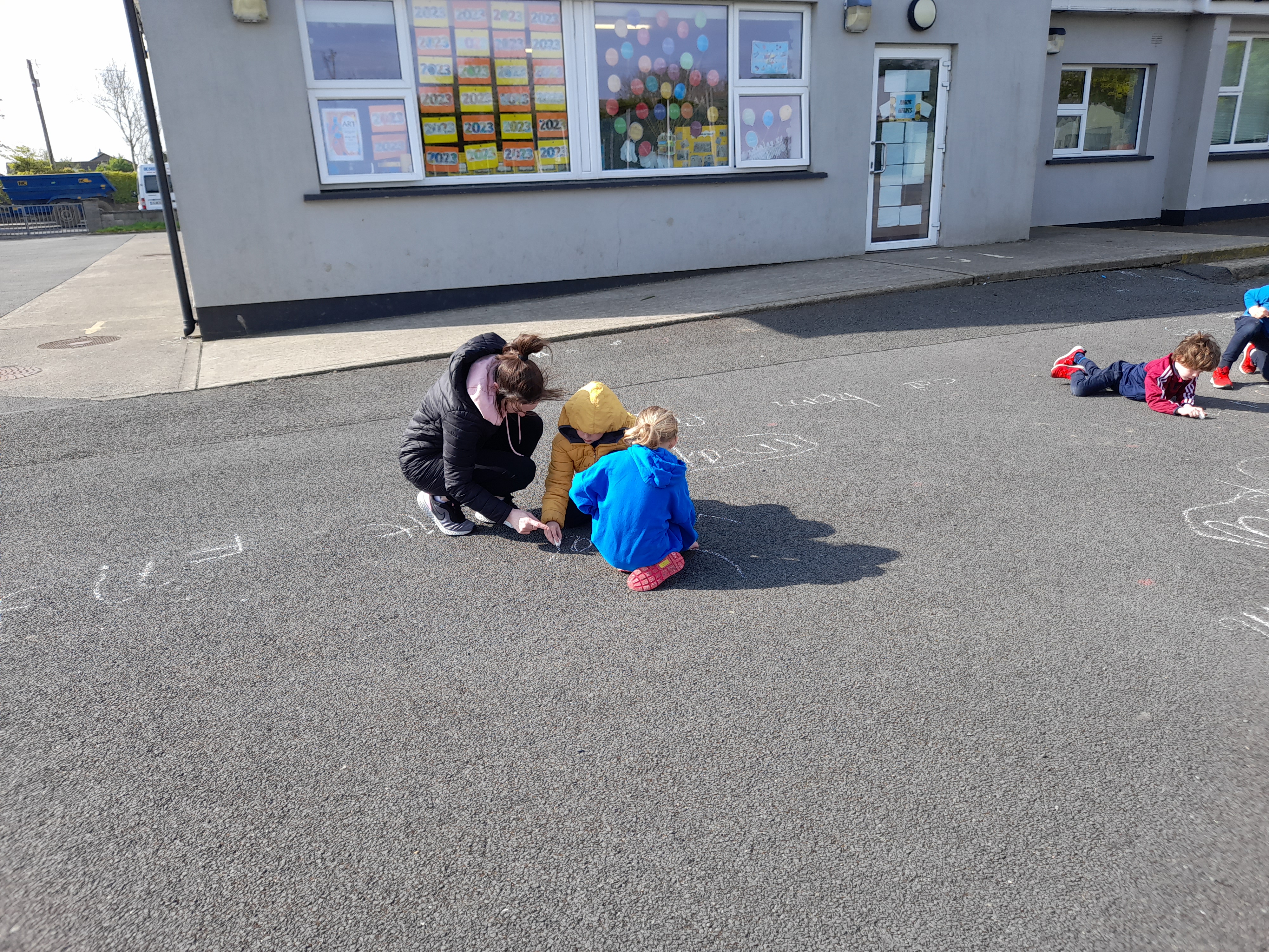 Junior Infants took advantage of the fine weather and headed outside for some blending work this morning. We have some amazing spellers in our midst!