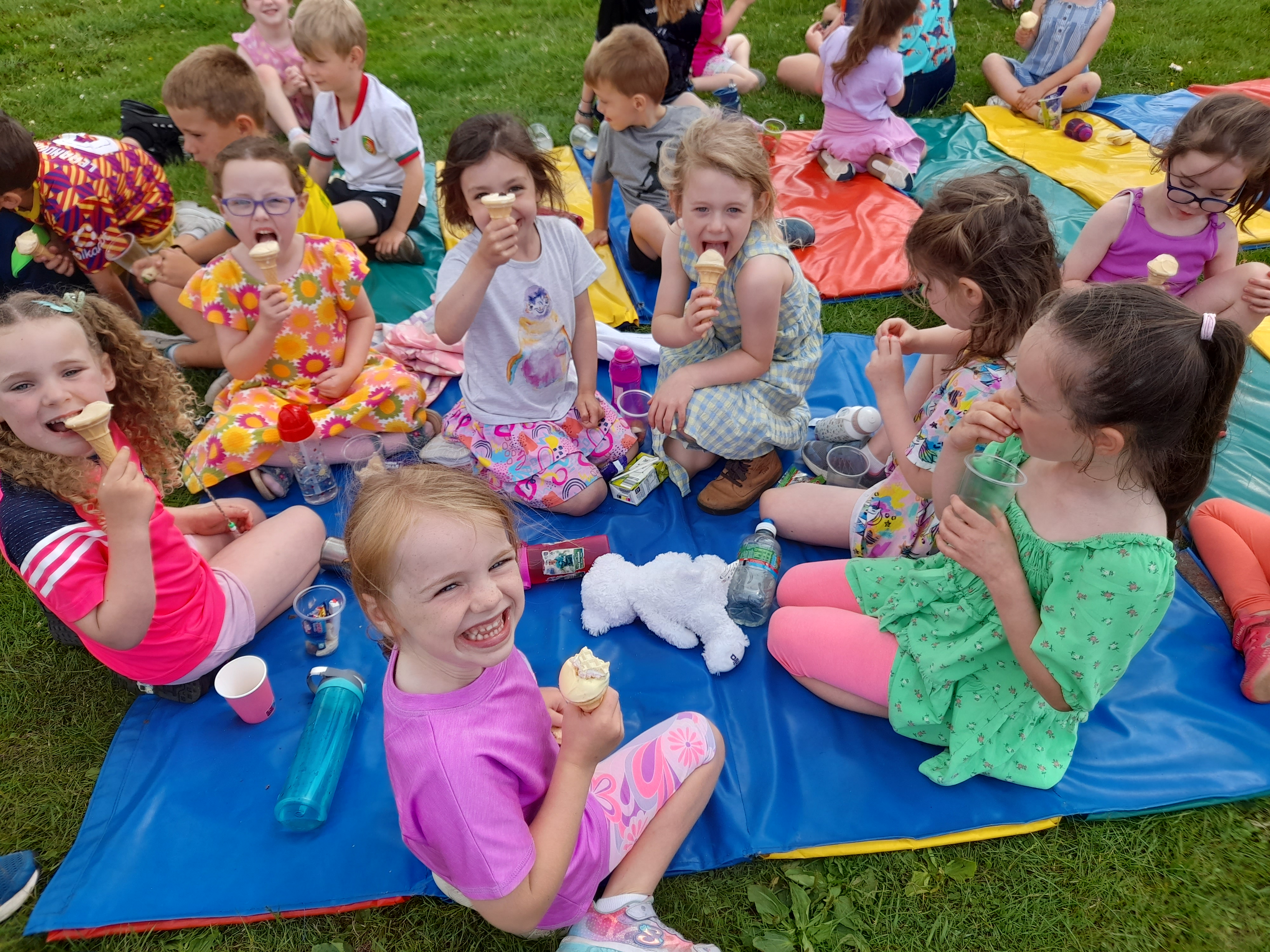 Junior Infants had a well-earned picnic in the sun with their 6th Class friends yesterday. It was treats, ice-creams and plenty of laughs all round today for this special bunch. The children worked hard all year and deserved to kick their heels up and enjoy the rewards. What an amazing way to end the most amazing year!