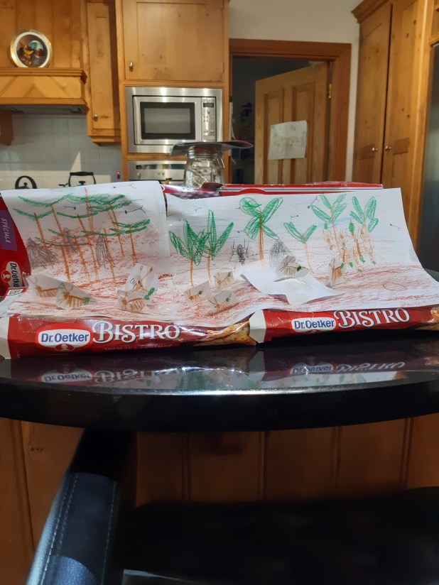 Look there! I’ve made three floating fish, out of an old foam tray.