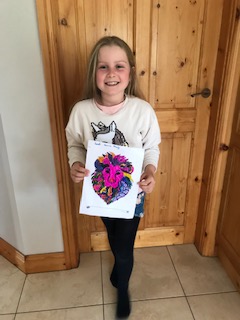 Two of our creative and talented pupils in 2nd class have been using their time at home to draw and with amazing results too. Thanks to Seán for sharing his drawing of his dog Harry and to Joseph for his drawing of a cat and an eye, with a difference! Very impressive boys!
