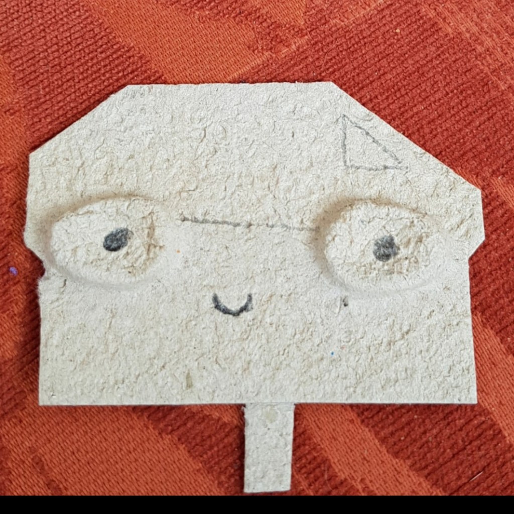 I fold and cut and paint and glue. I’ve made a silly moose!