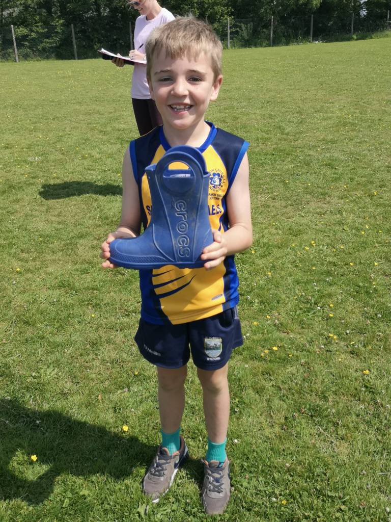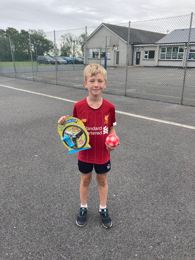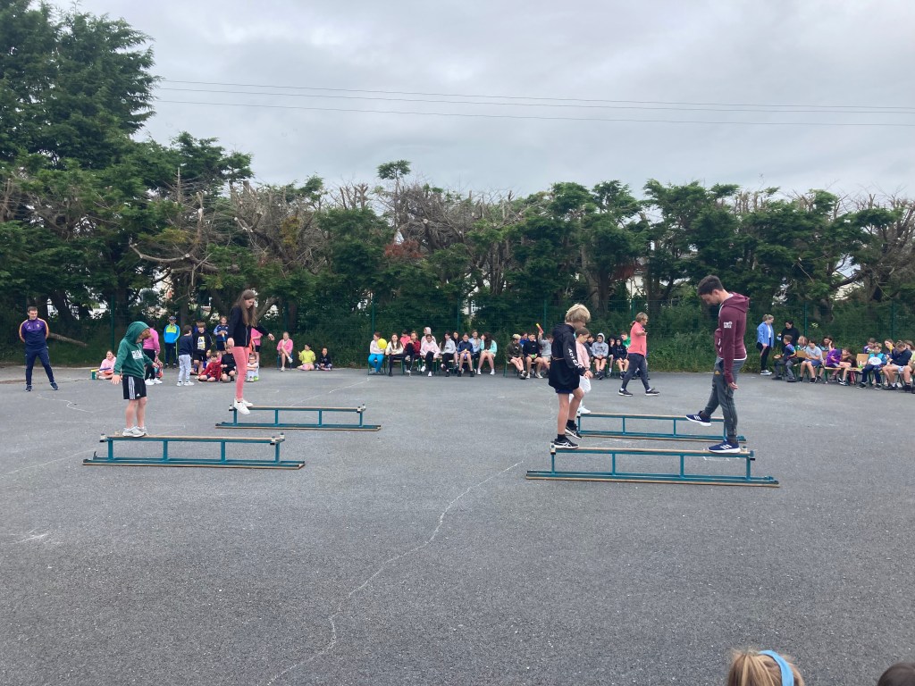 Congratulations to our class winners of the Hula hoop a thon, Skip a thon, Keepy Uppies, Limbo, Balance Beam and Welly throw. Some of them even went on to become overall winners in the school! Pictured below also is the staff against children in the Balance Beam competition. The four children long outlasted all of the staff, despite Mr. Murphy’s valiant effort! Today’s prize giving ceremony marks the end of another fab Active Week!