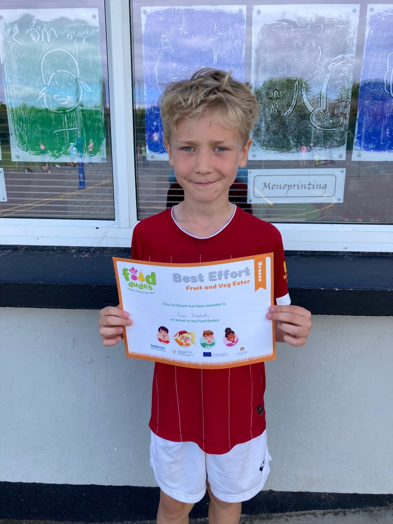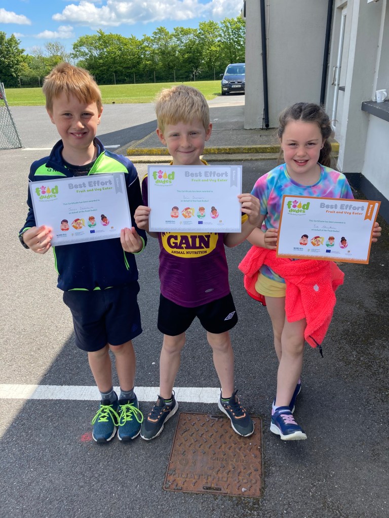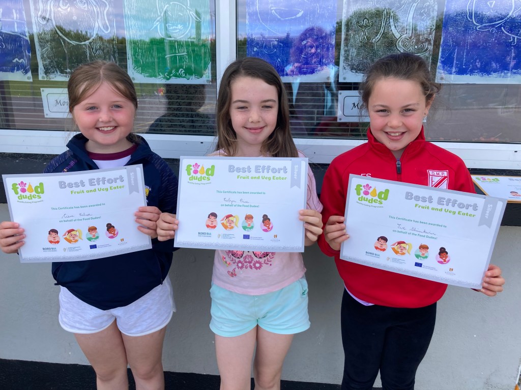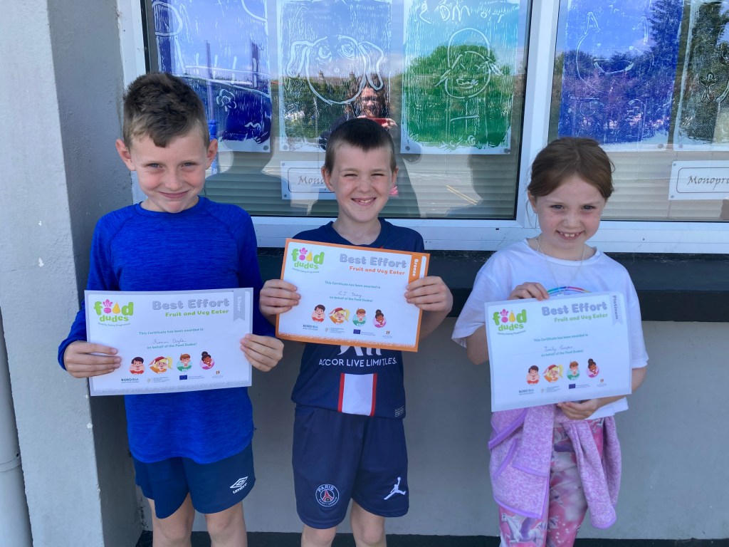 Congratulations to the buachaillí agus cailíní in rang a dó who have already earned their first certificate for Phase 2 of the Food Dudes programme. Well done everyone! Many thanks to all parents who are supporting this worthwhile initiative.