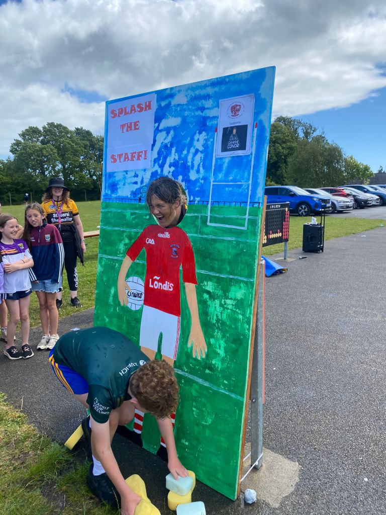 What a fun and successful day raising money for ‘Cairde Conor’! The second class children had a fantastic time hitting Ms. Farrell, Lena, Ms. Walsh, and Ms. Hearne with wet sponges. The event was filled with laughter and excitement, making it a memorable experience for everyone involved while supporting a great cause.
