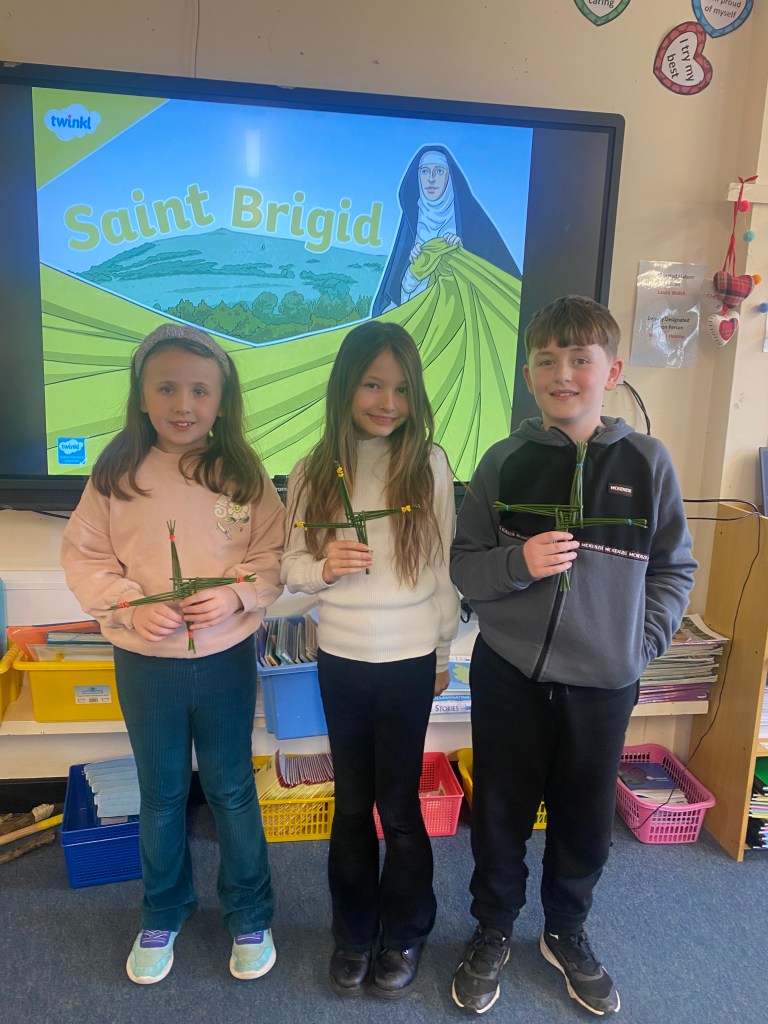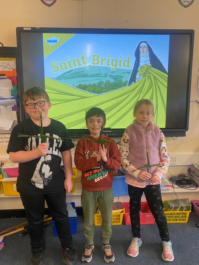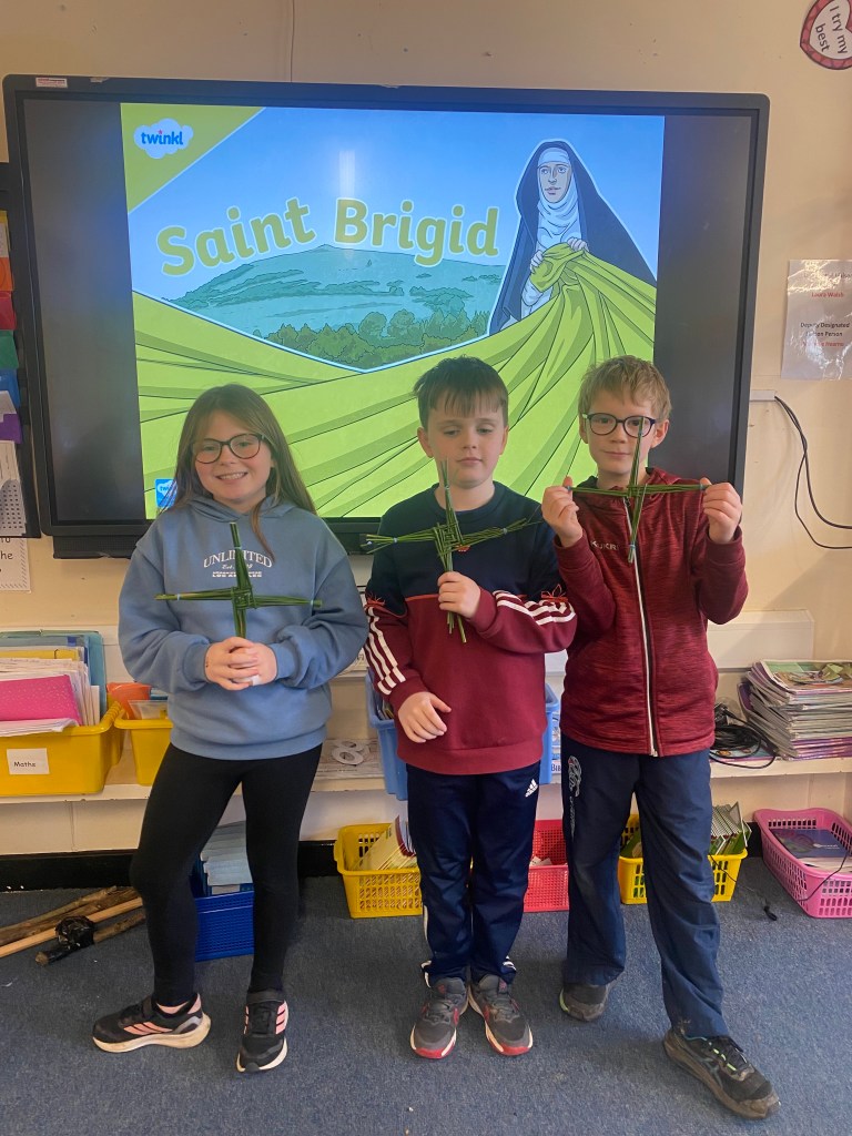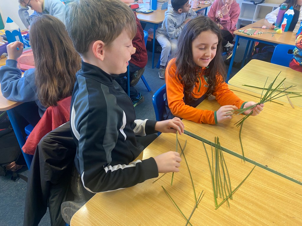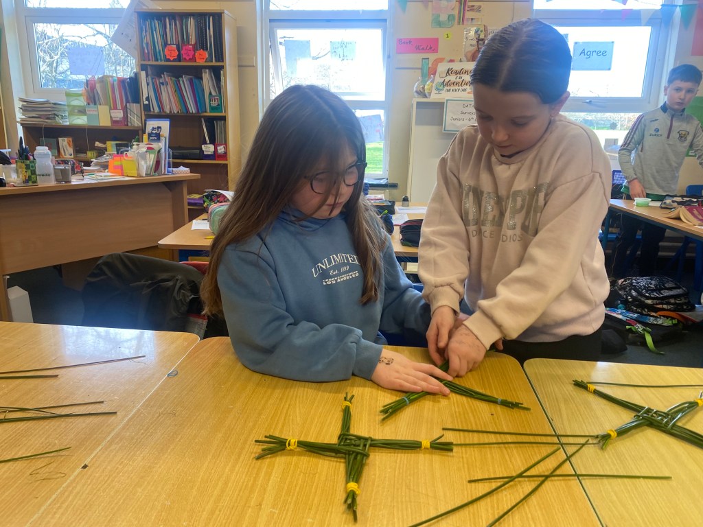 To coincide with celebrating St. Brigid’s Day on Saturday, 1st February, the students of 3rd class put their weaving skills to the test to make some St. Brigid’s Day crosses. Thanks to Ms. Hearne, Mr. Furlong and everyone else who popped in to lend a helpful hand. Well done everyone, you did an amazing job!