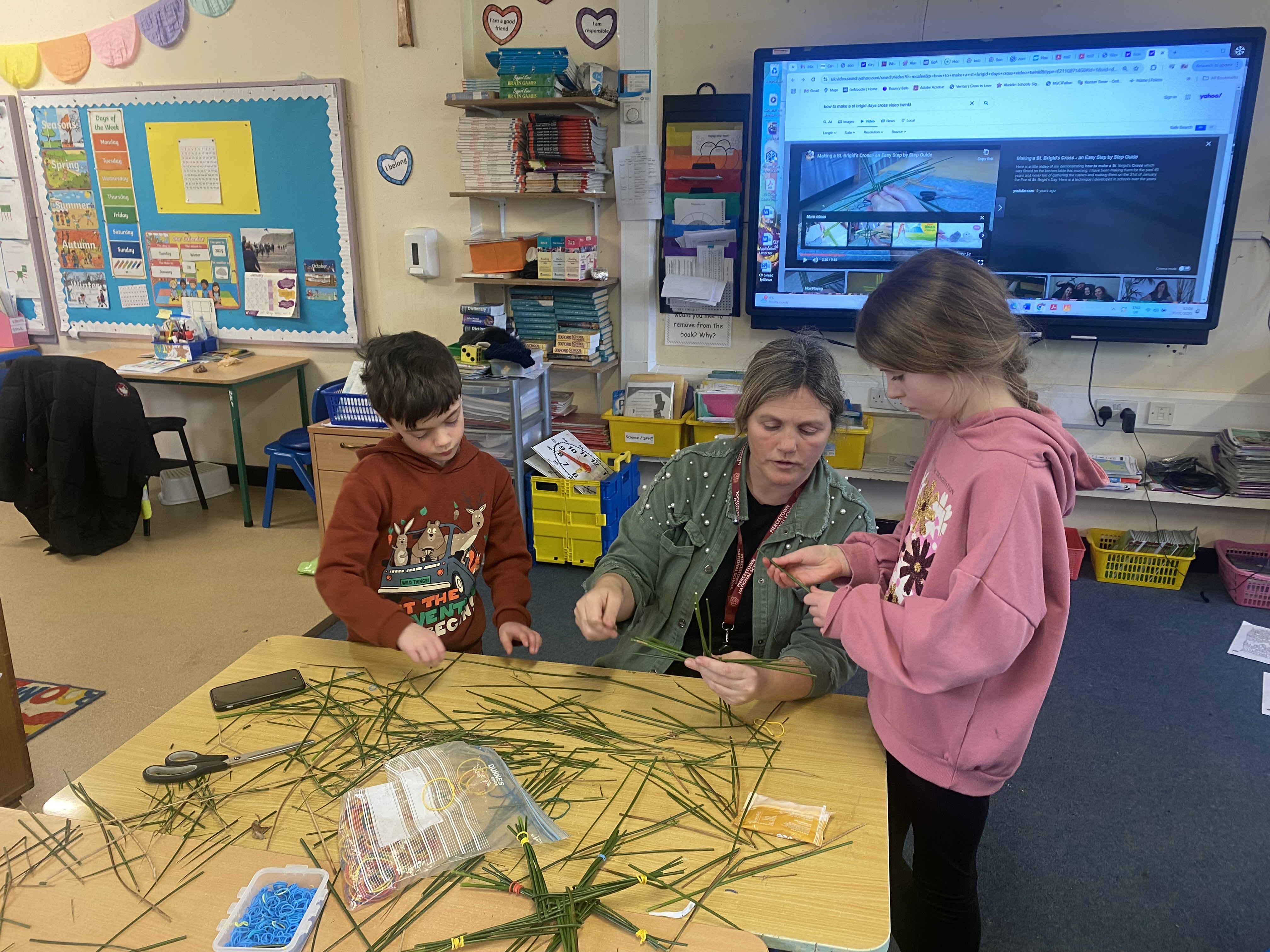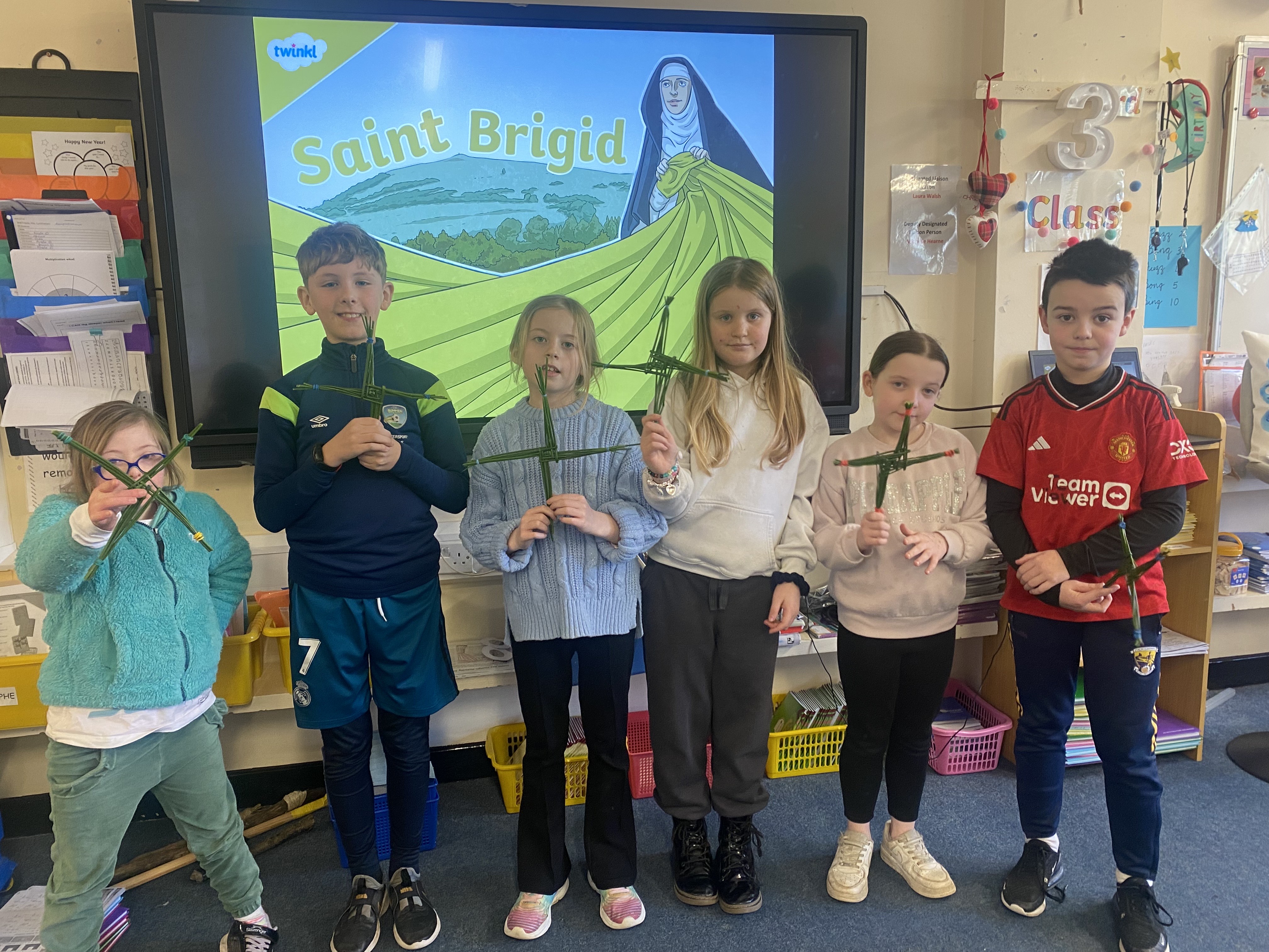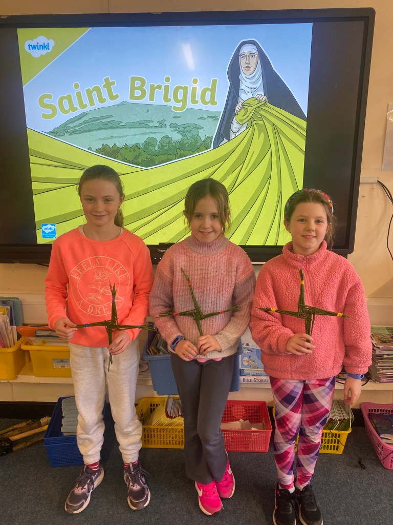 To coincide with celebrating St. Brigid’s Day on Saturday, 1st February, the students of 3rd class put their weaving skills to the test to make some St. Brigid’s Day crosses. Thanks to Ms. Hearne, Mr. Furlong and everyone else who popped in to lend a helpful hand. Well done everyone, you did an amazing job!
