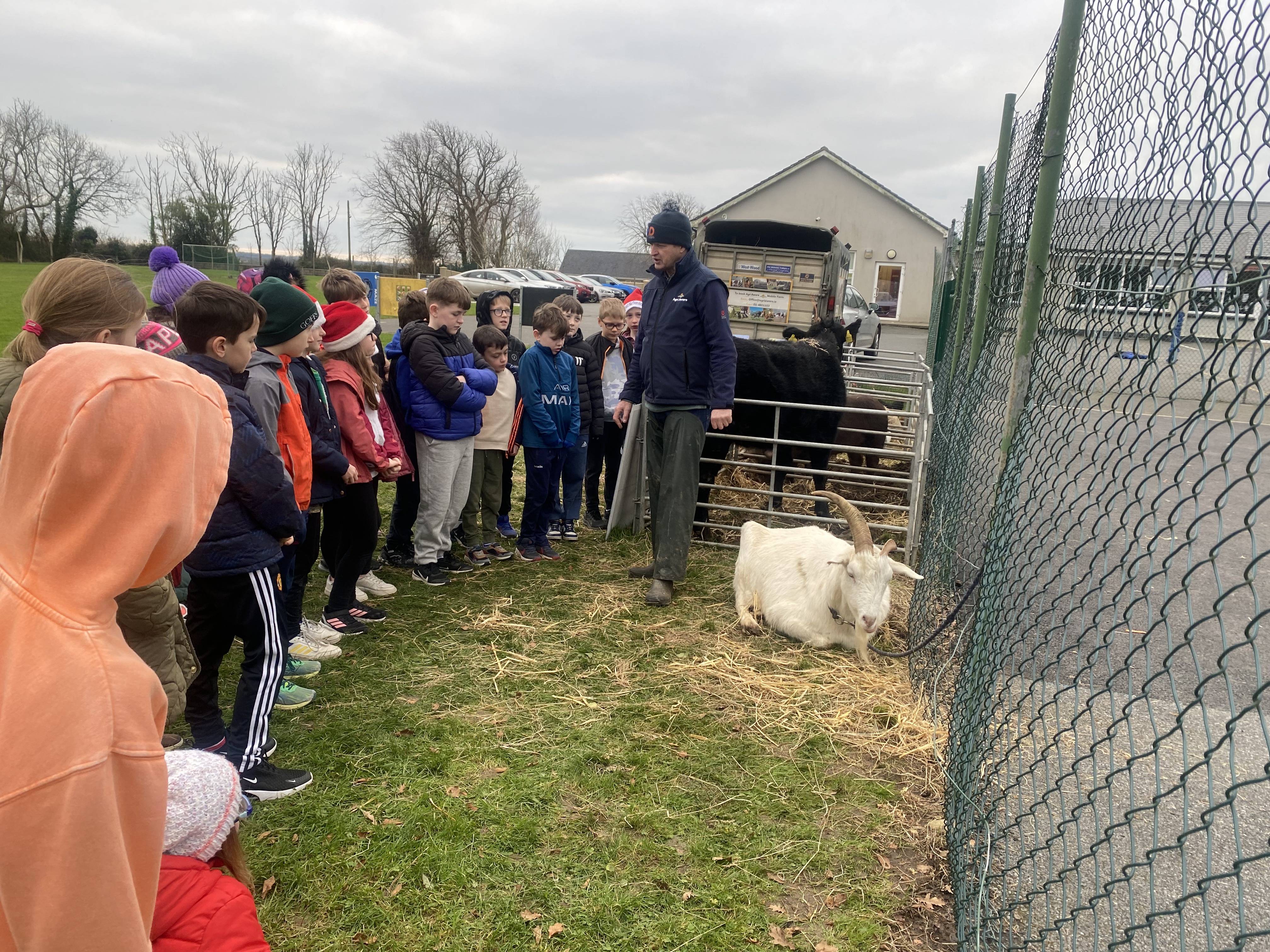 From reptiles to farm animals, the strand of living things has been well and truly embraced in Piercestown NS. This month, we had an amazing visit from Farmer Tom and his wonderful mobile farm! The children were thrilled to meet a variety of friendly farm animals, including Popcorn the goat, Patsy the pig, Daisy the calf, a woolly sheep and a lively group of ducks, geese, and hens. Farmer Tom taught the students all about what the animals like and dislike, how to take care of them on the farm, and what they enjoy eating. The students had the amazing opportunity to pet the animals, ask lots of great questions, and even feed them some hay. It was a fun and educational day full of smiles and laughter – a special experience for everyone!