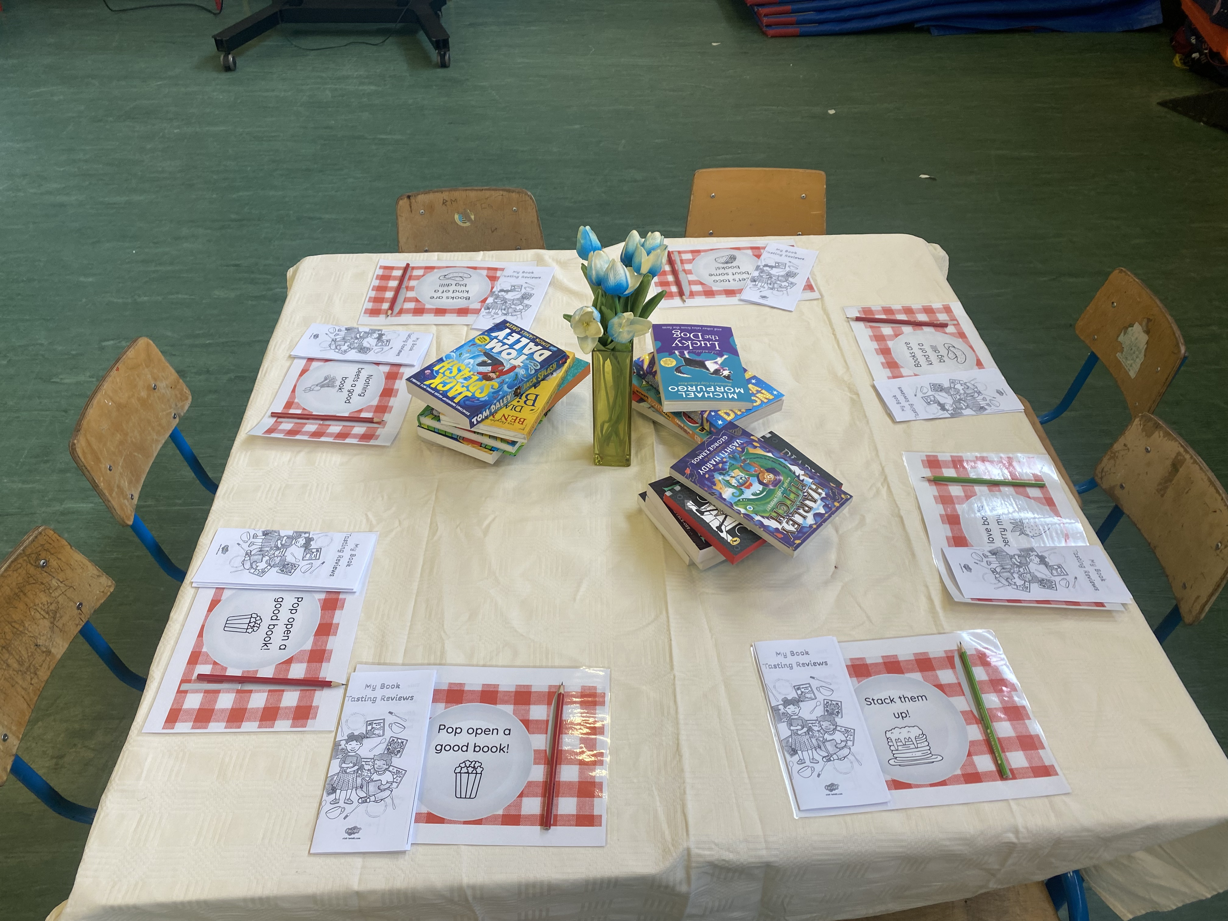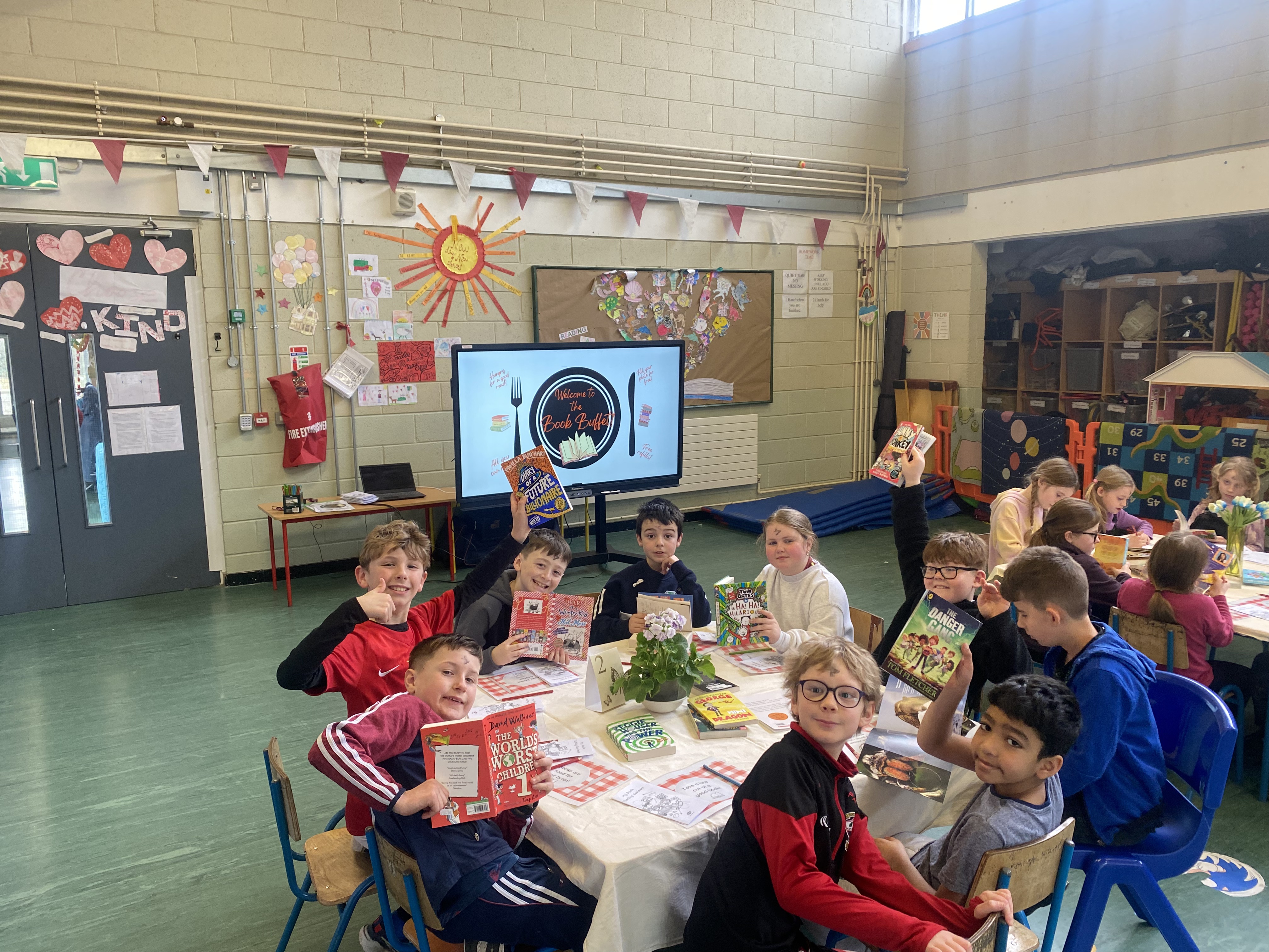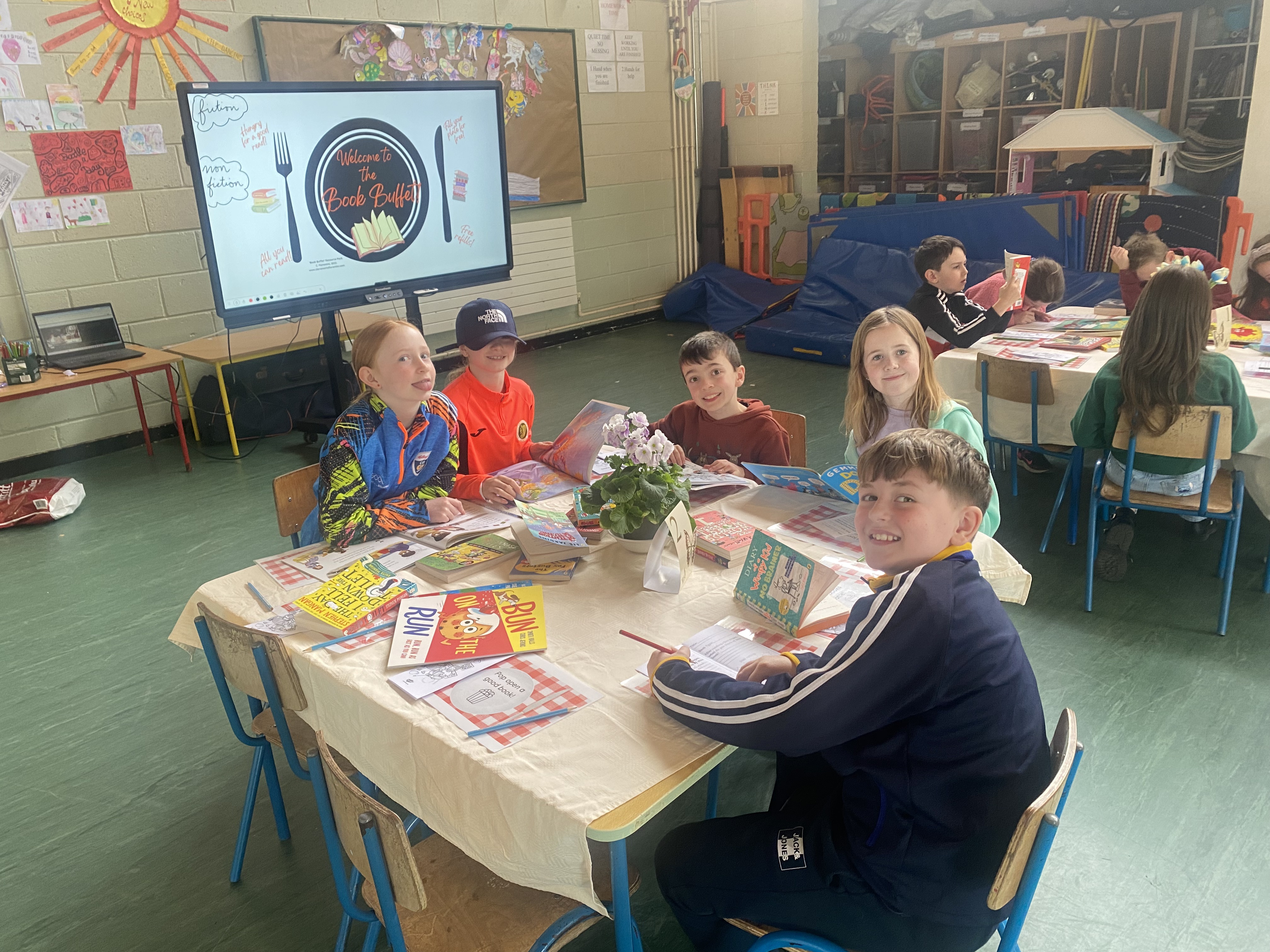 There were books, books and more books on the menu as 3rd class took their seats in a restaurant with a difference for a unique Book Tasting experience. In this restaurant, they got the opportunity to get a “taste” of all the amazing books that arrived with the Book Fair this year. With newly released books from Michael Morpurgo, David Walliams, Dav Pilkey and Onjali Q, Rauf, there was something for everyone!