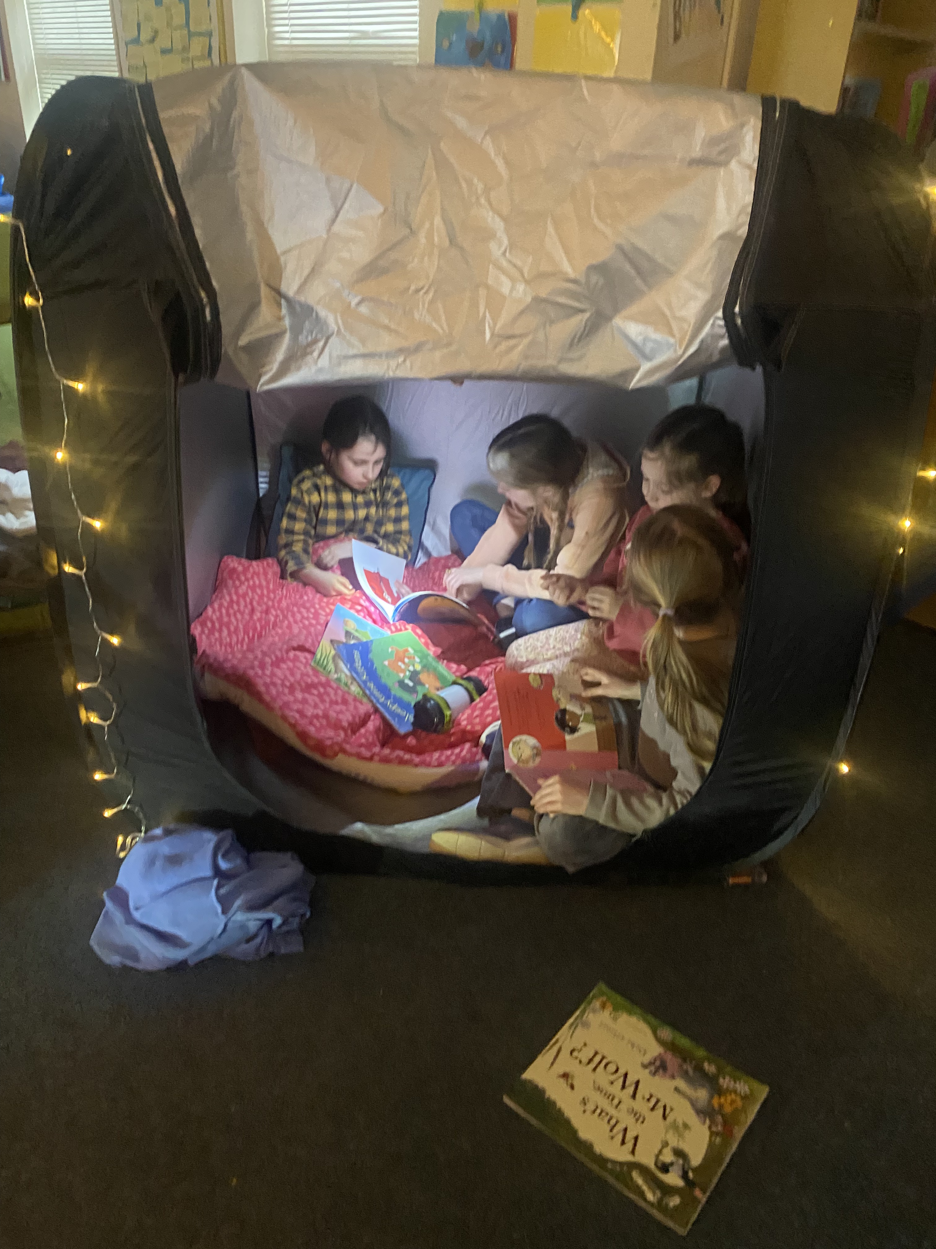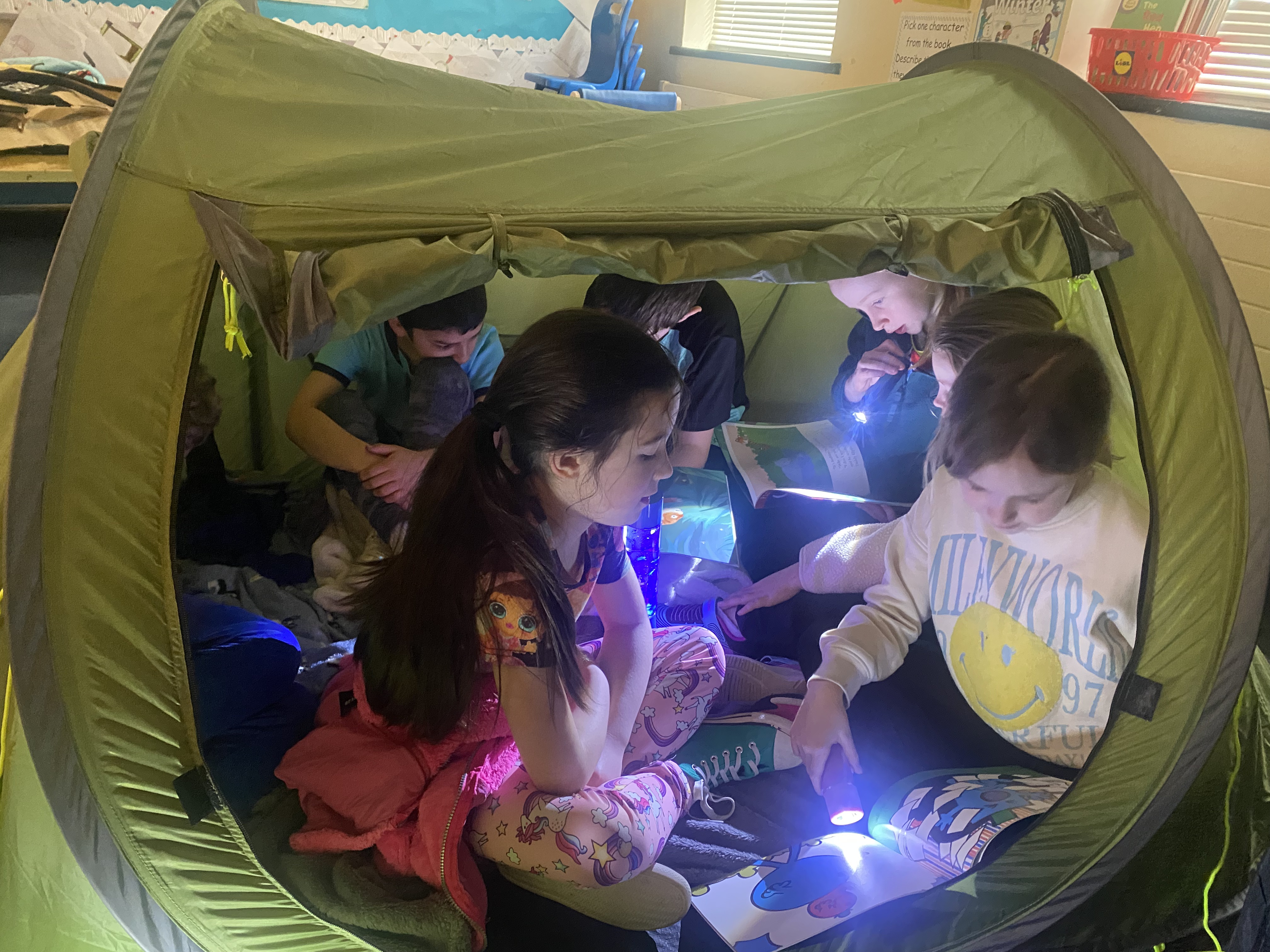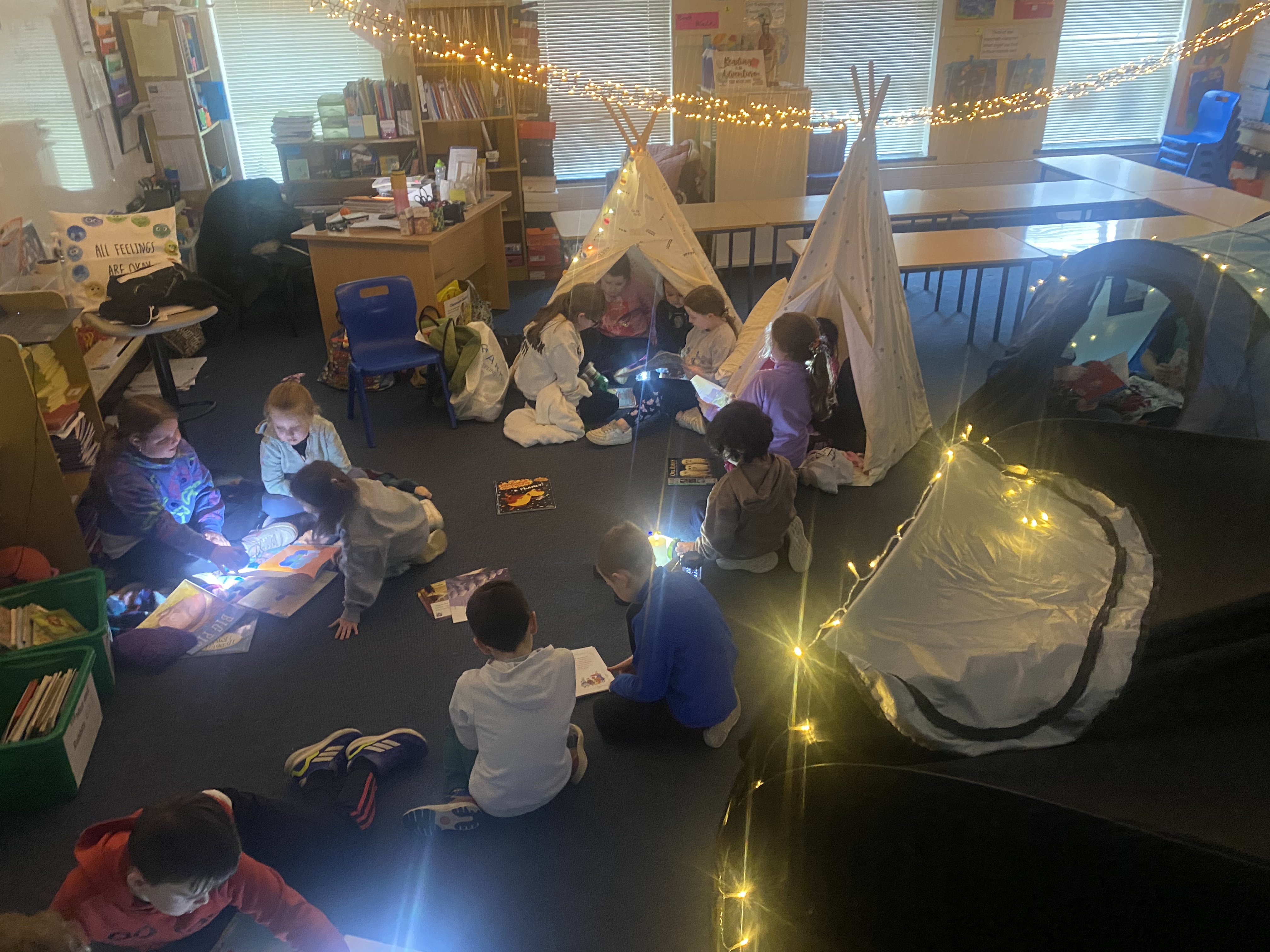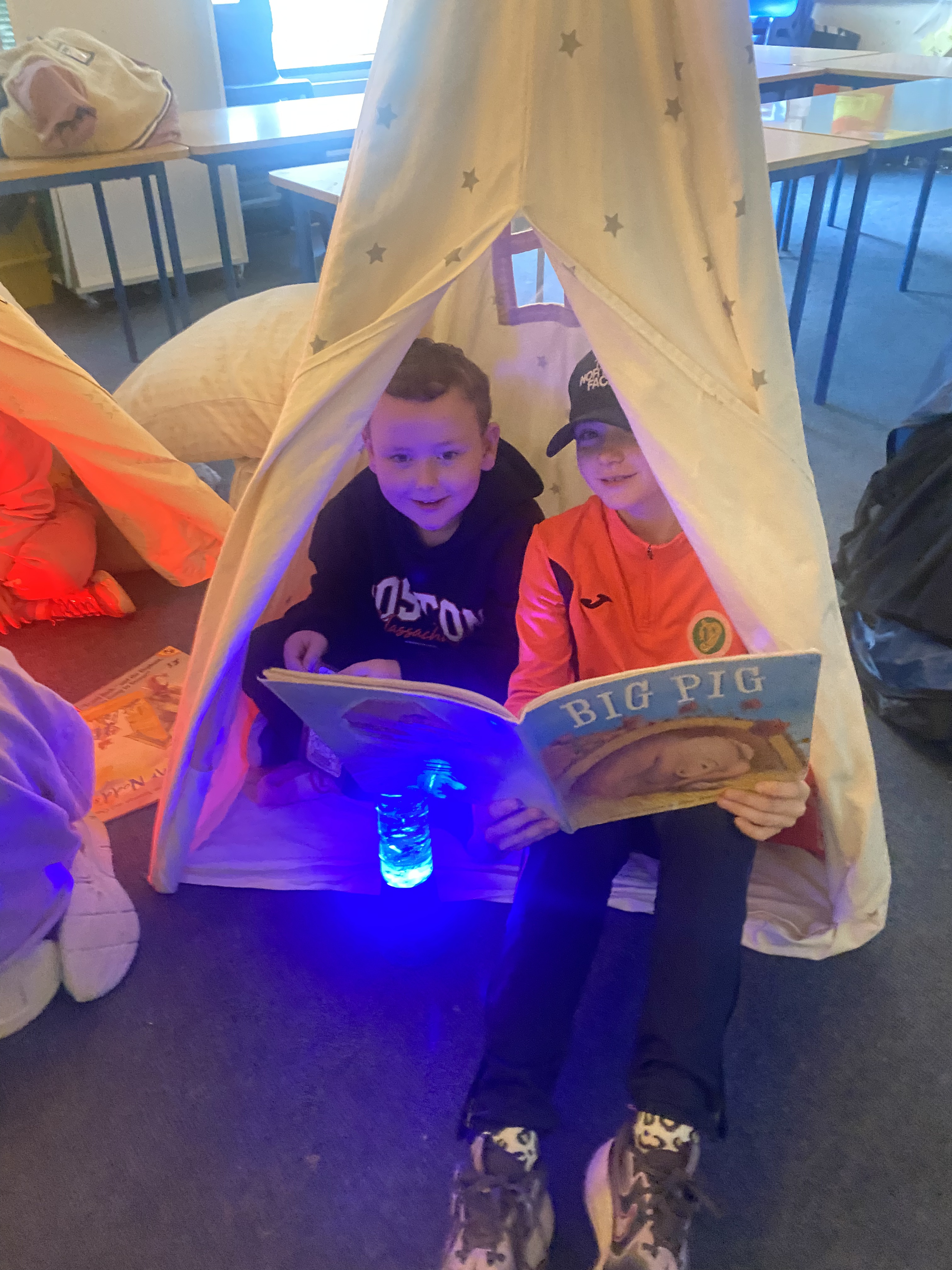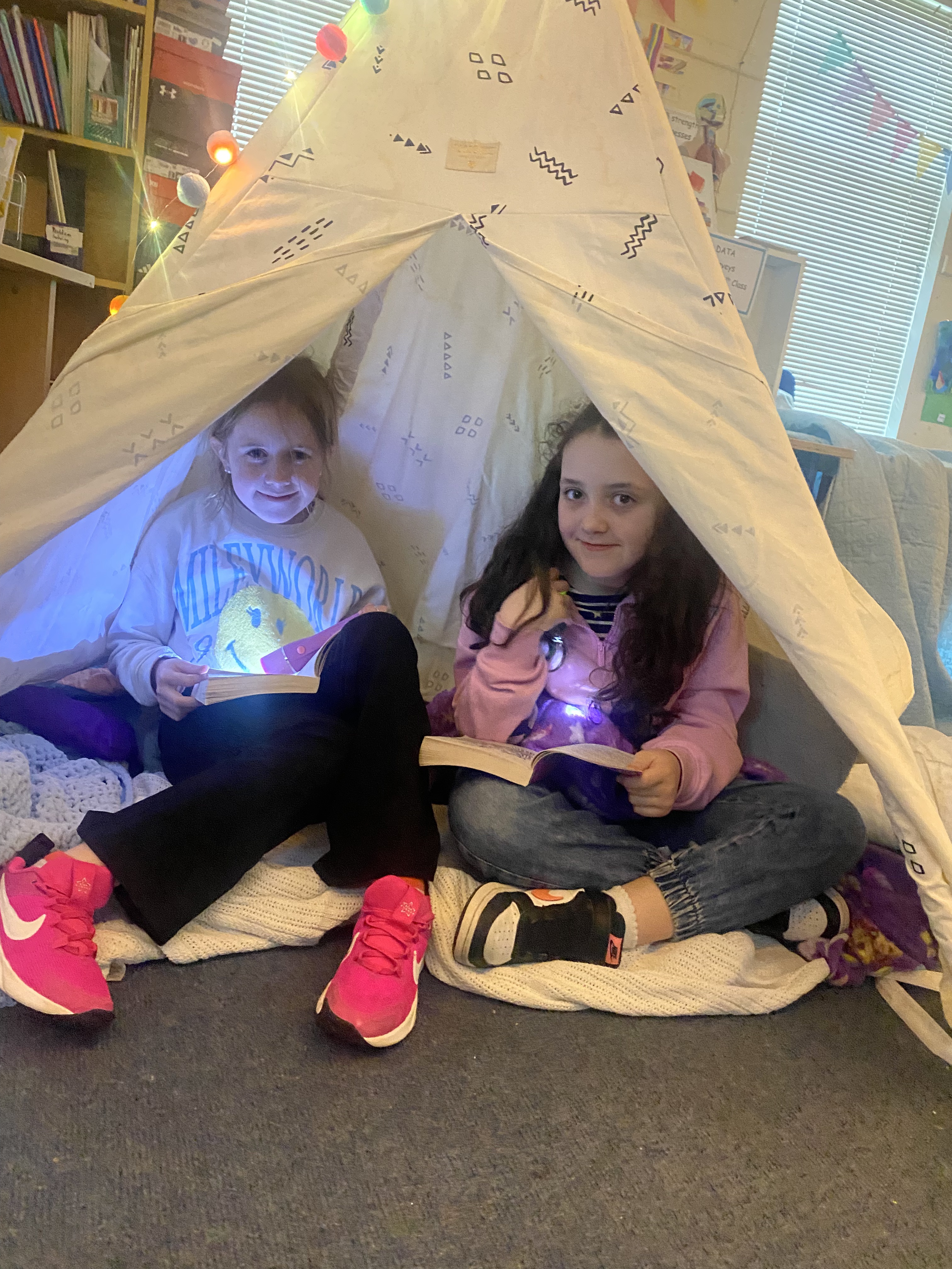 There is something truly special about reading a book by campfire, and to mark World Book Day 2025, 3rd class set about recreating this experience. Complete with tents, cushions, blankets, fake camp fire, torches and fairy lights, the 3rd class classroom was transformed into a magical campsite. Children from Junior and Senior infants along with Ms. Hearne’s and Ms. Sinnott’s class were invited to share this fun and exciting reading experience. Third class took on the role as storytellers, and as the noise of the “fire” crackled and the fairy lights twinkled above their heads, they snuggled into tents and shared storybooks with their younger friends. I am so proud of their amazing reading and how kind they were to our visitors today. Well done everyone!