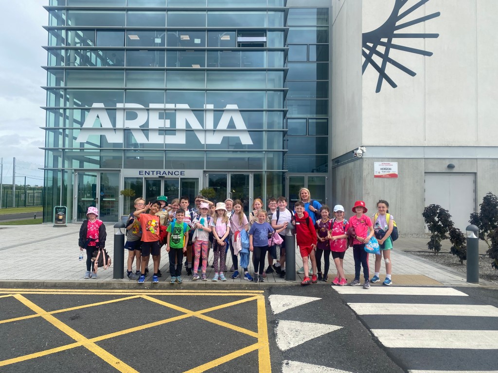 With great excitement the boys and girls in 3rd class set off on their school tour to the SETU Arena in Waterford. It was an action packed day to say the least! The sun shone as we took part in activities such as Laser Tag, Archery, Footgolf and, to finish off the day, a play on some cool bouncy castles. The bus journey back to Wexford was somewhat quieter than the one up and there even might have been some sleepy heads on the way home! Well done everyone, you were all super!