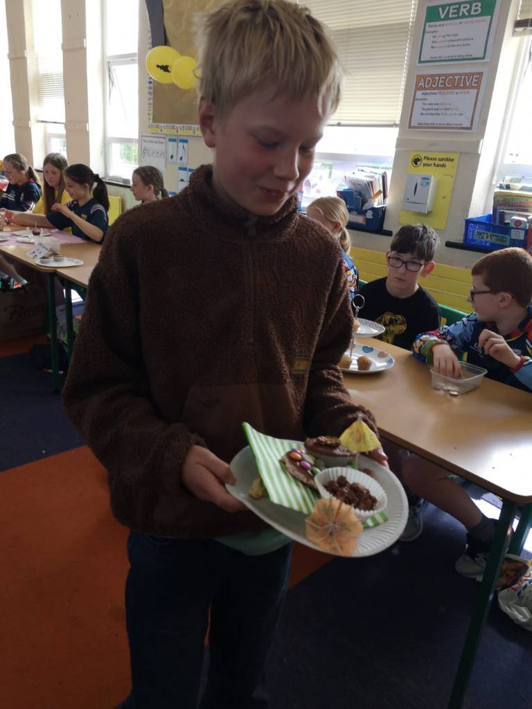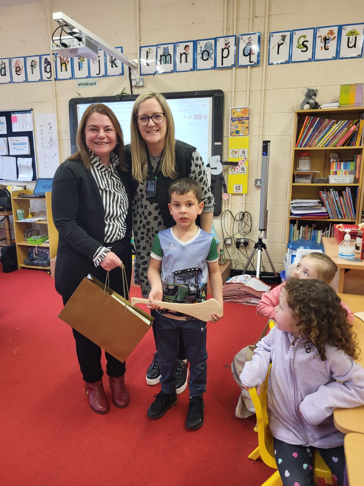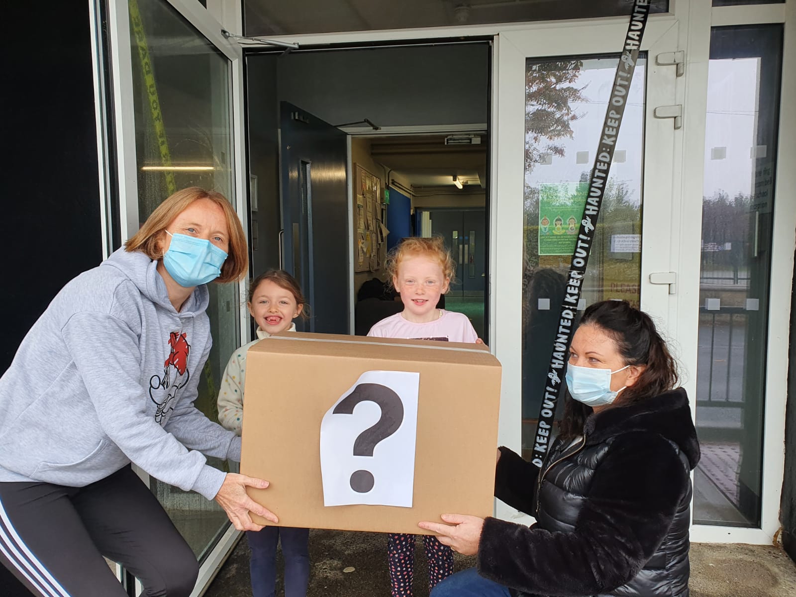 And just when we thought all of the mystery boxes had been revealed, there was one more left? Who could it be for? Surely, there was nobody else left?! Our wonderful Parents’ Association are so kind they included a box of treats for the staff too. Thanks to Mrs. Corrigan who collected this on the staff behalf…….and handed it over to the rest of the staff too (phew!!)