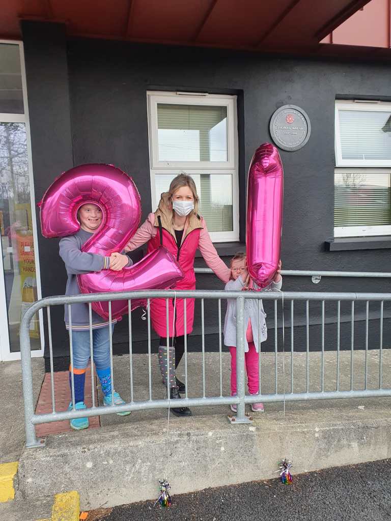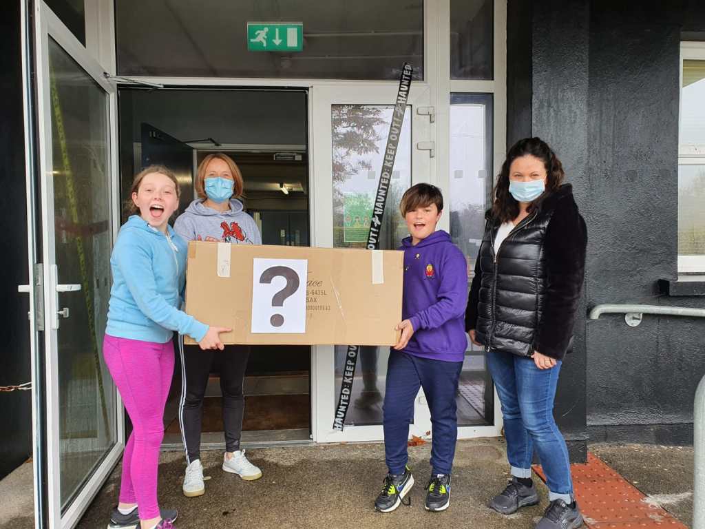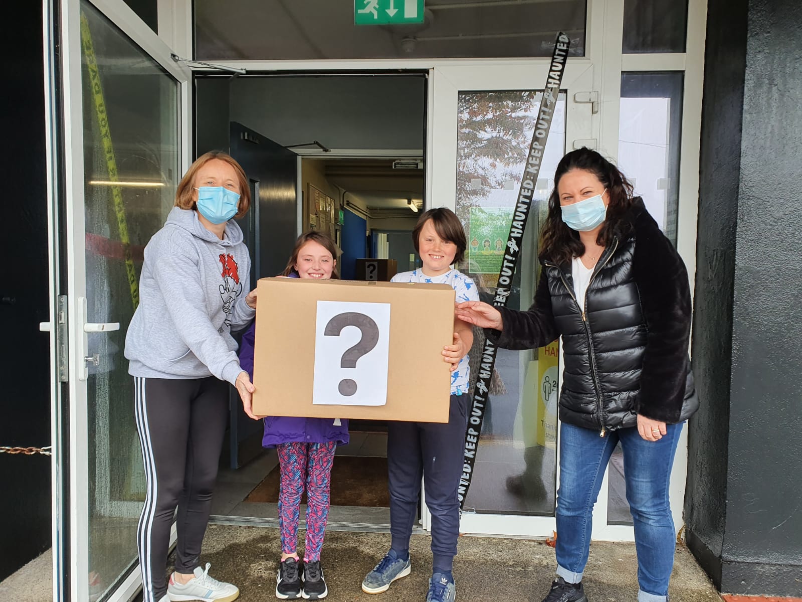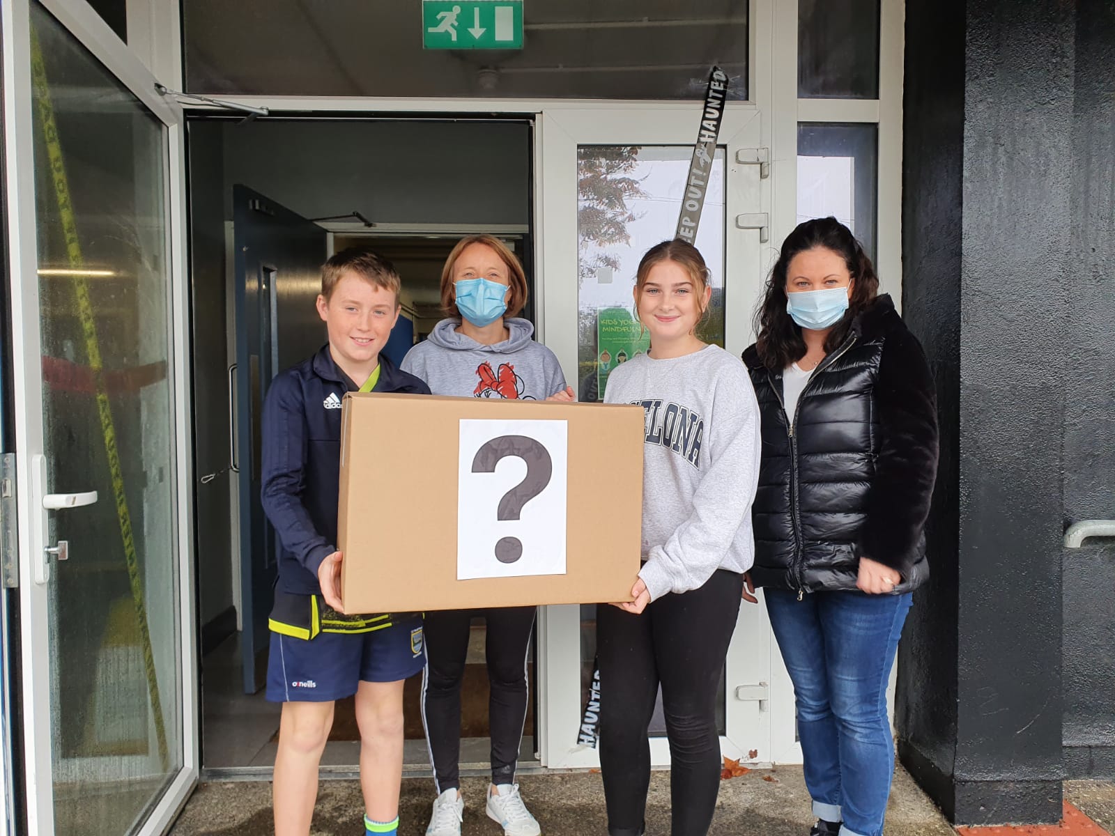 And so Ms. Sinnott’s class were the first to collect. Once, they had safely returned to their room (ensuring all COVID safety procedures were still in tact), Ms. Taylor’s representatives were called up, followed by Mrs. Ryan’s, Mrs. Larkin’s, and so on all the way up to 6th class. As each gift was collected cheers and screams of excitement could be heard all around the corridors! The representatives from each class were so excited and appreciative. While we wish you could have shared the moment with us, Ms. Walsh was on hand to gather the photographic evidence.