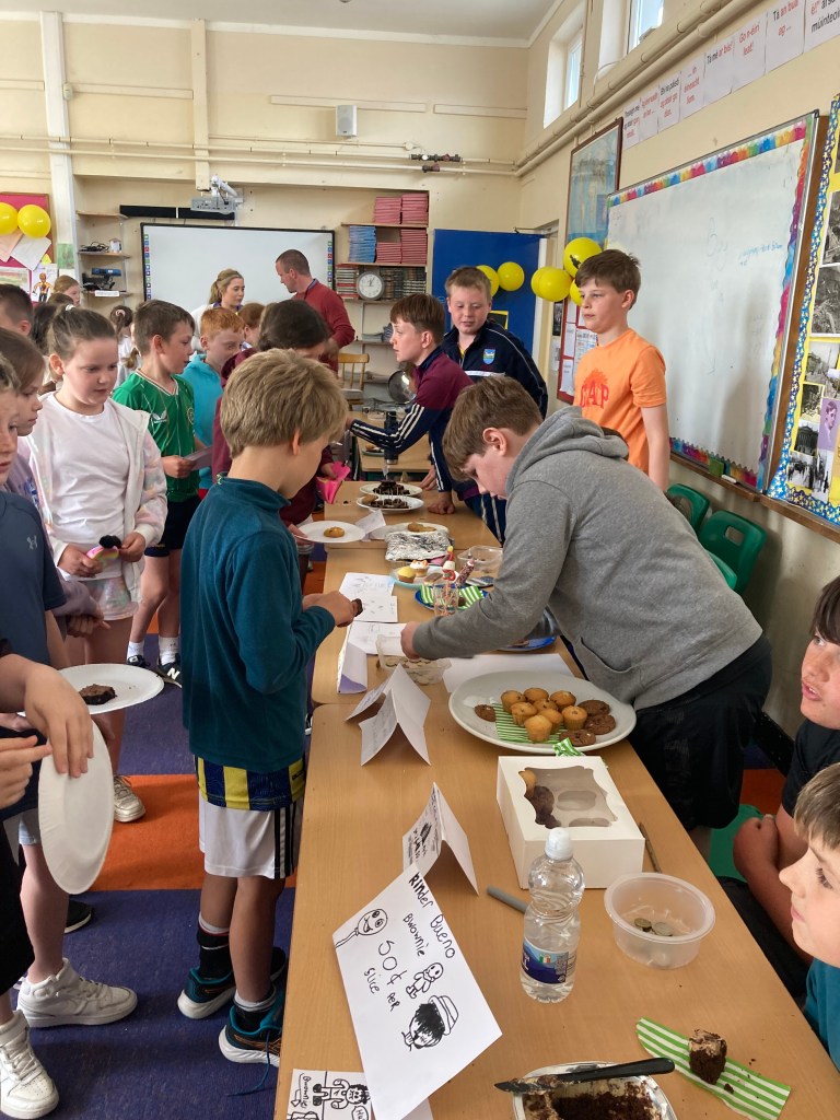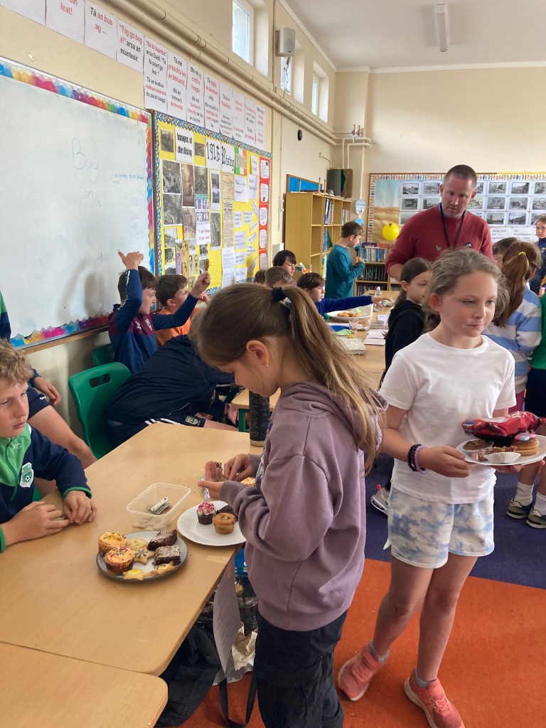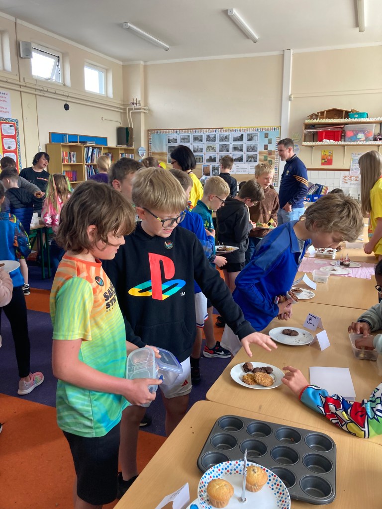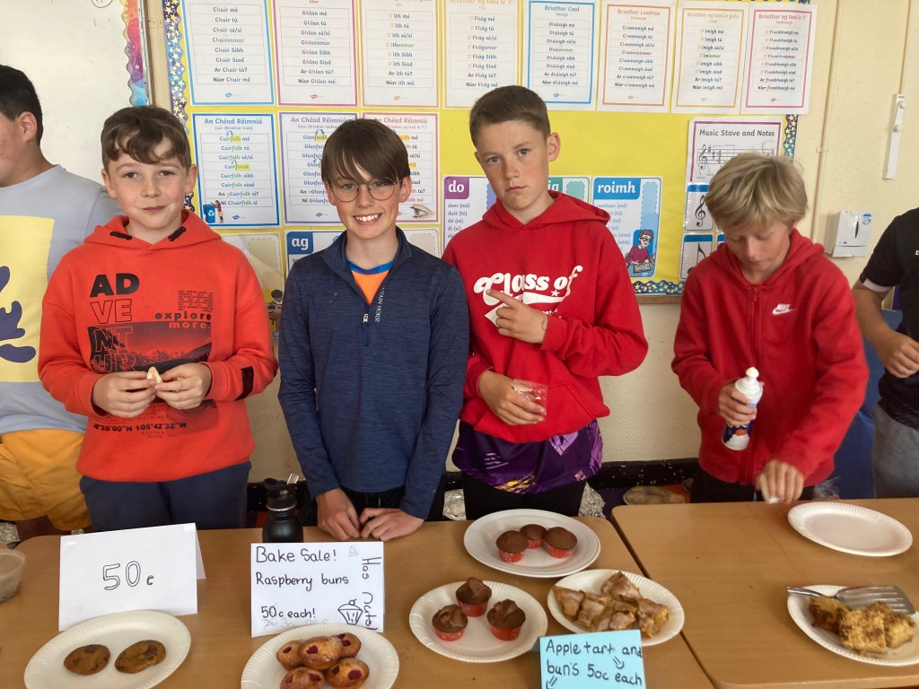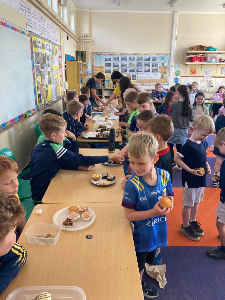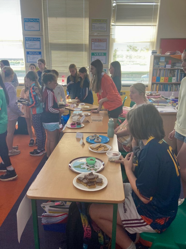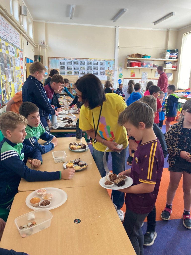 Today’s Bake Sale was a fantastic success, with a grand total of €552.67 raised for the Niall Mellon Building Blitz 2024. Well done to Rang a Cúig for all their hard work. Have a look at the many satisfied customers who bought their scrumptious treats today!
