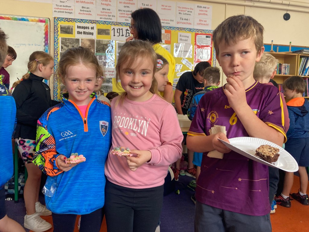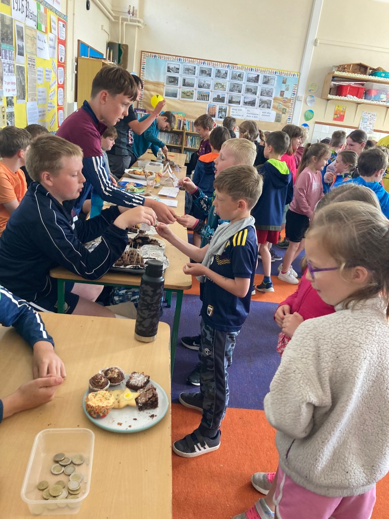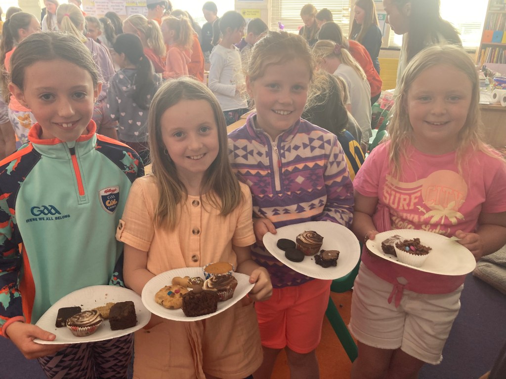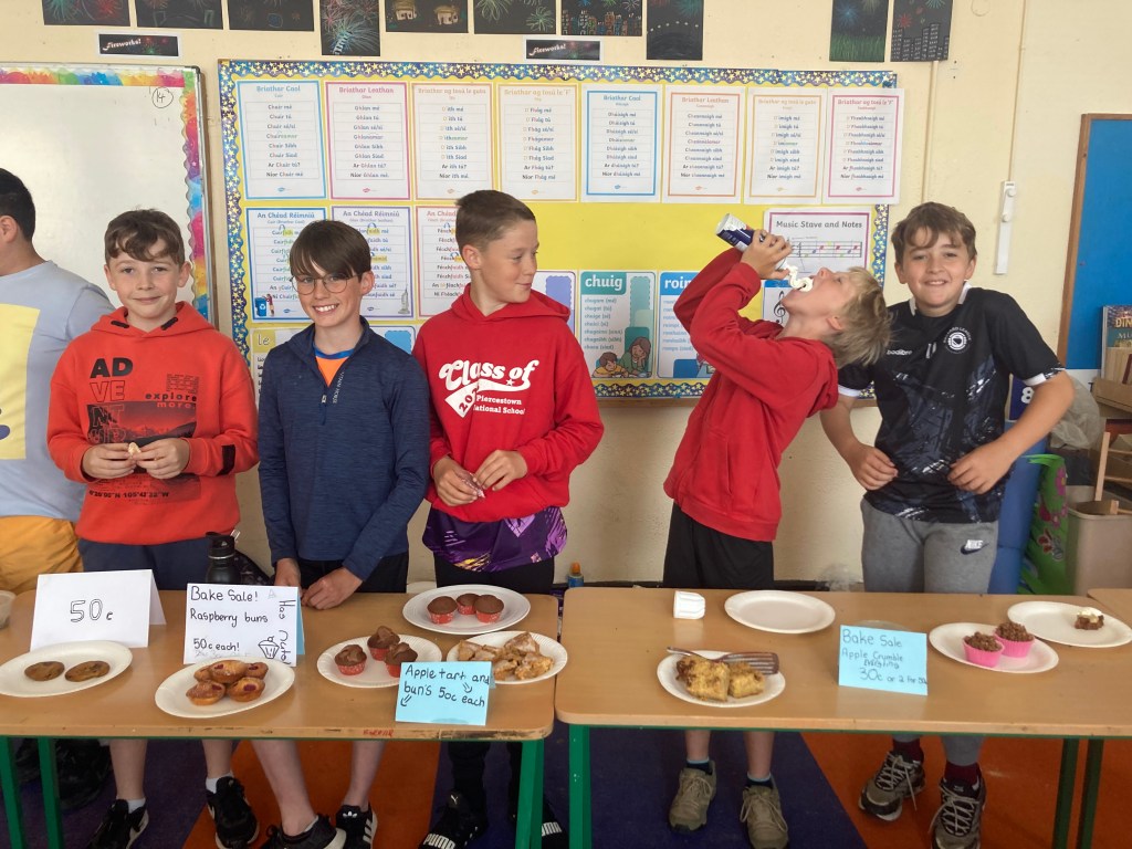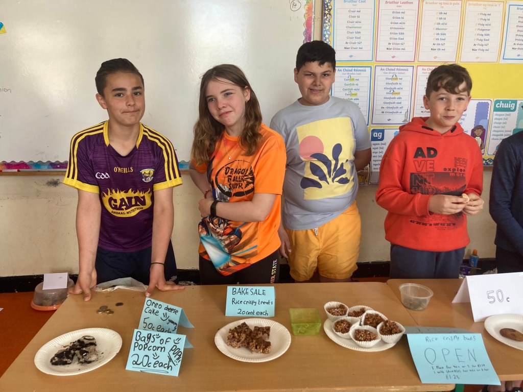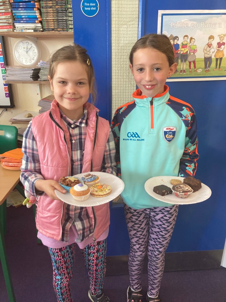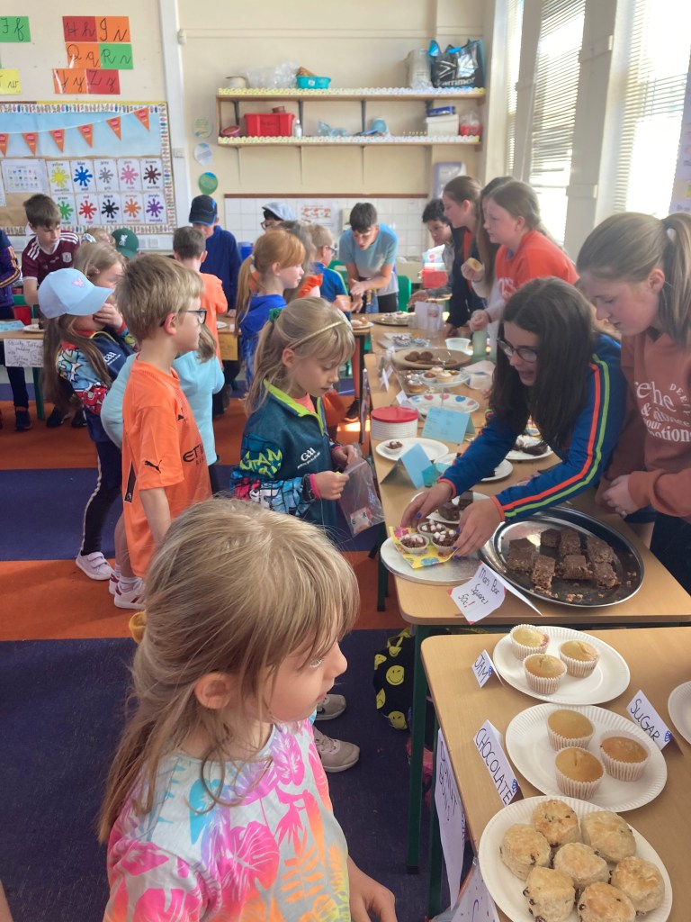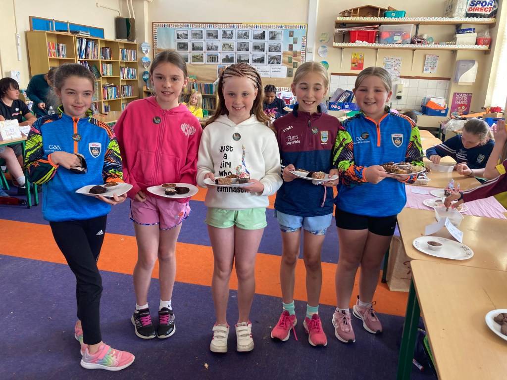 Today’s Bake Sale was a fantastic success, with a grand total of €552.67 raised for the Niall Mellon Building Blitz 2024. Well done to Rang a Cúig for all their hard work. Have a look at the many satisfied customers who bought their scrumptious treats today!