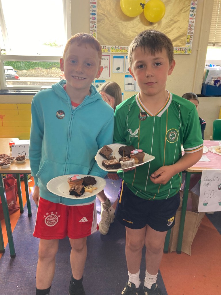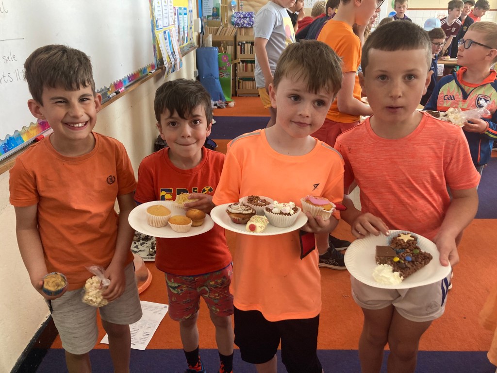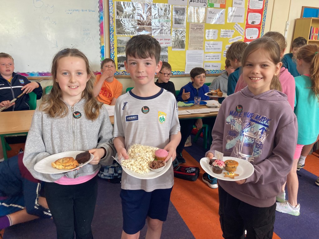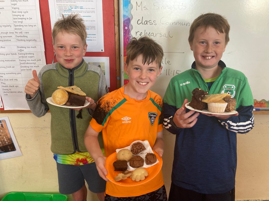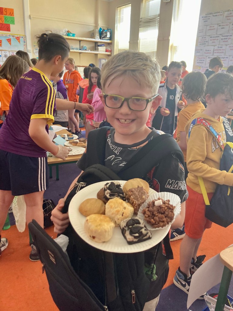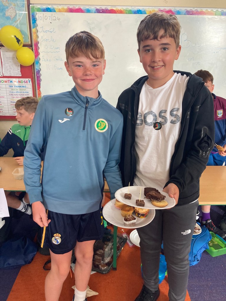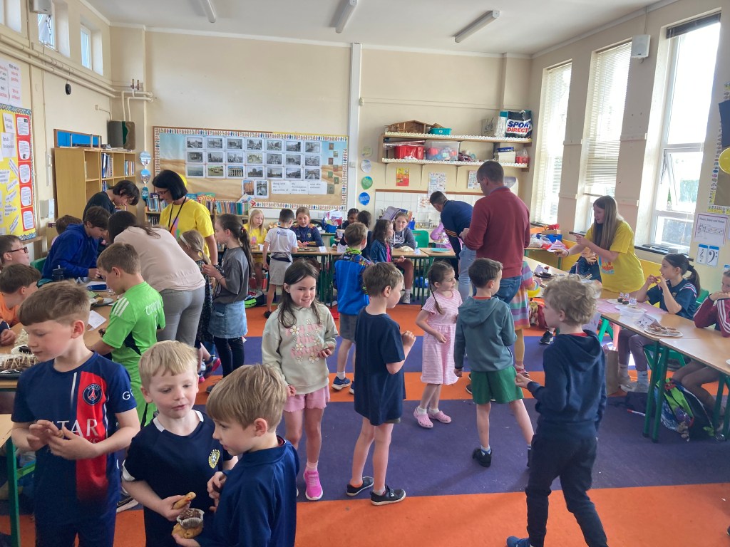 Today’s Bake Sale was a fantastic success, with a grand total of €552.67 raised for the Niall Mellon Building Blitz 2024. Well done to Rang a Cúig for all their hard work. Have a look at the many satisfied customers who bought their scrumptious treats today!