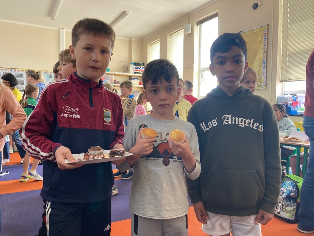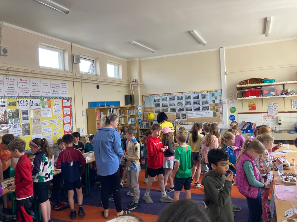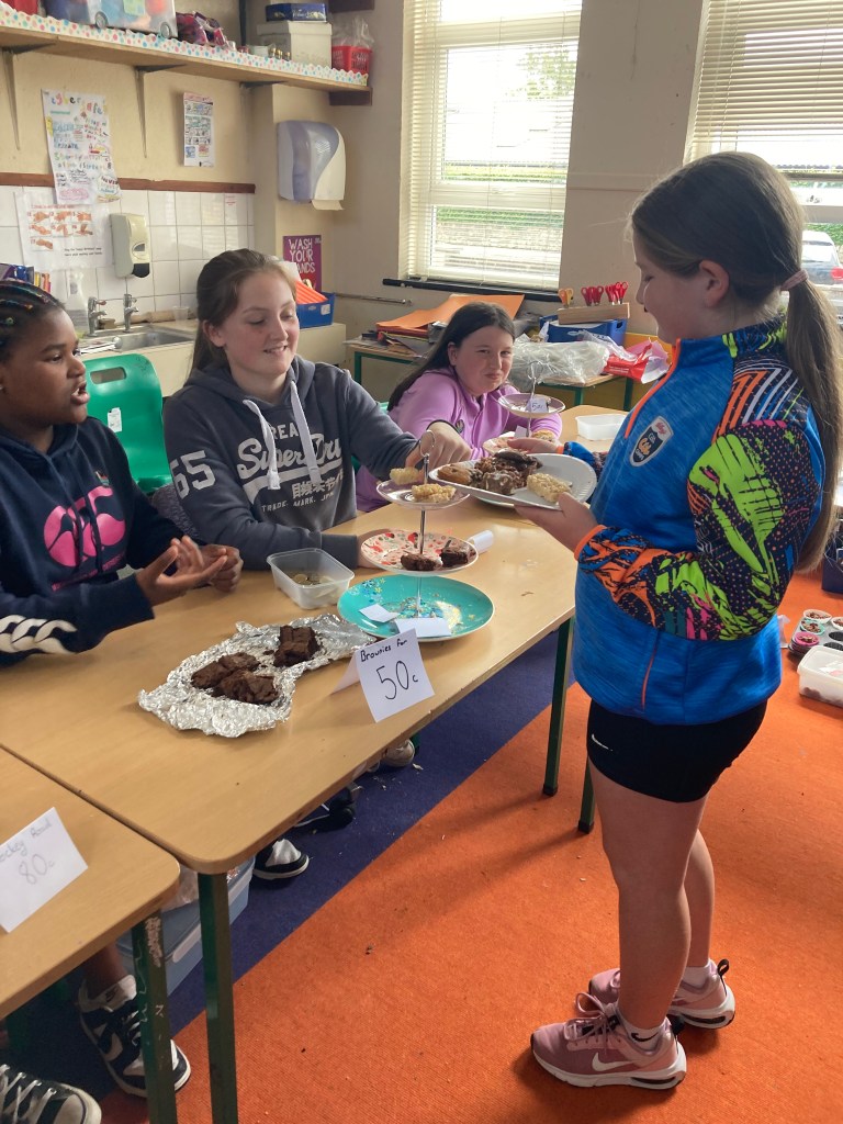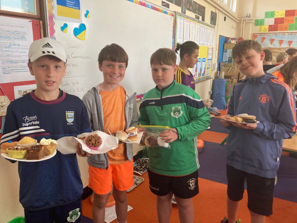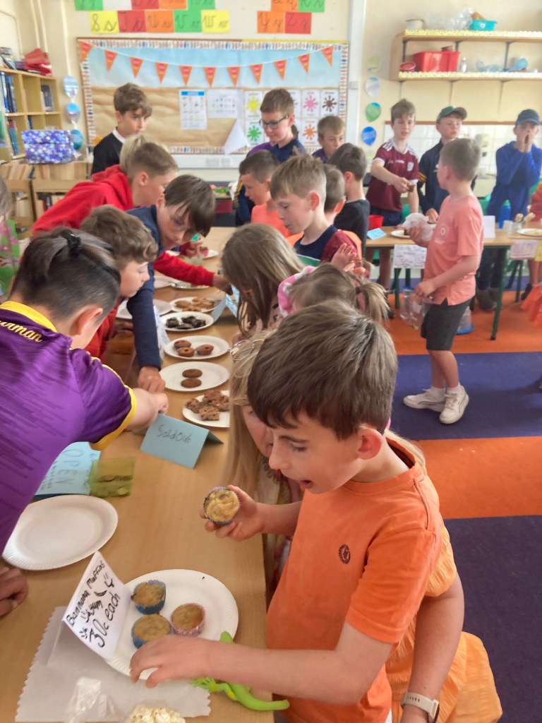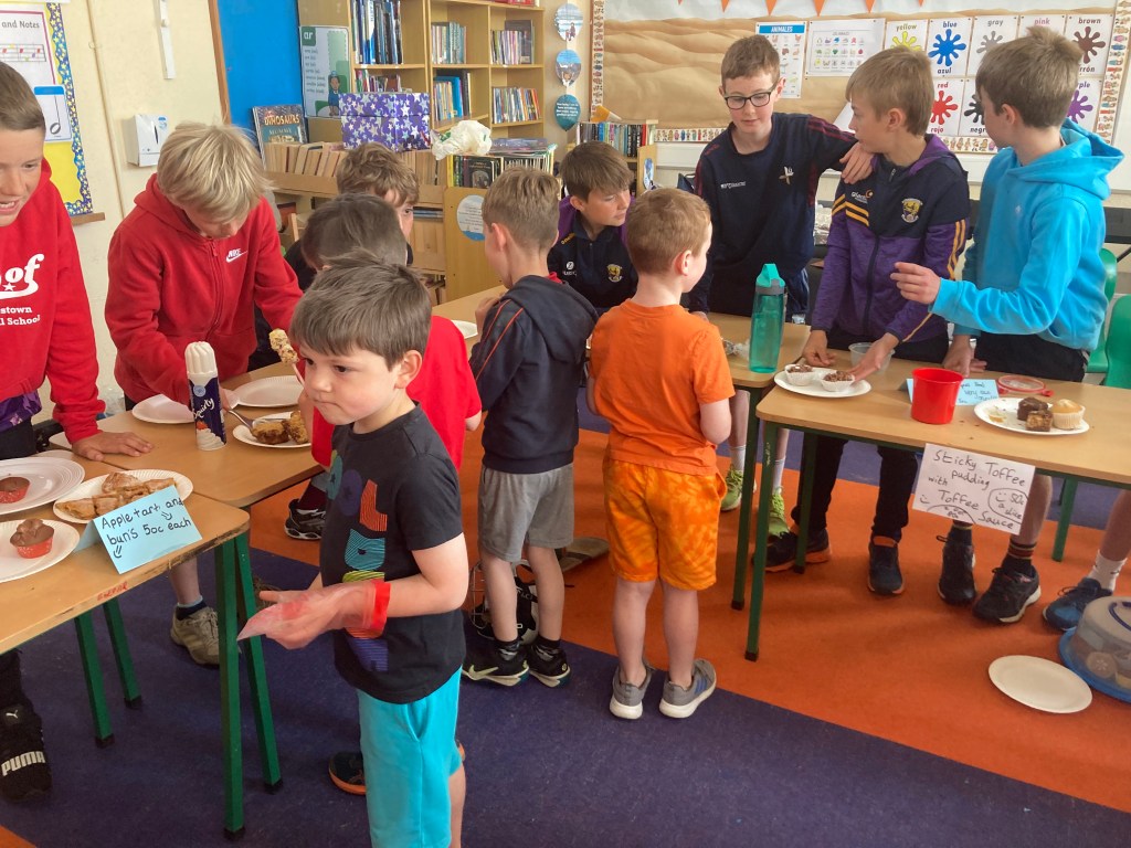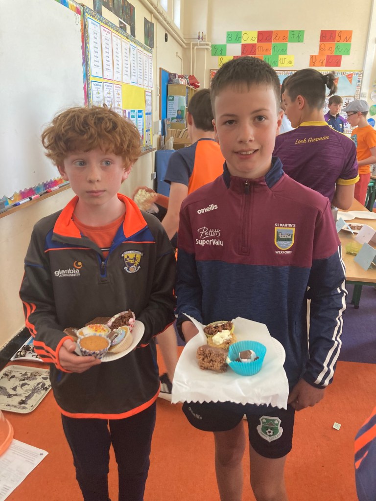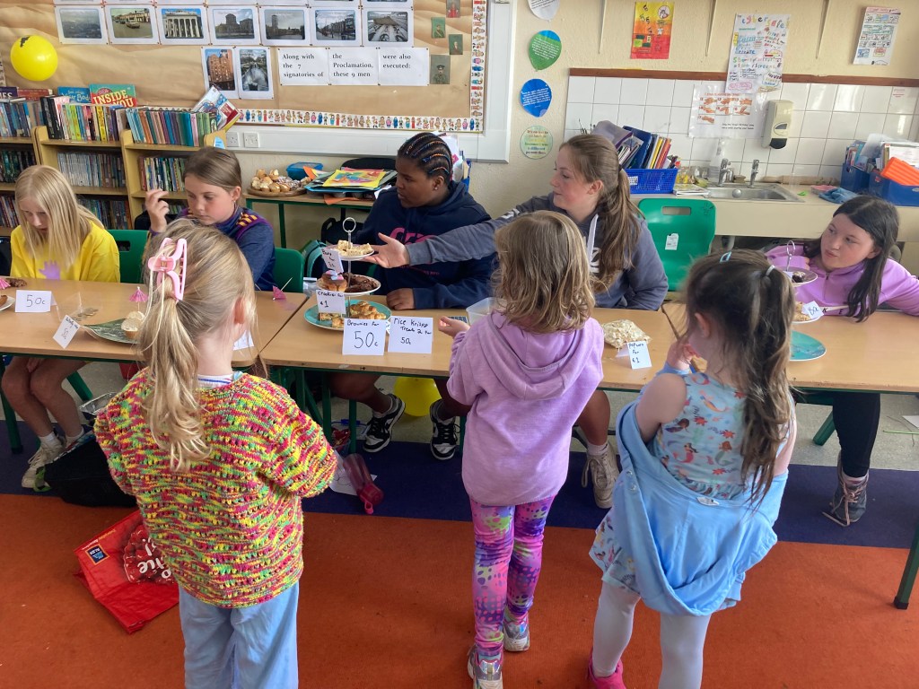 Today’s Bake Sale was a fantastic success, with a grand total of €552.67 raised for the Niall Mellon Building Blitz 2024. Well done to Rang a Cúig for all their hard work. Have a look at the many satisfied customers who bought their scrumptious treats today!