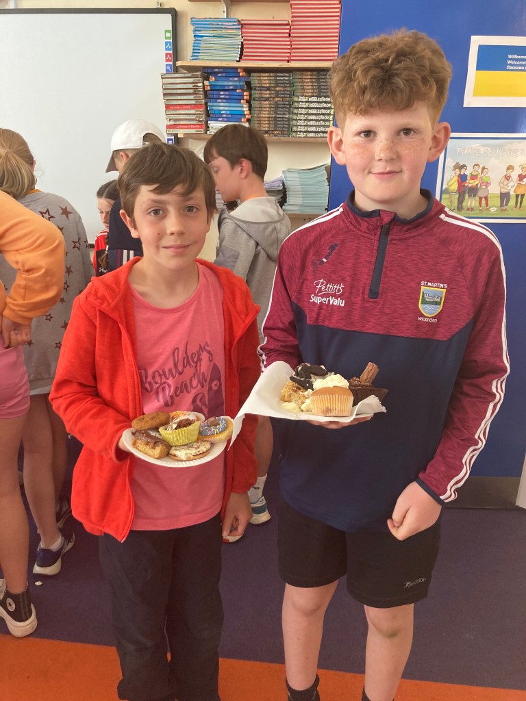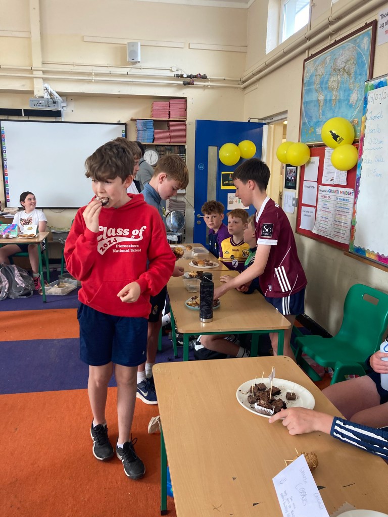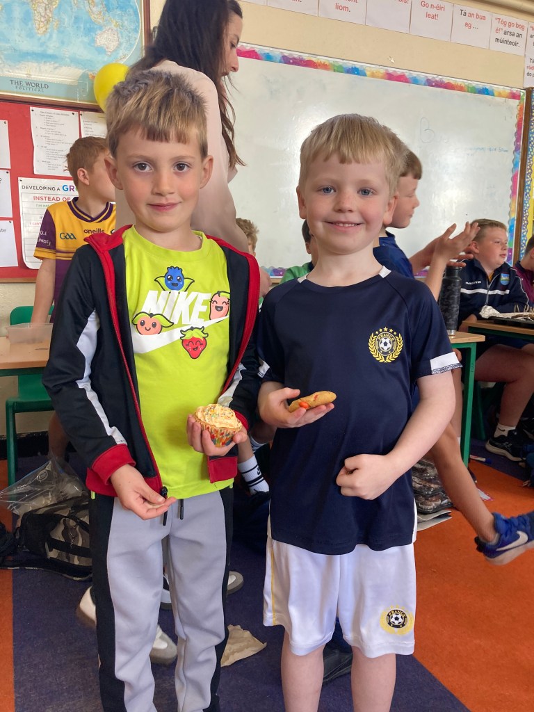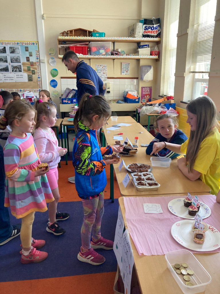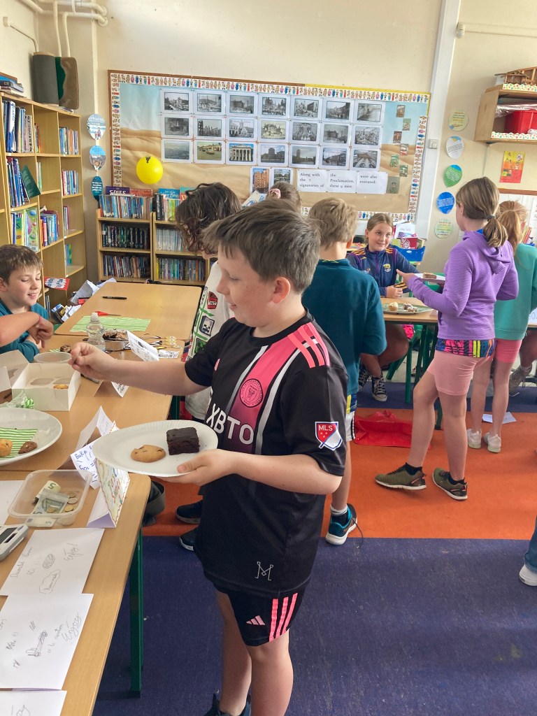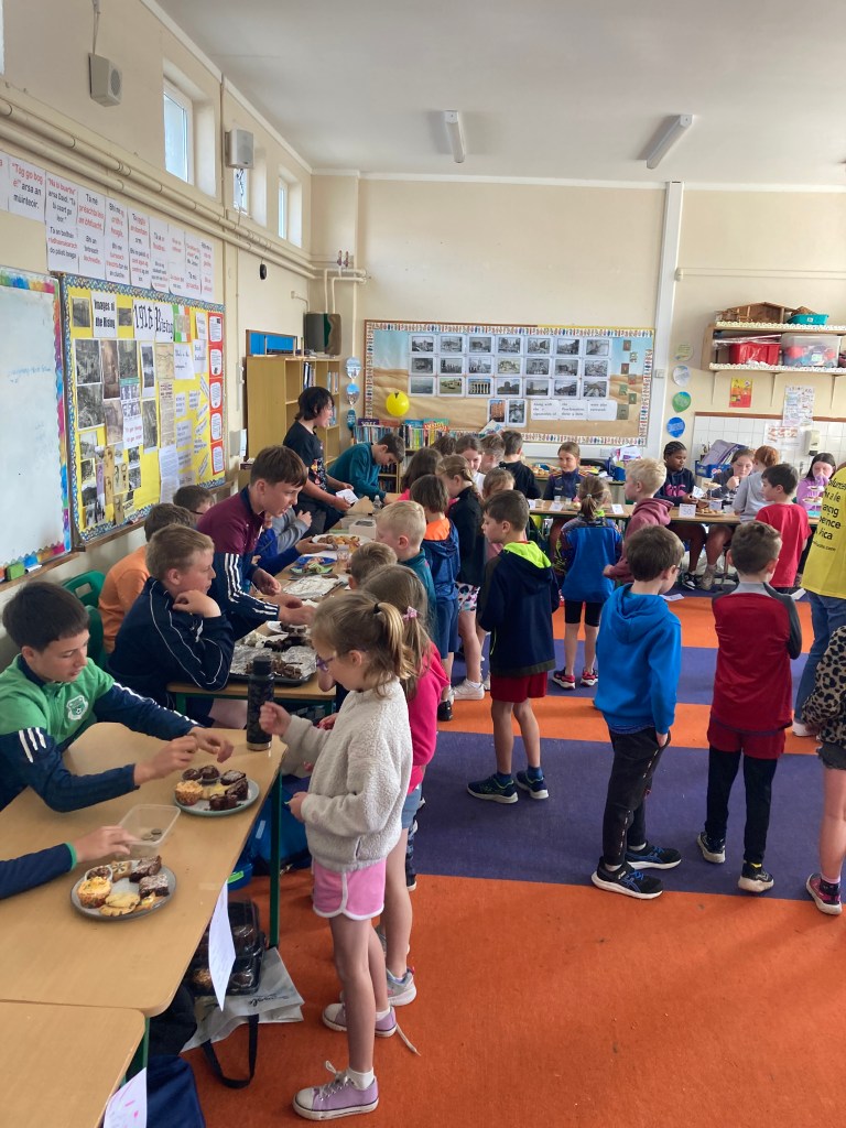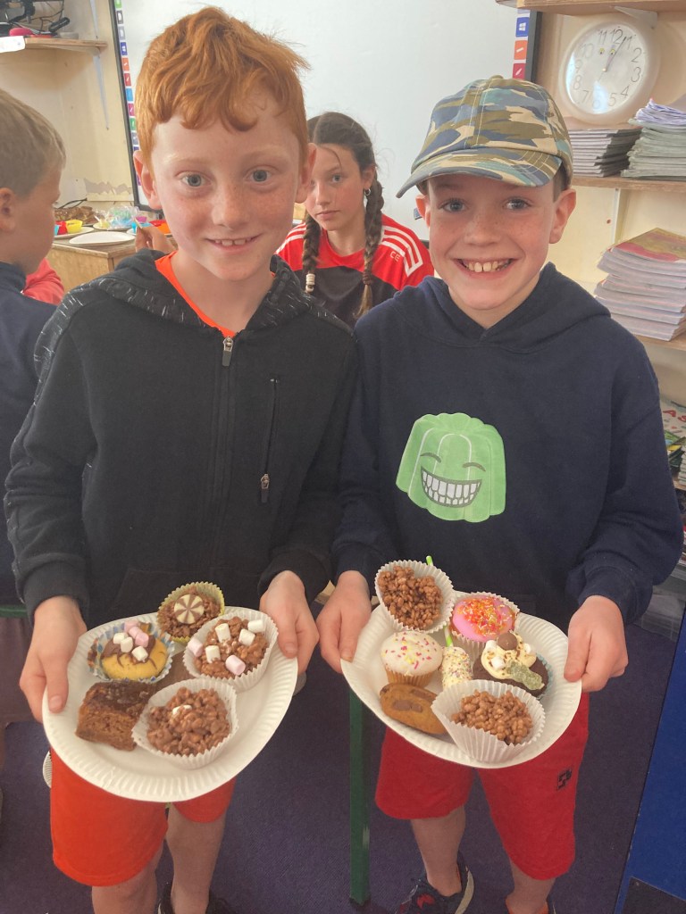 Today’s Bake Sale was a fantastic success, with a grand total of €552.67 raised for the Niall Mellon Building Blitz 2024. Well done to Rang a Cúig for all their hard work. Have a look at the many satisfied customers who bought their scrumptious treats today!
