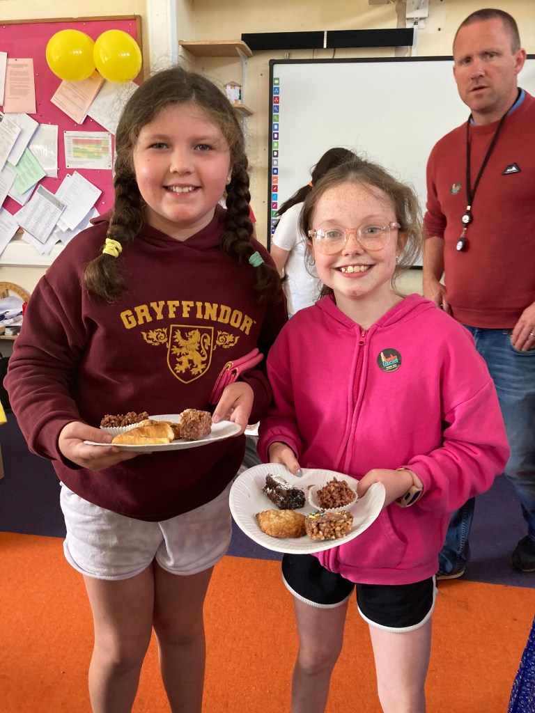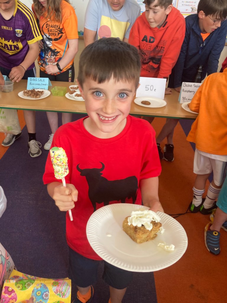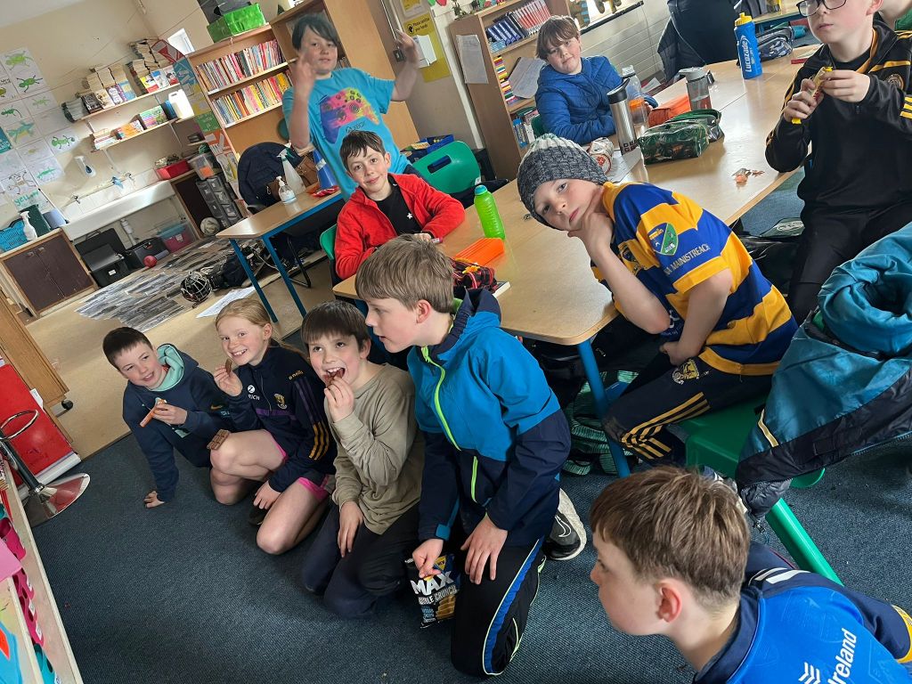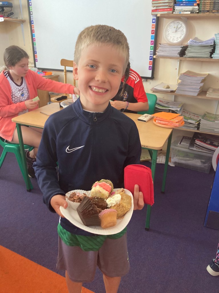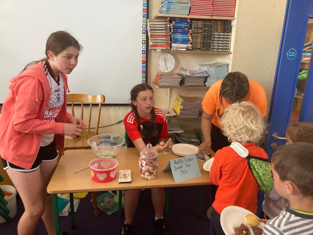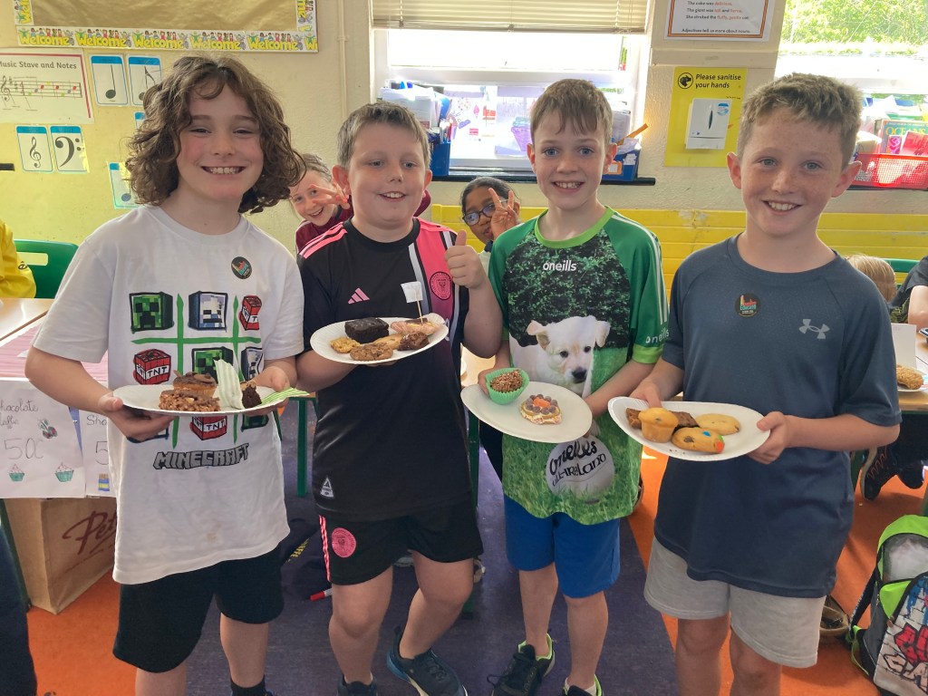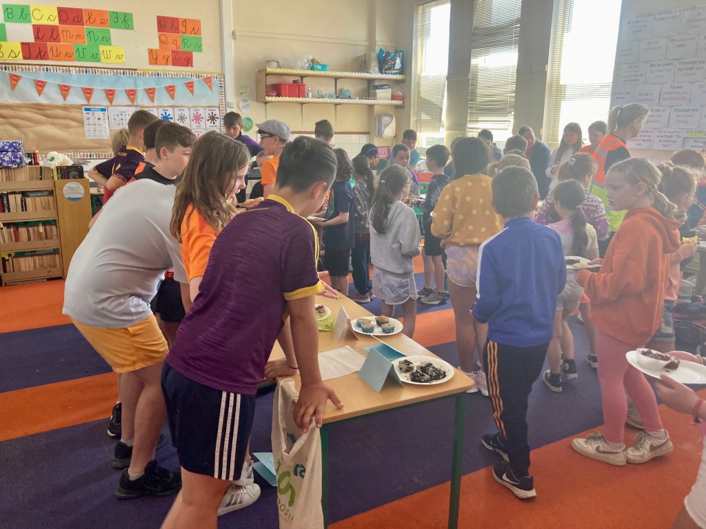 Today’s Bake Sale was a fantastic success, with a grand total of €552.67 raised for the Niall Mellon Building Blitz 2024. Well done to Rang a Cúig for all their hard work. Have a look at the many satisfied customers who bought their scrumptious treats today!