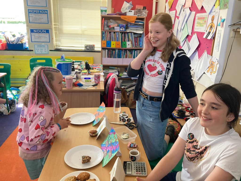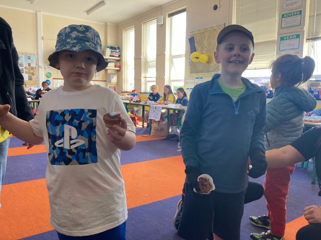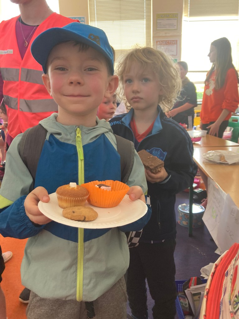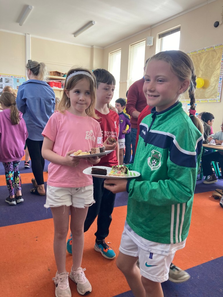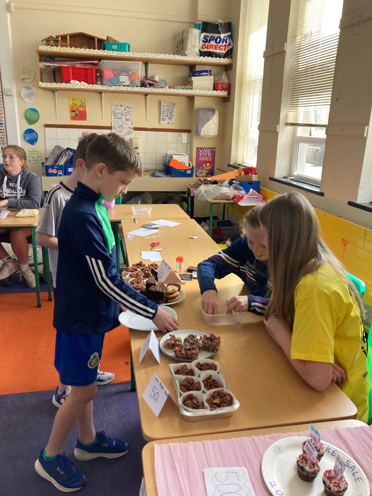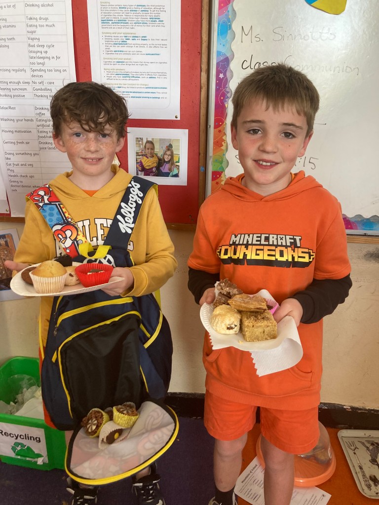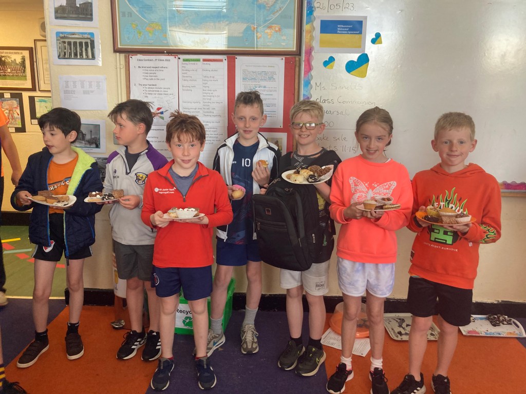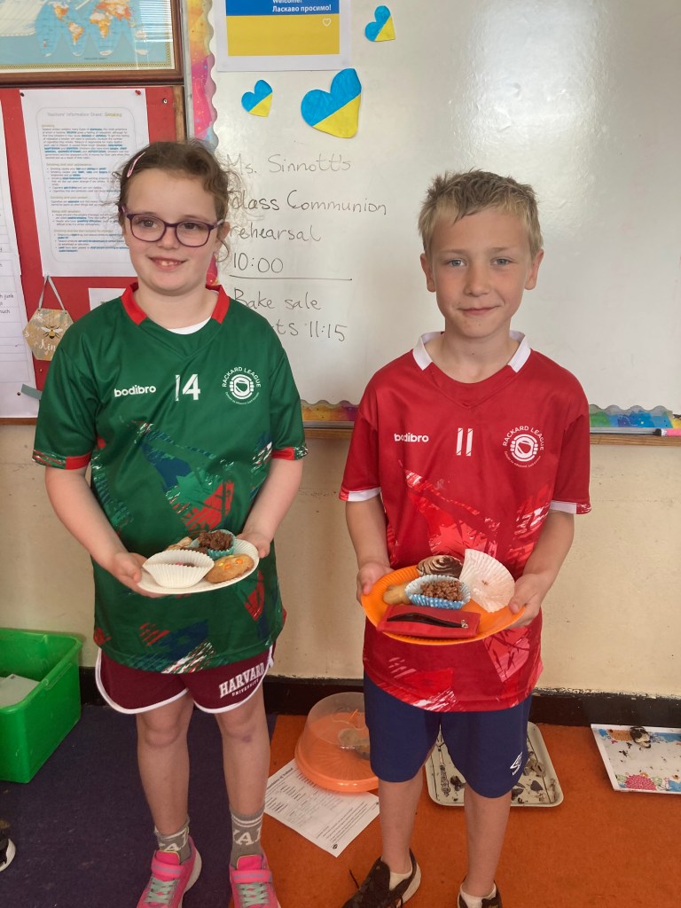 Today’s Bake Sale was a fantastic success, with a grand total of €552.67 raised for the Niall Mellon Building Blitz 2024. Well done to Rang a Cúig for all their hard work. Have a look at the many satisfied customers who bought their scrumptious treats today!