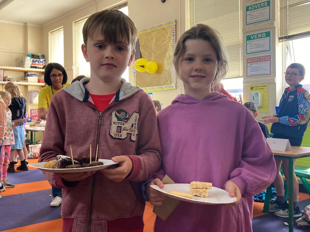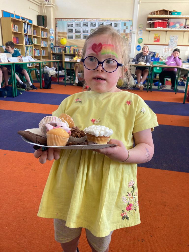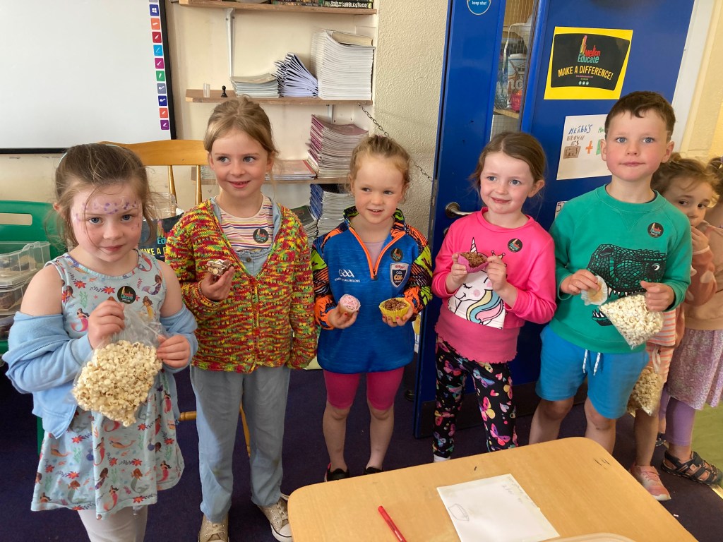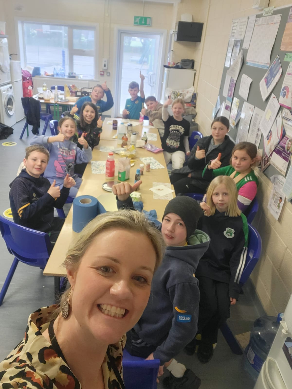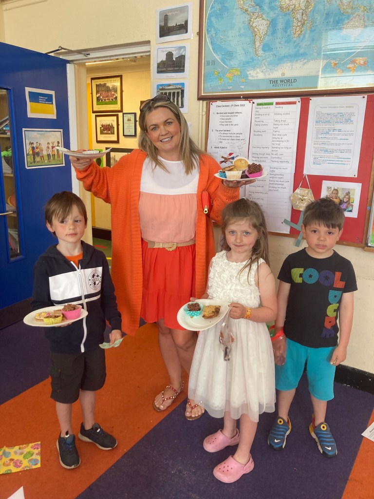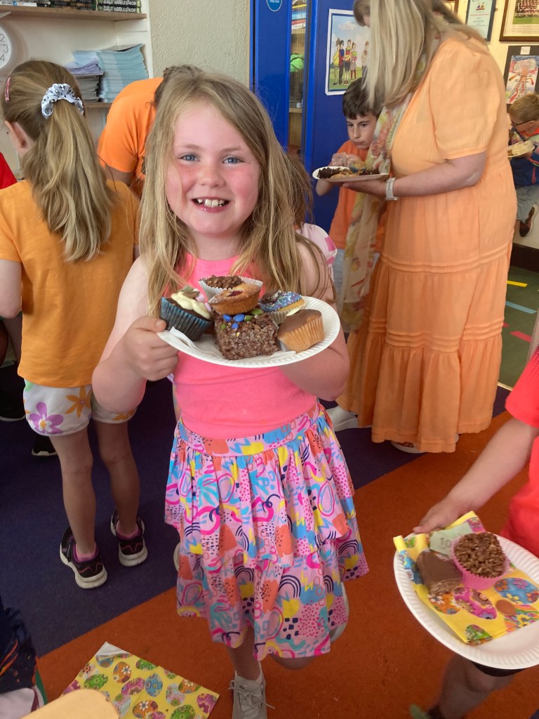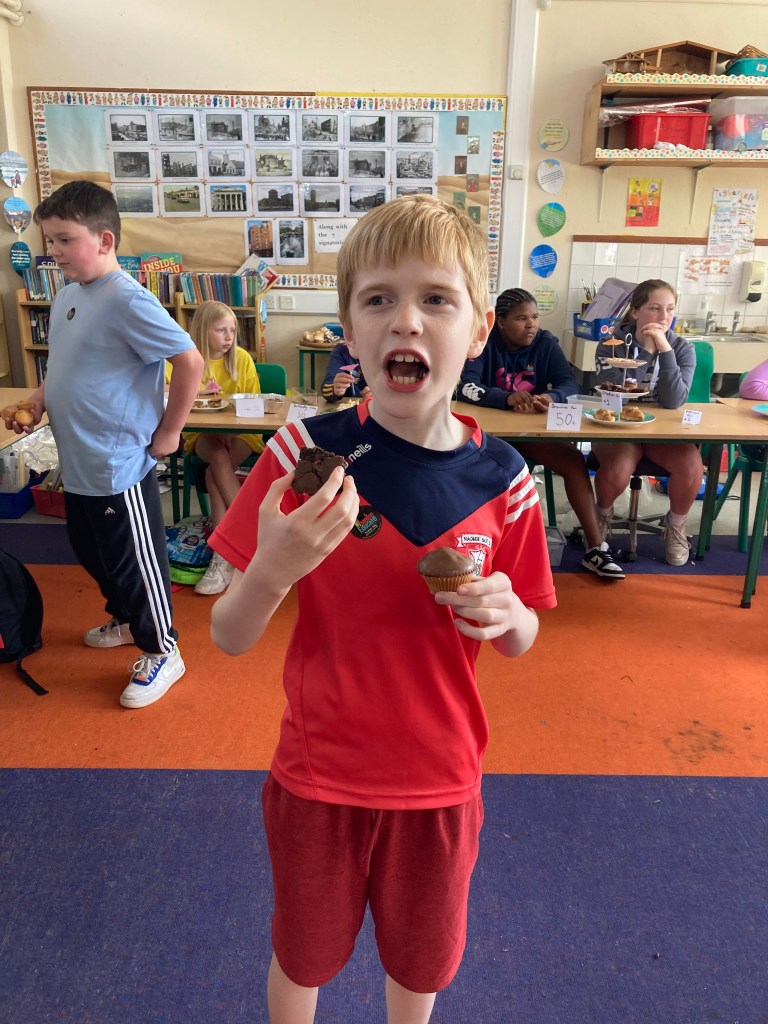 Today’s Bake Sale was a fantastic success, with a grand total of €552.67 raised for the Niall Mellon Building Blitz 2024. Well done to Rang a Cúig for all their hard work. Have a look at the many satisfied customers who bought their scrumptious treats today!