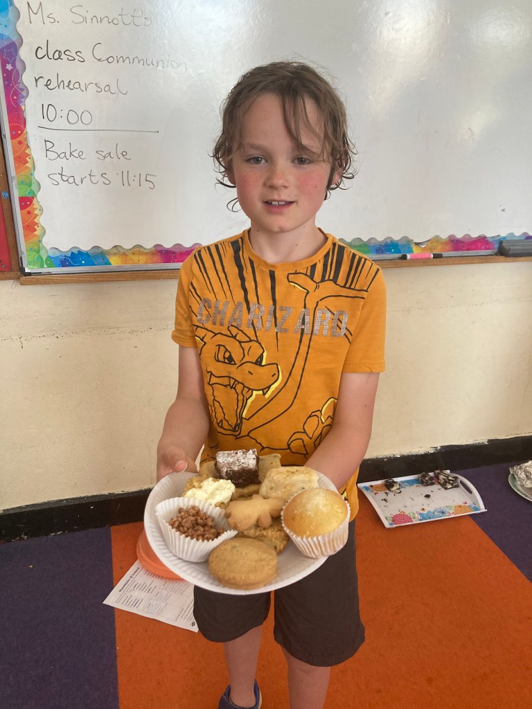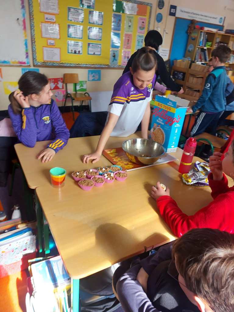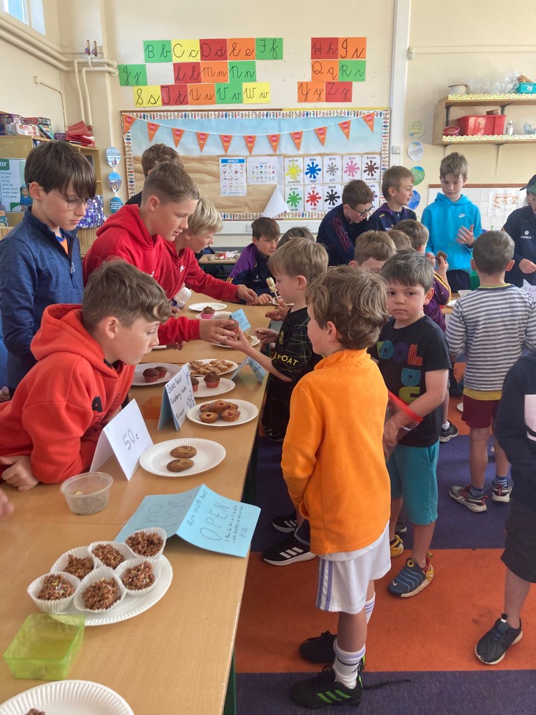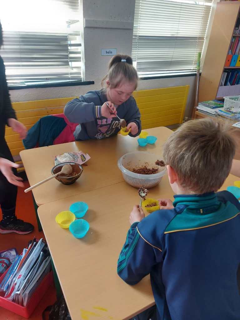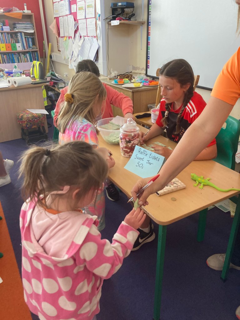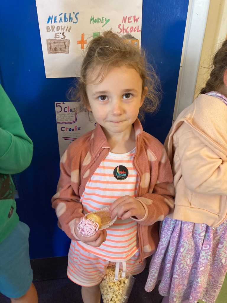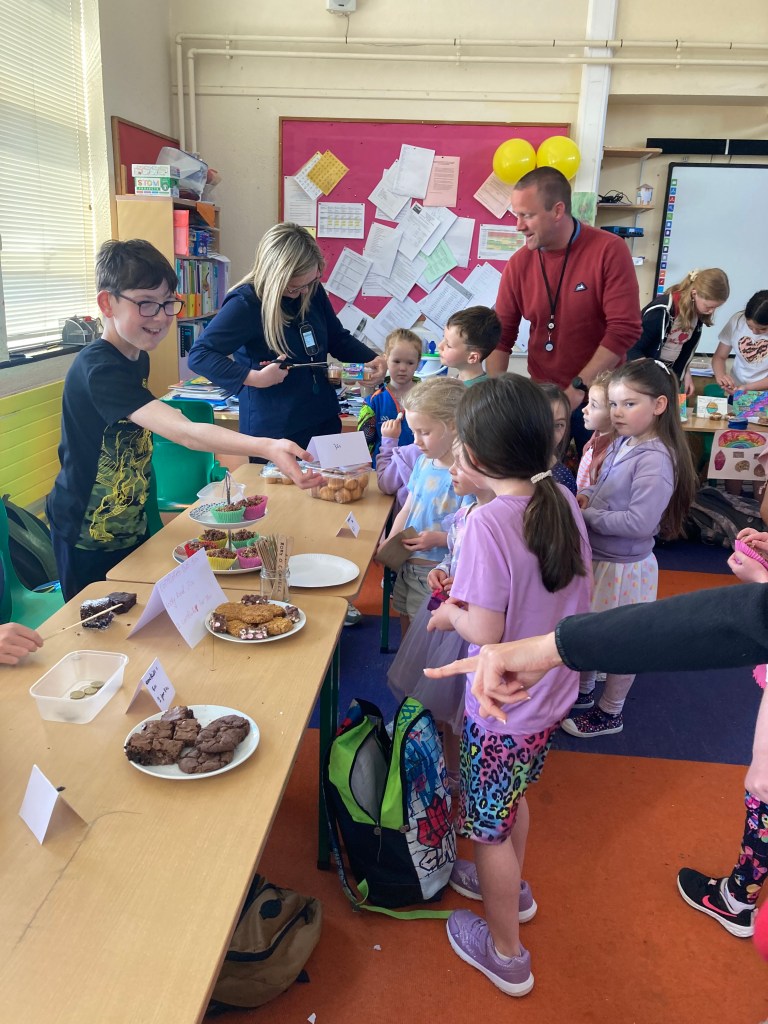 Today’s Bake Sale was a fantastic success, with a grand total of €552.67 raised for the Niall Mellon Building Blitz 2024. Well done to Rang a Cúig for all their hard work. Have a look at the many satisfied customers who bought their scrumptious treats today!