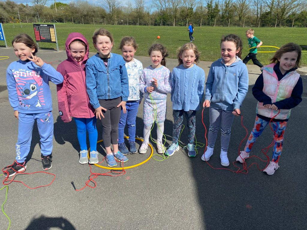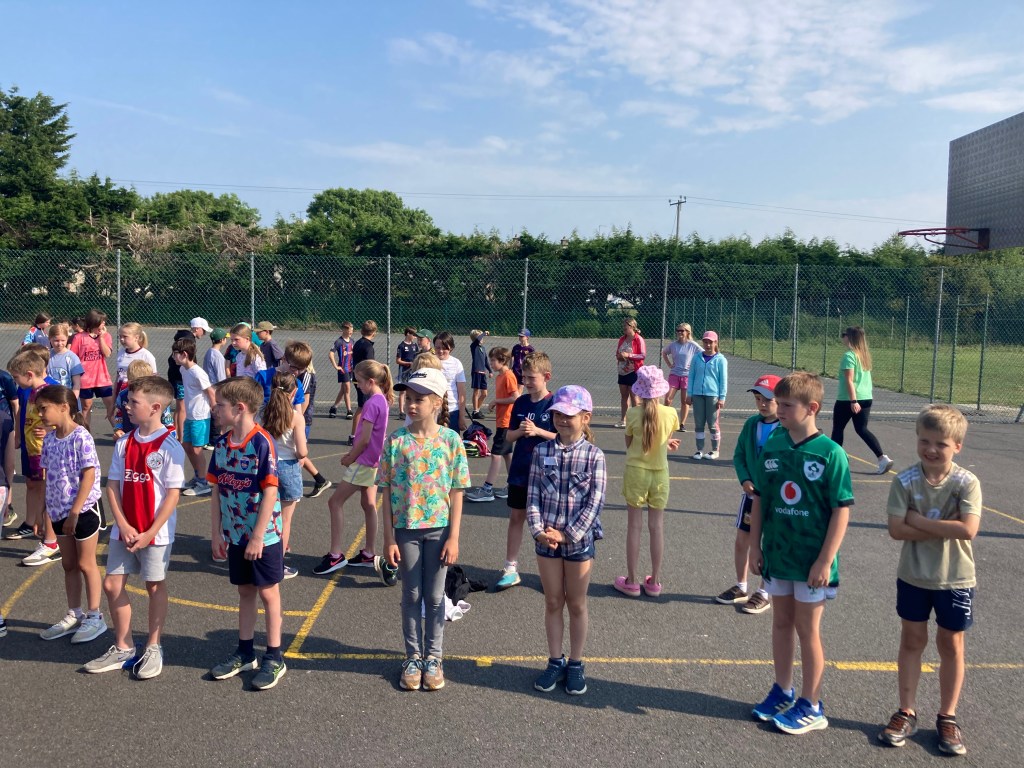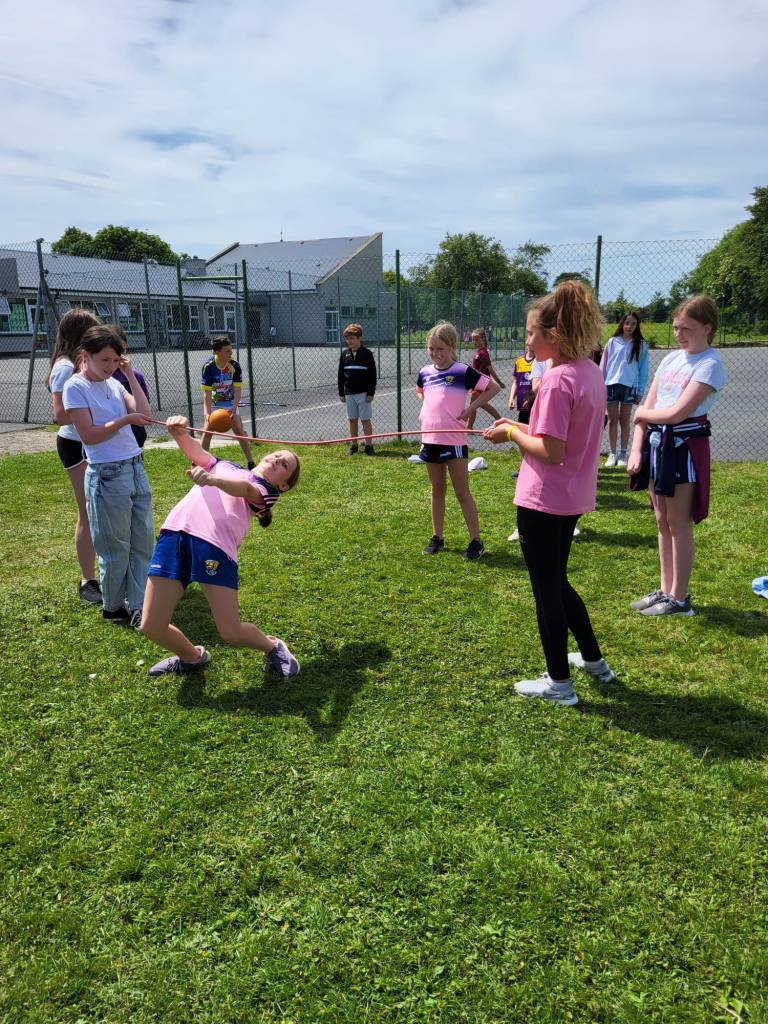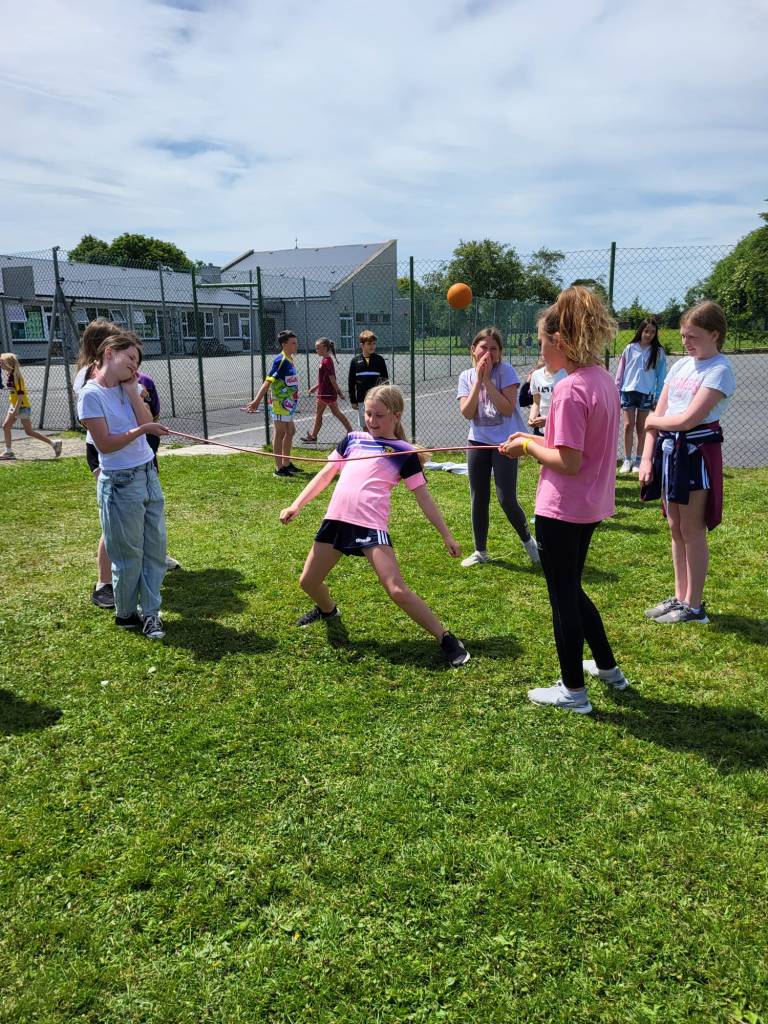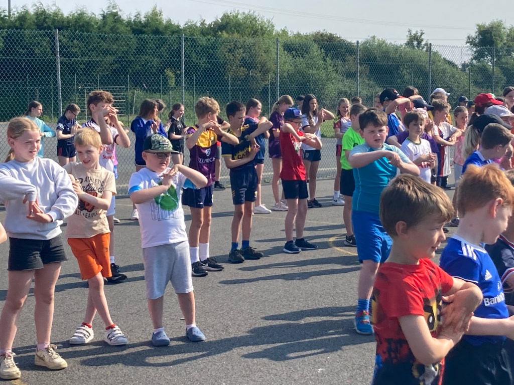 As usual, ACTIVE WEEK concluded with one final, action packed day of activity – our Annual Sports Day! There were GAA challenges, co-operative games, basketball shoot outs, novelty races, hurdles, Canadian kickball, an obstacle course, dancing with the DJ and more! The final of the balance beam competition also took place, as well as our annual firm favourite, the welly throw! This year’s sports day saw the introduction of a new whole school event, a giant relay race, with each team made up of one finalist from each class, ranging from Junior Infants right up to 6th class. Check out the video below which features the whole school events of the day.