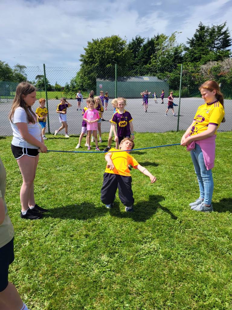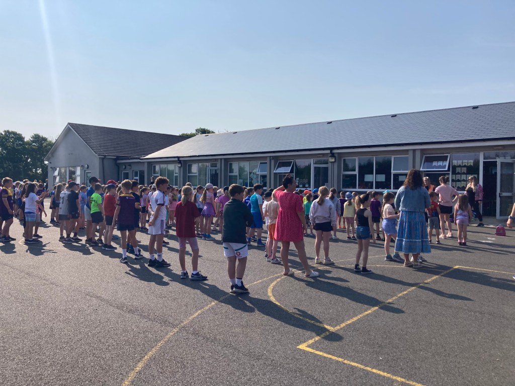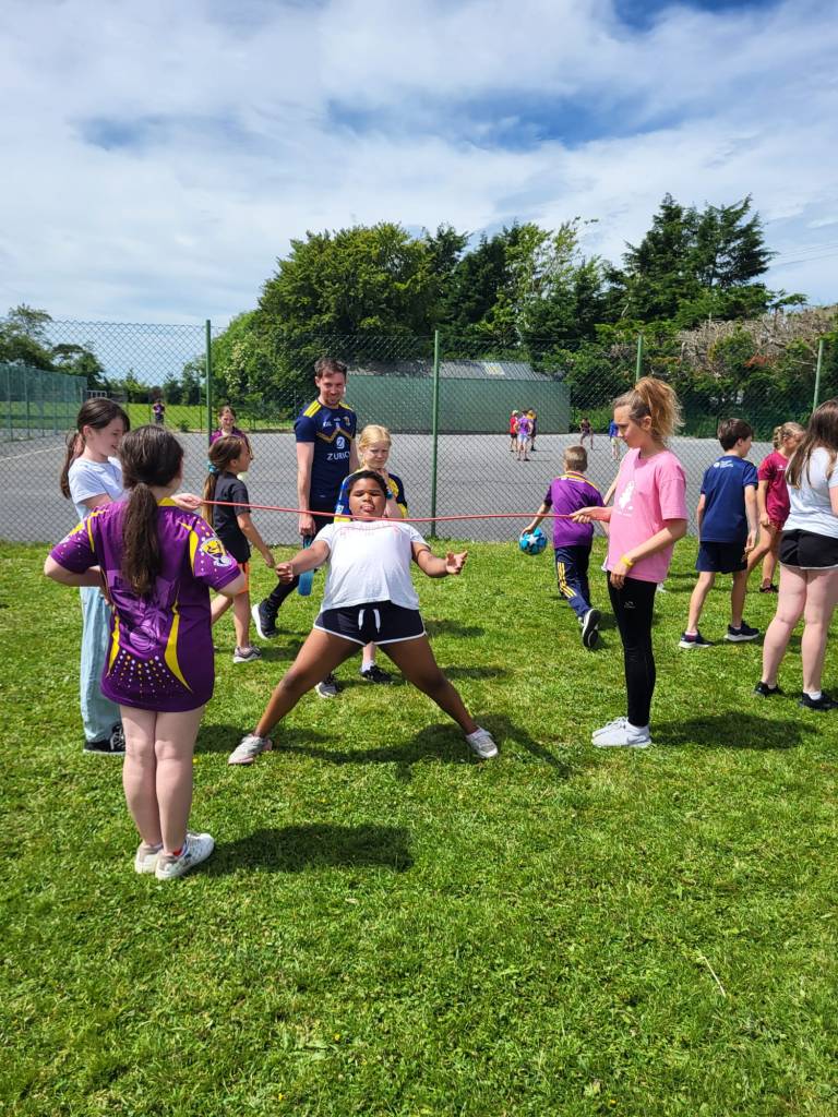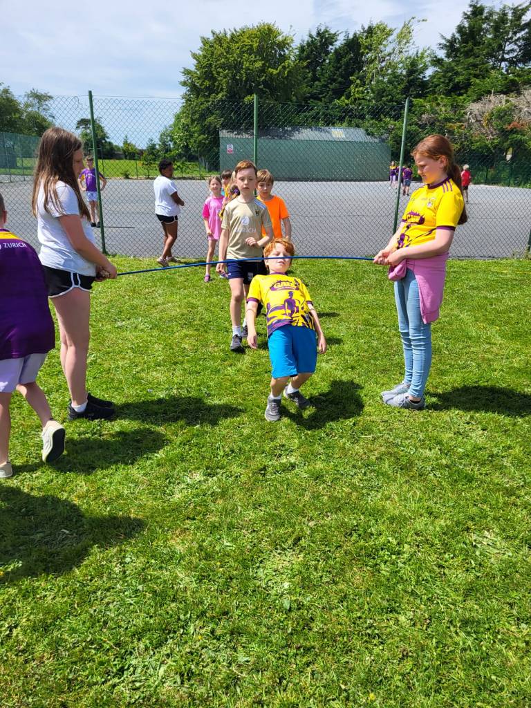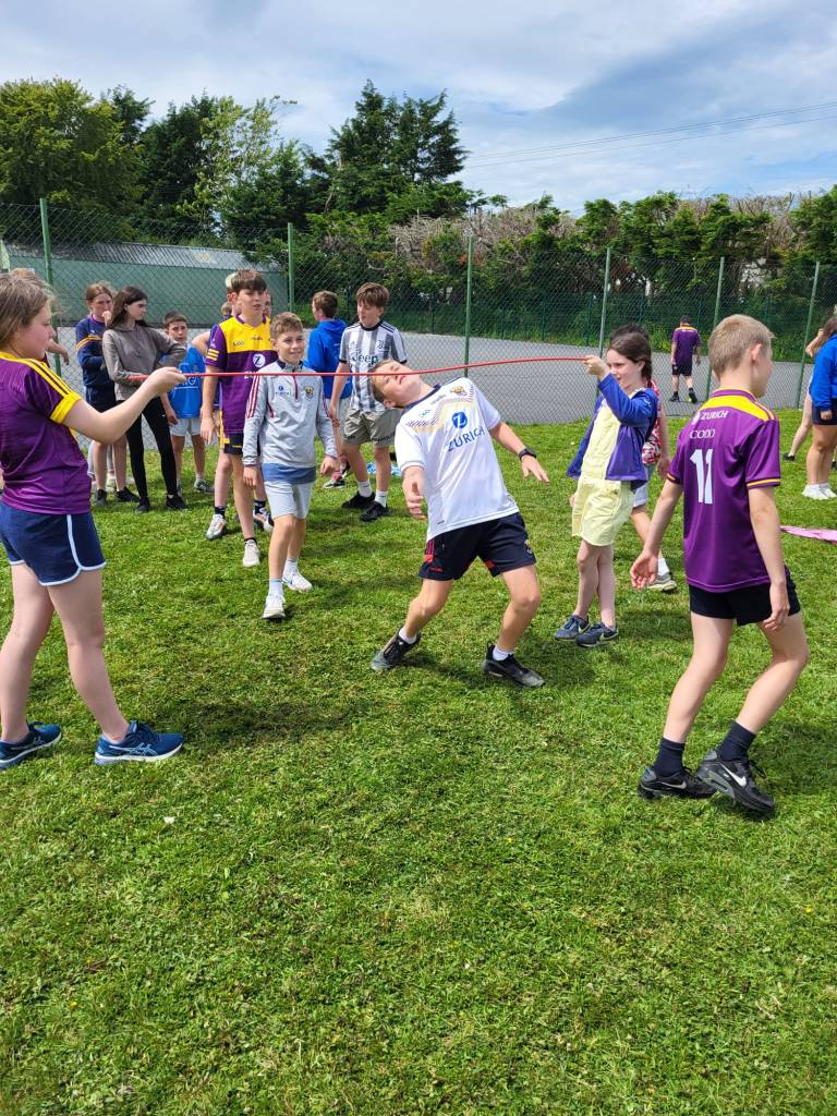 As usual, ACTIVE WEEK concluded with one final, action packed day of activity – our Annual Sports Day! There were GAA challenges, co-operative games, basketball shoot outs, novelty races, hurdles, Canadian kickball, an obstacle course, dancing with the DJ and more! The final of the balance beam competition also took place, as well as our annual firm favourite, the welly throw! This year’s sports day saw the introduction of a new whole school event, a giant relay race, with each team made up of one finalist from each class, ranging from Junior Infants right up to 6th class. Check out the video below which features the whole school events of the day.