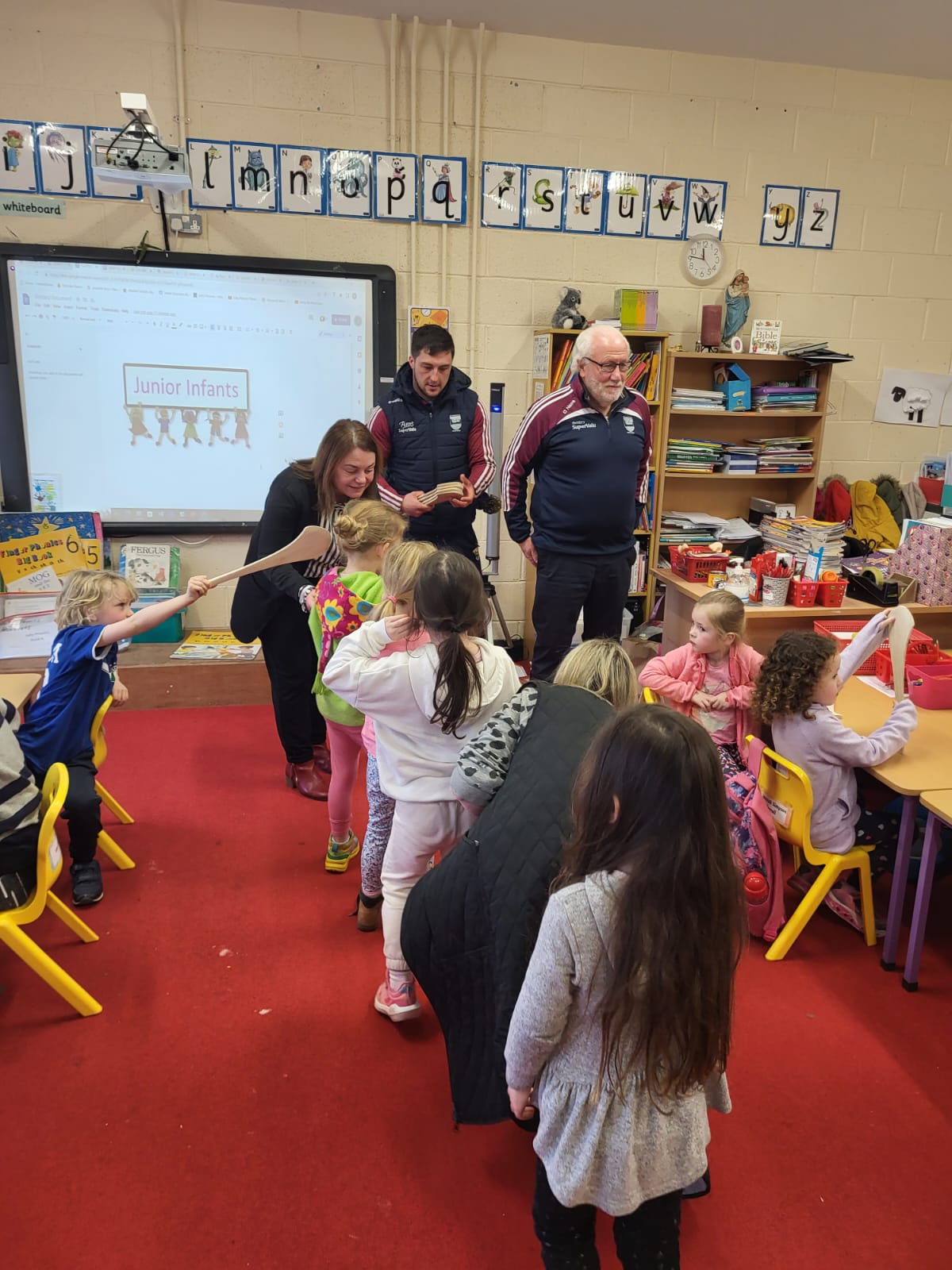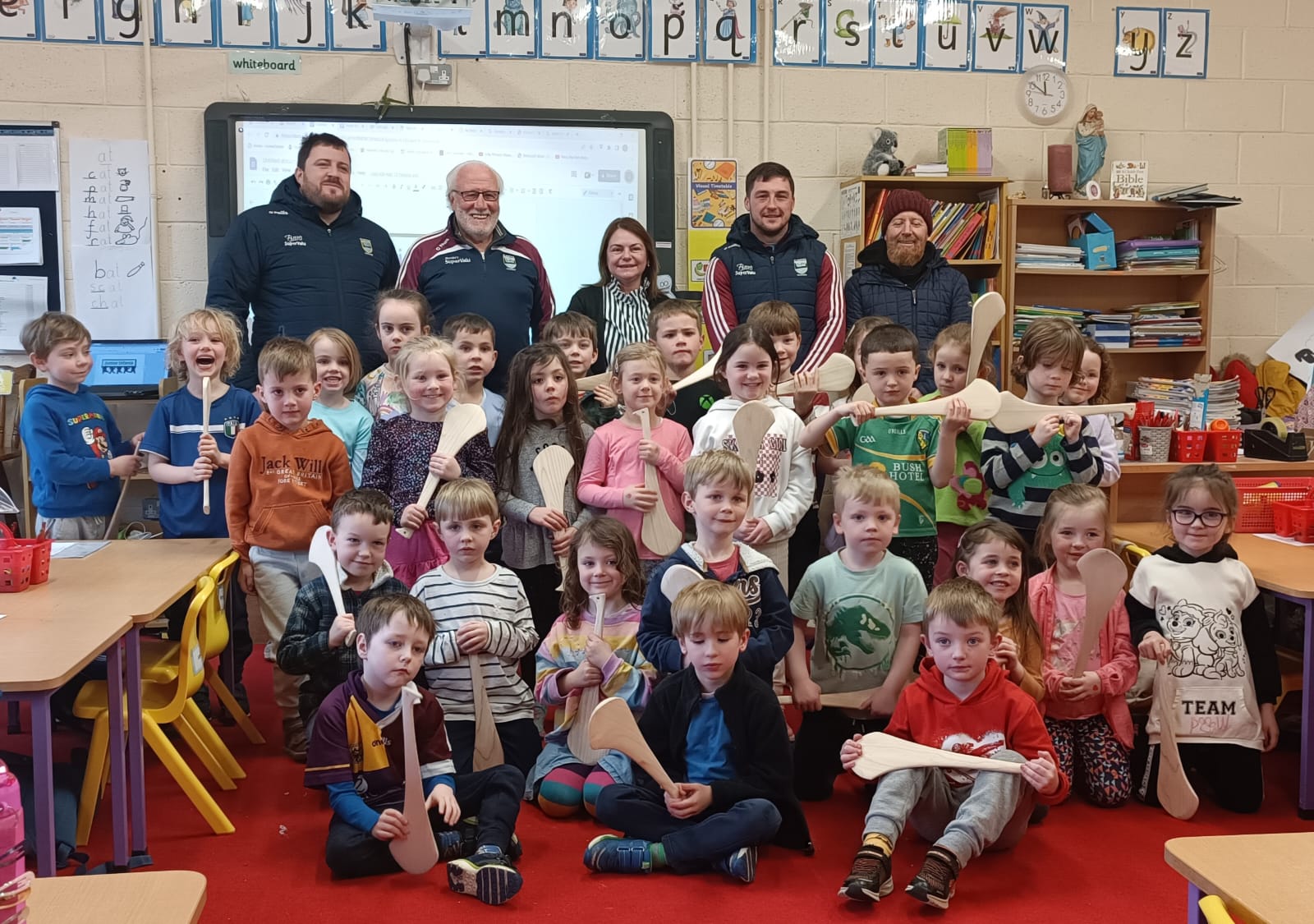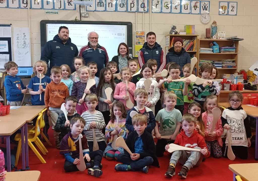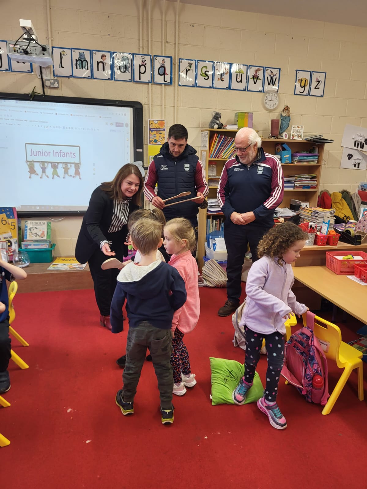 Piercestown N.S. were delighted to welcome some very special guests today, Tuesday 20th October, for the official launch of Camán Everybody – a programme aimed at introducing the fundamental skills of hurling from a young age. Among those present were Chairperson of Coiste na Nóg, Mick O’Connell, John O’Connor, Coaching Officer, Séamus Casey, Games Promotion Officer and Willie Clancy who made the hurls.