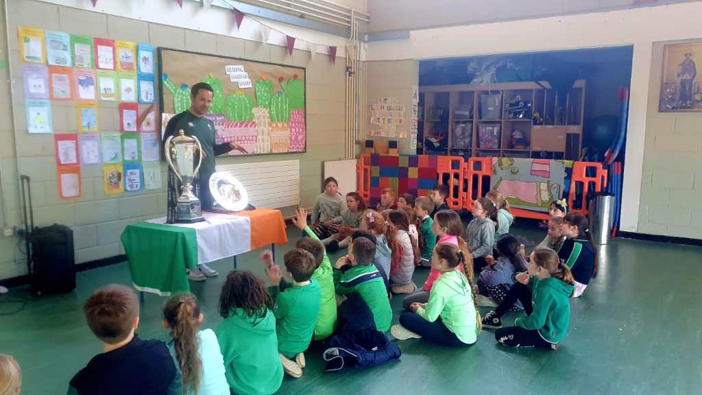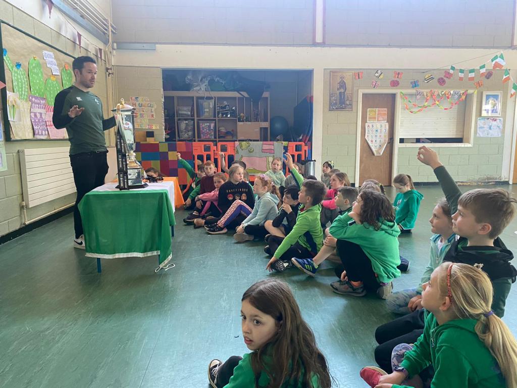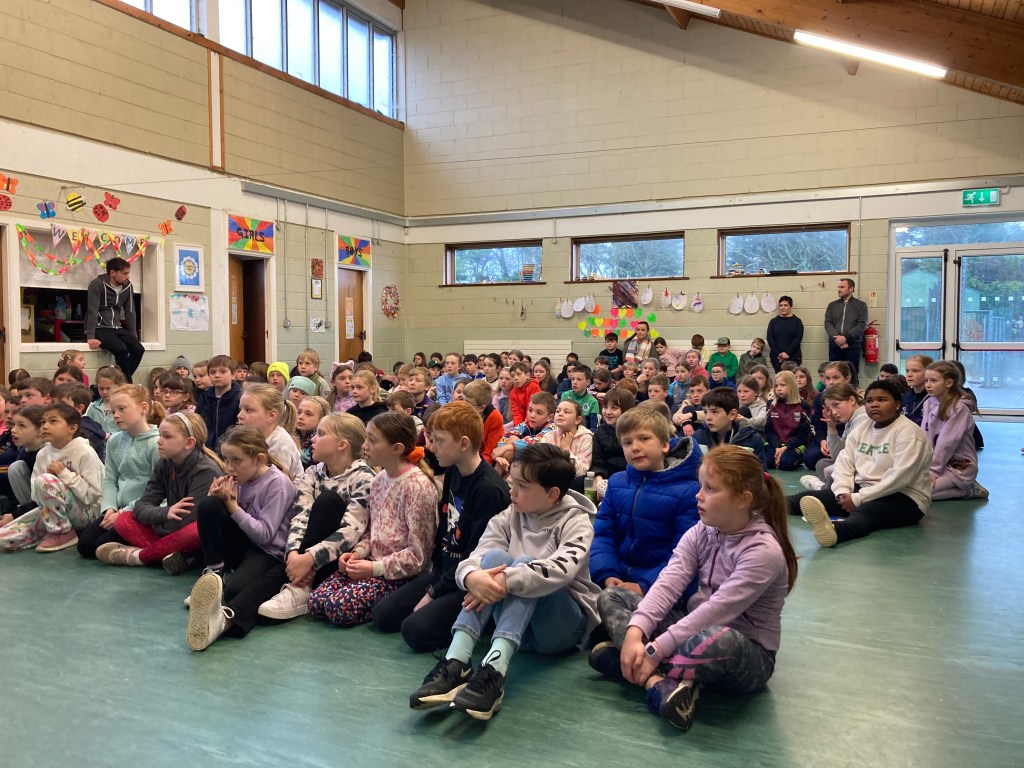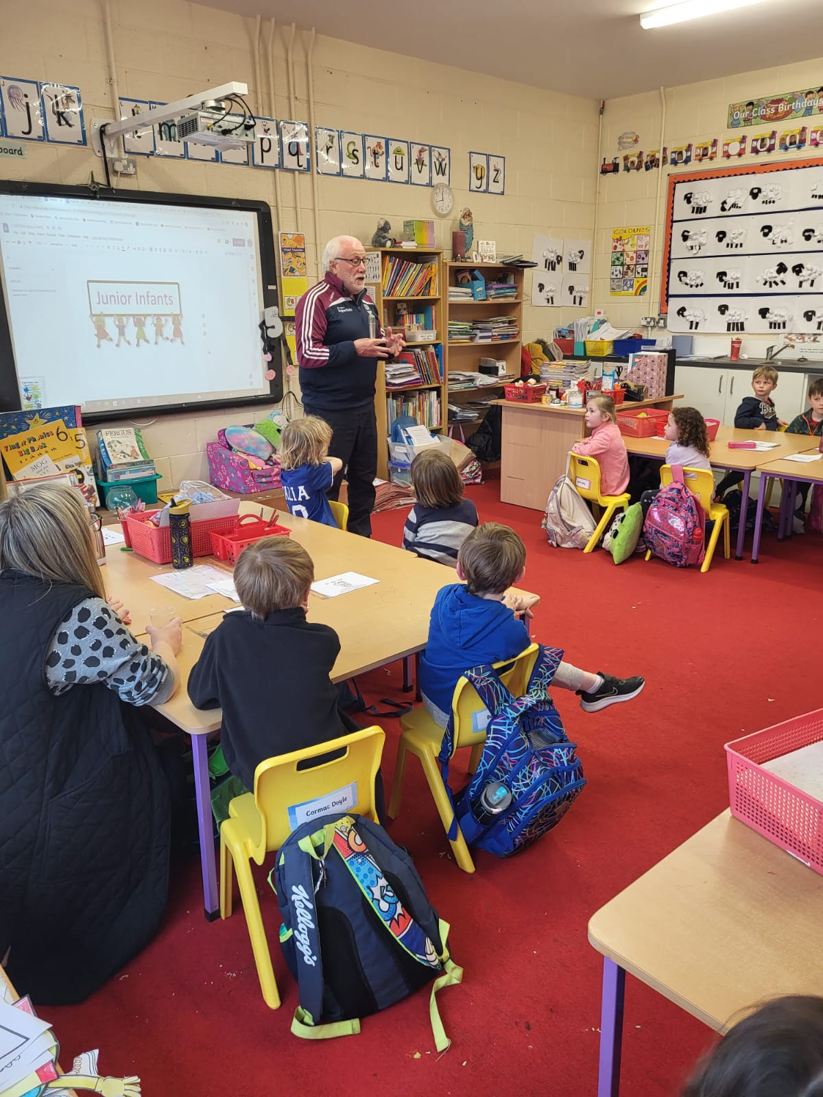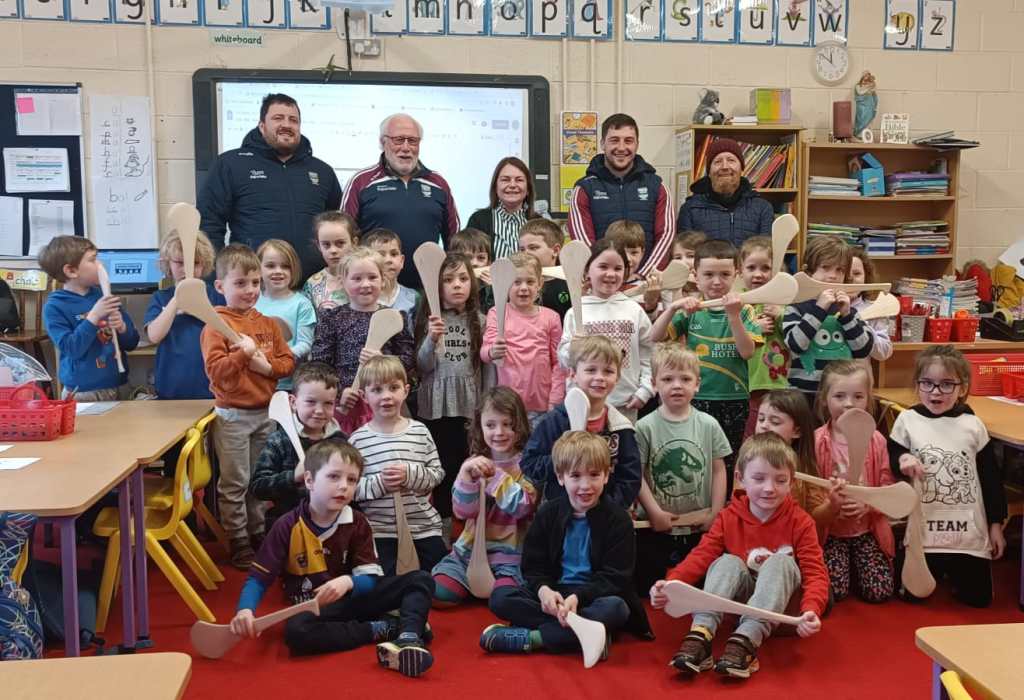 Piercestown N.S. were delighted to welcome some very special guests today, Tuesday 20th October, for the official launch of Camán Everybody – a programme aimed at introducing the fundamental skills of hurling from a young age. Among those present were Chairperson of Coiste na Nóg, Mick O’Connell, John O’Connor, Coaching Officer, Séamus Casey, Games Promotion Officer and Willie Clancy who made the hurls.