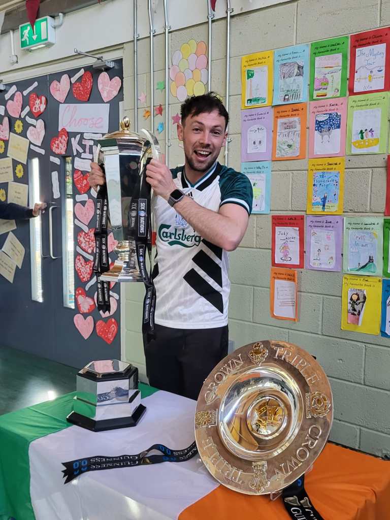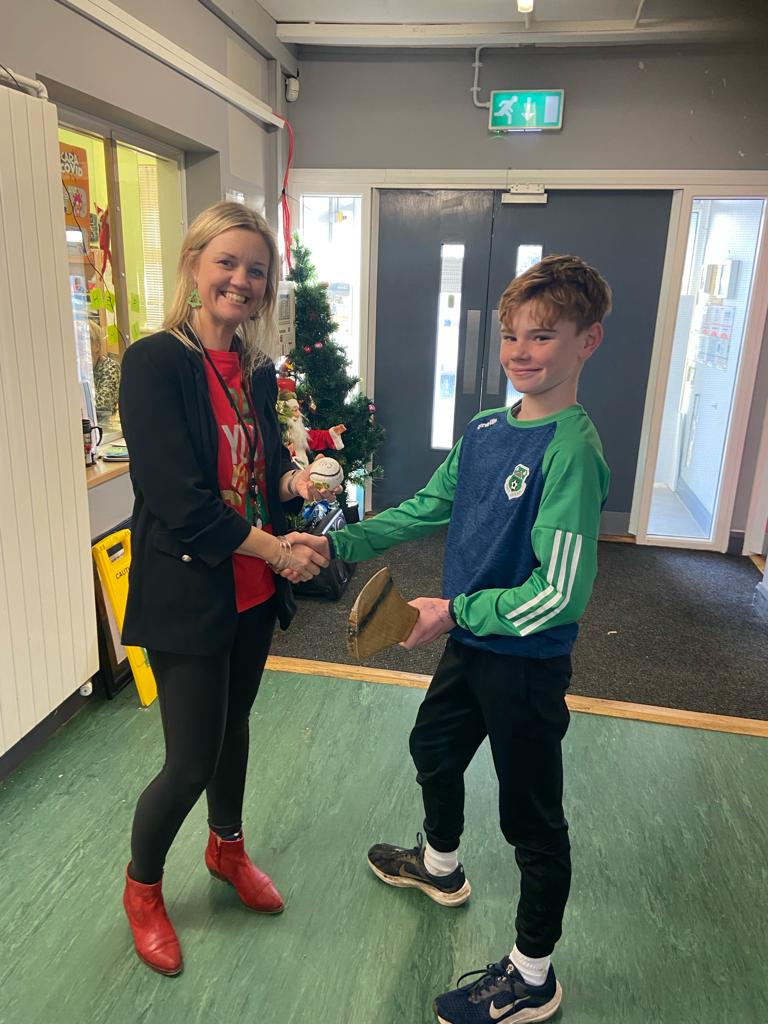 There was great excitement on Monday afternoon, as the two teams who reached the final from our lunchtime league took to the field to see who would take home the ‘Daithi Waters’ cup! Donning the St. Martin’s and Shels jerseys, there was great rivalry from the get go. However, as is the nature of the lunchtime league, with inclusivity being at the core of its existence, the sportsmanship on the day and throughout the tournament was palpable. Our lunchtime league includes all pupils from 4th-6th class regardless of experience, previous participation or specific skill set and proves to be one of the most successful sporting events that our school hosts. Lead this year by Mr. Brian Murphy who took the baton from Ms. Michelle Hearne and ably assisted by the pupils from 6th class, this years tournament did not disappoint.