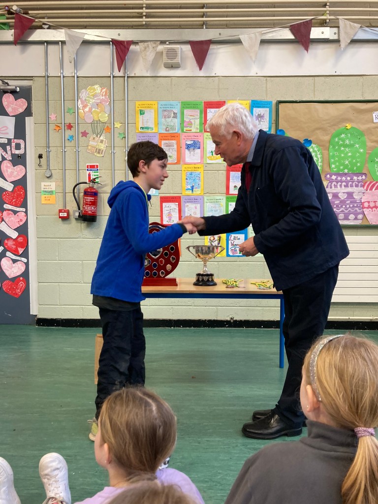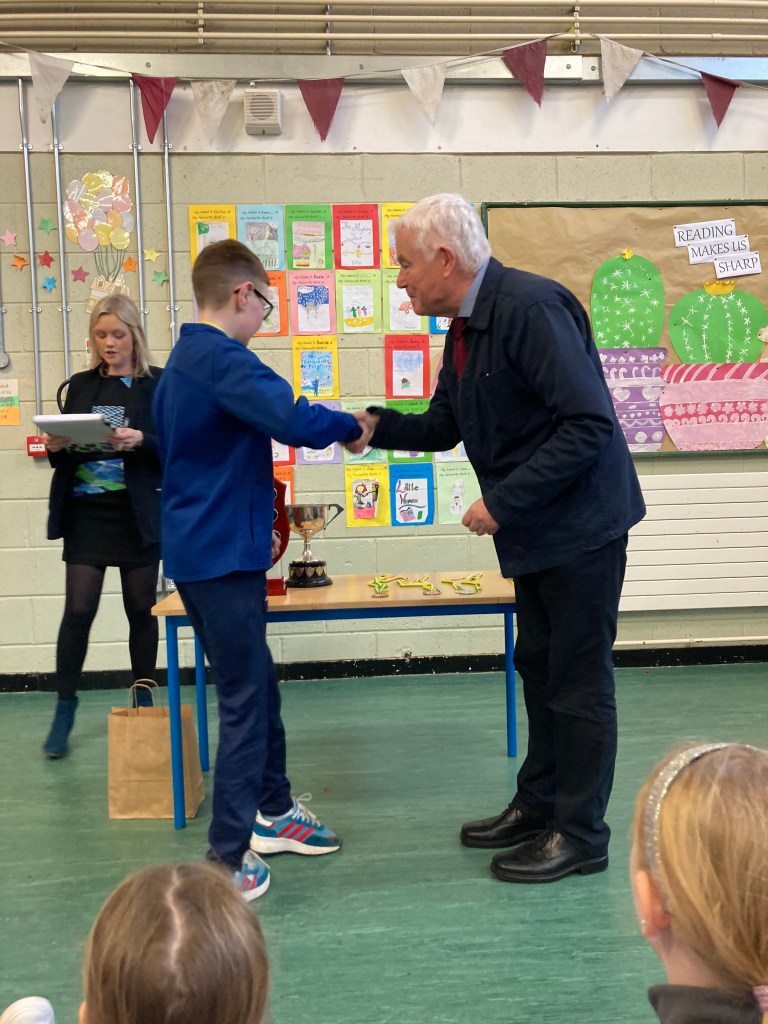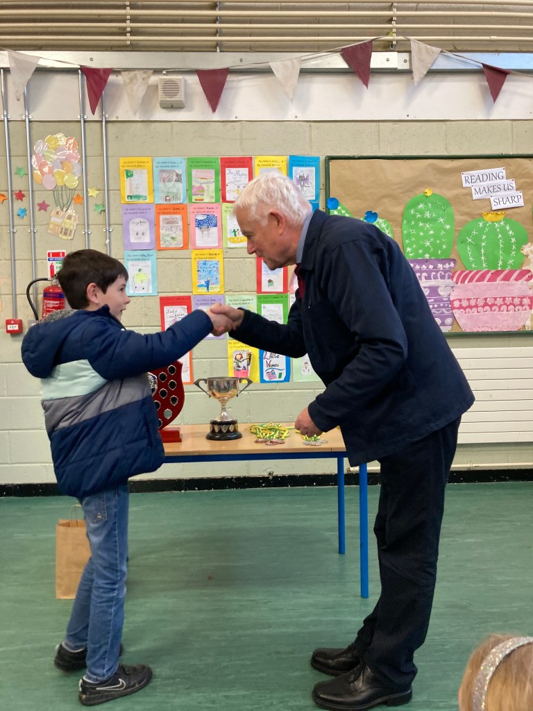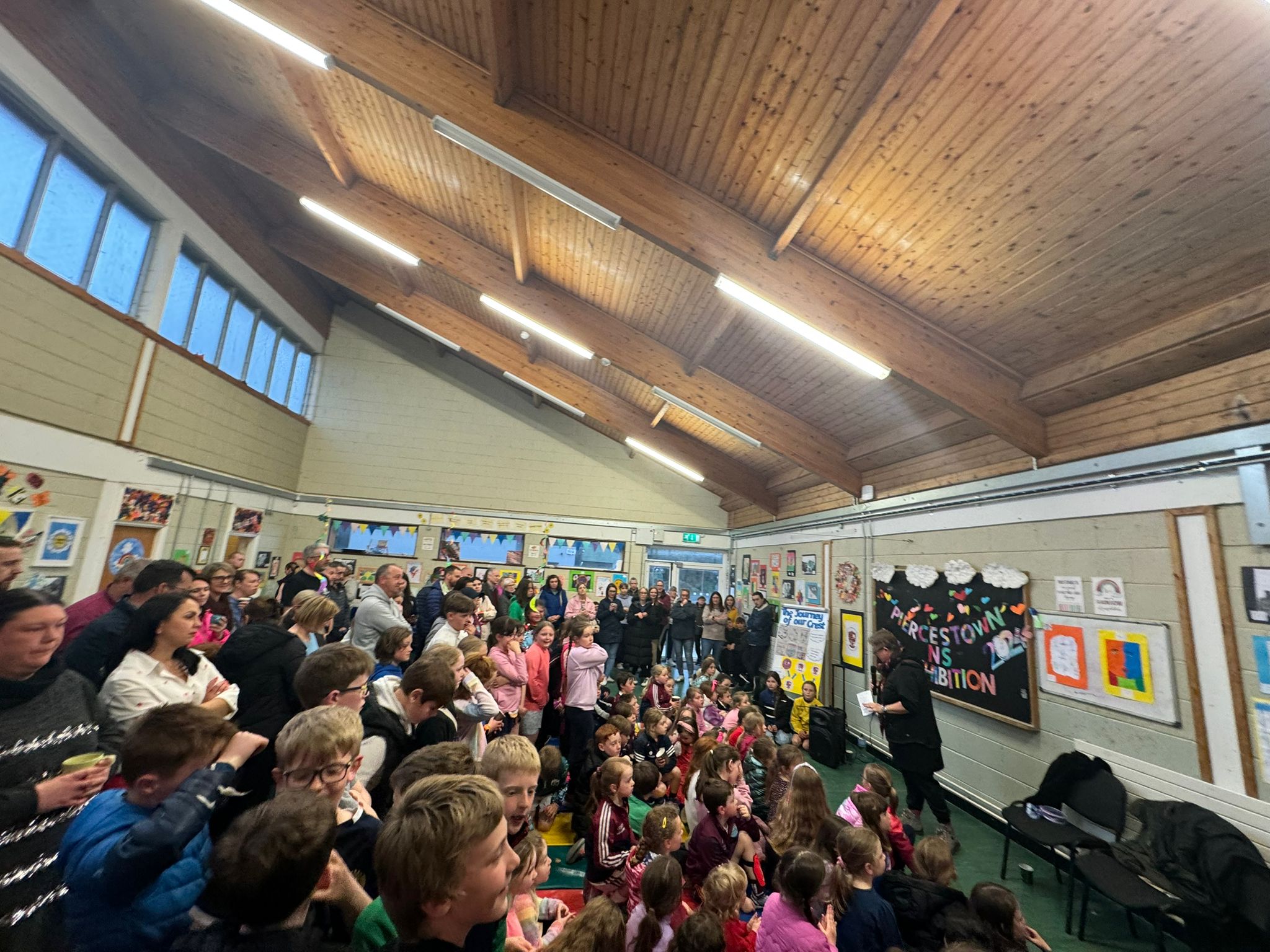 180 children ranging from 1st class to 6th class took part in our recent handwriting competition, where we looked at children’s handwriting and how it developed and improved during term two. At the end of this period we held our first ever handwriting awards ceremony on Friday 22nd March and many children received certificates of excellence for their efforts. One child from each class and one from SET, each received a very special glass trophy, the first of its kind to feature our new school crest. The overall winner, Oliver from 2nd class, was presented with a beautiful pen and glass holder. Check out the video to see the children who received awards. Well done to everyone involved!