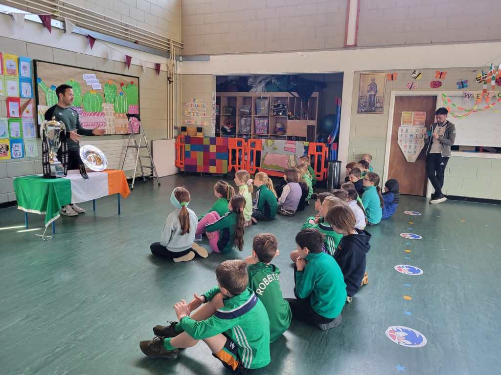 Members of Forth Celtic Soccer club, including past pupil Adam Murphy, visited our recently to talk to the children and show us their silverware. There was even a keepy uppy competition!