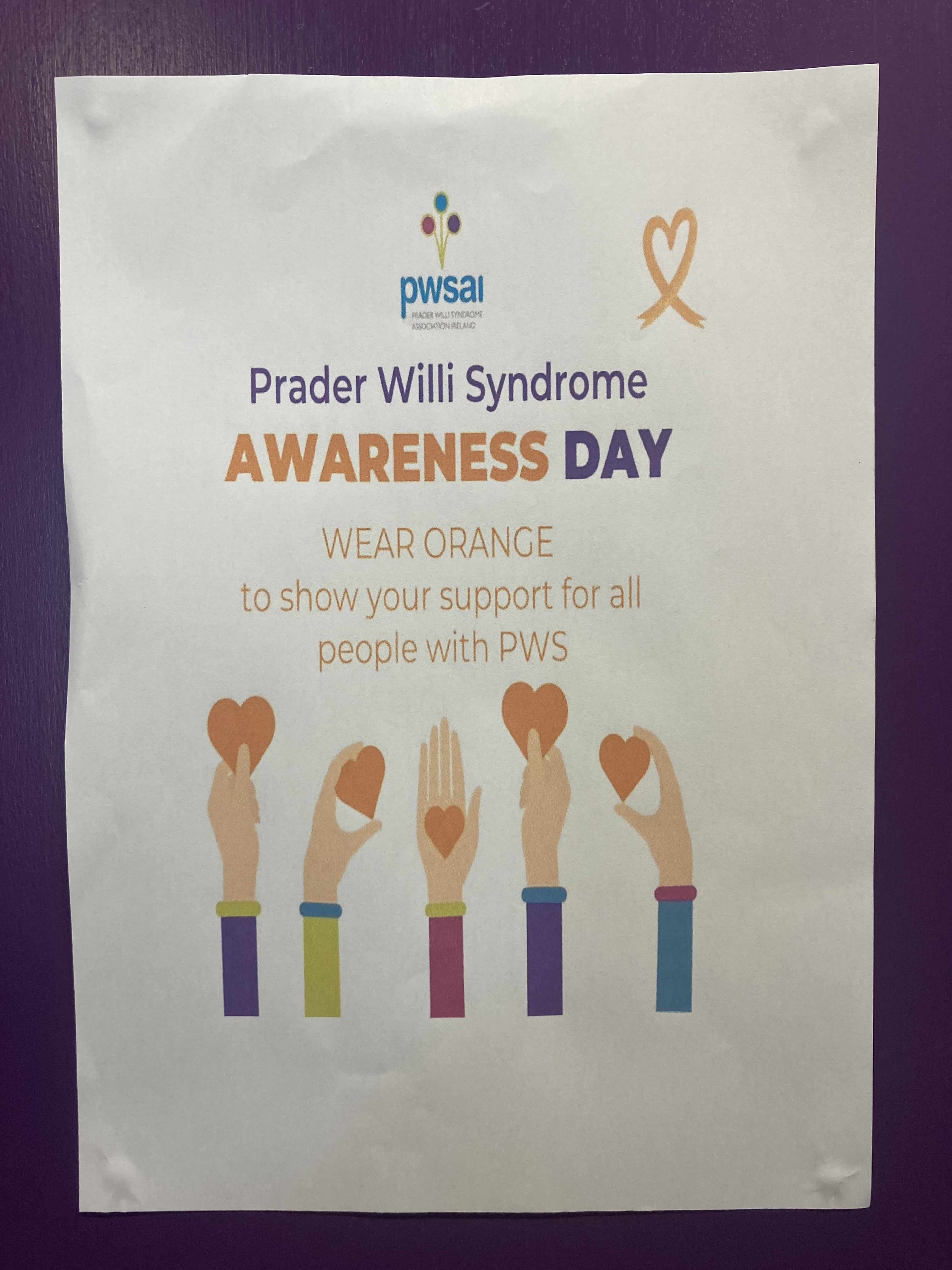 Piercestown School Community go orange for Prader Willi Syndrome Awareness Day!