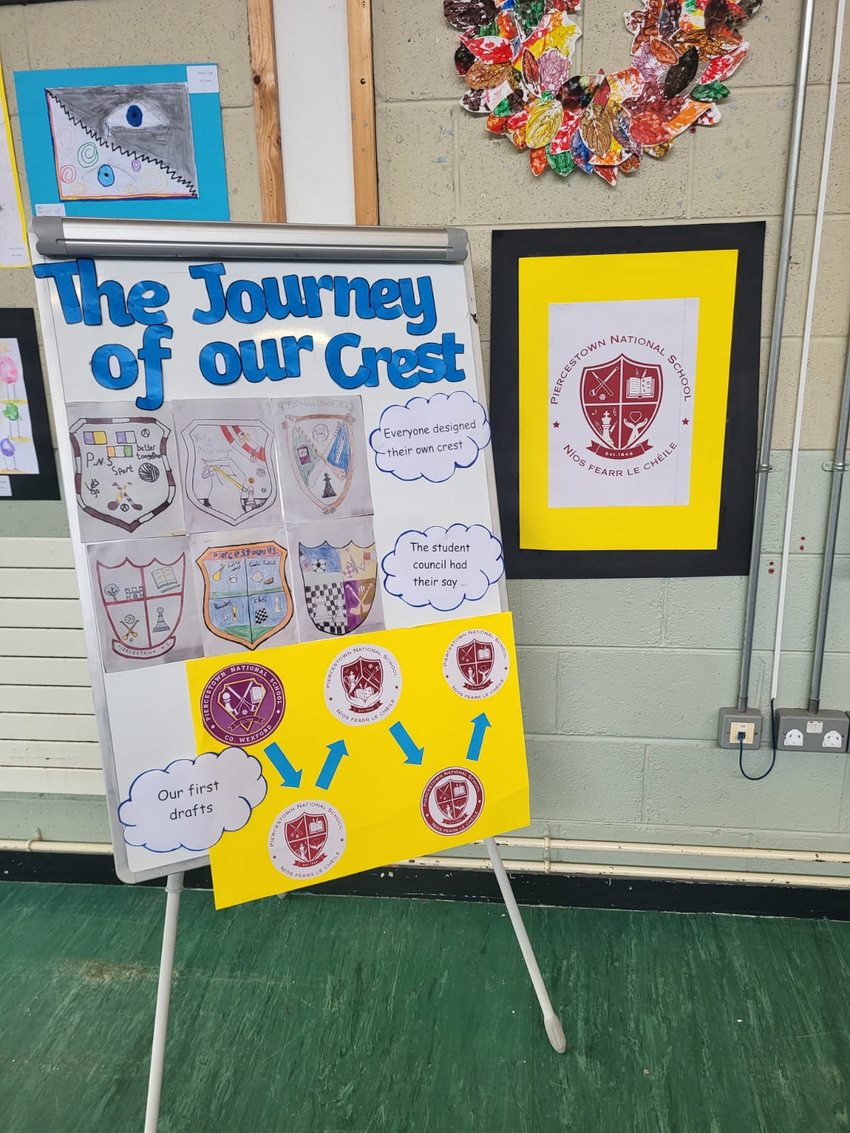 One of our projects this year, created entirely by the pupil population is that of the Design of our School Crest. As you will all know, we are one of a few schools who have no uniform and while we fully embrace this and the uniqueness it allows, we decided that a crest to identify us and show our characteristics and traditions associated with Piercestown NS was something of interest to us. As a school, we opened up an art competition last year, to find the perfect crest that defines us! There was great excitement as our fabulous new crest was officially unveiled at our exhibition too – another gem to be proud of! We look forward to putting our crest on our letterhead, on the entrance to our school and on a set of jerseys that we are in the process of designing.