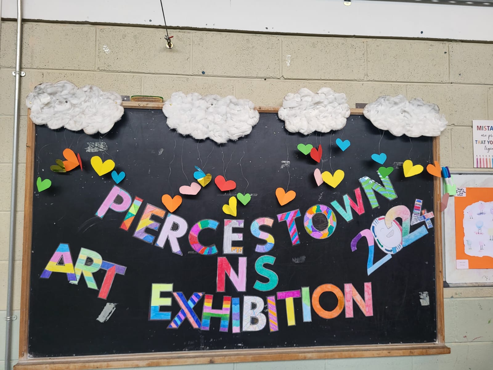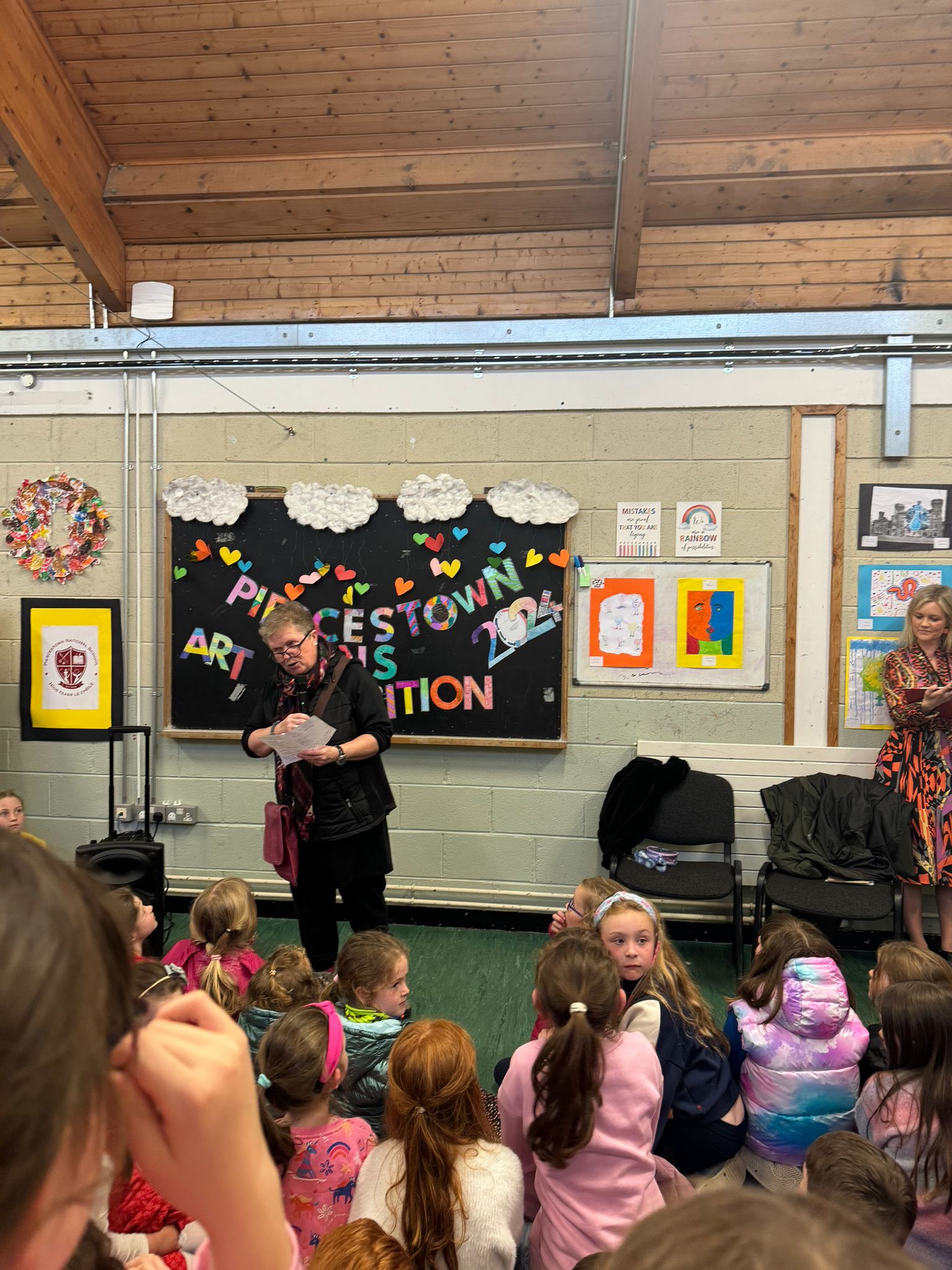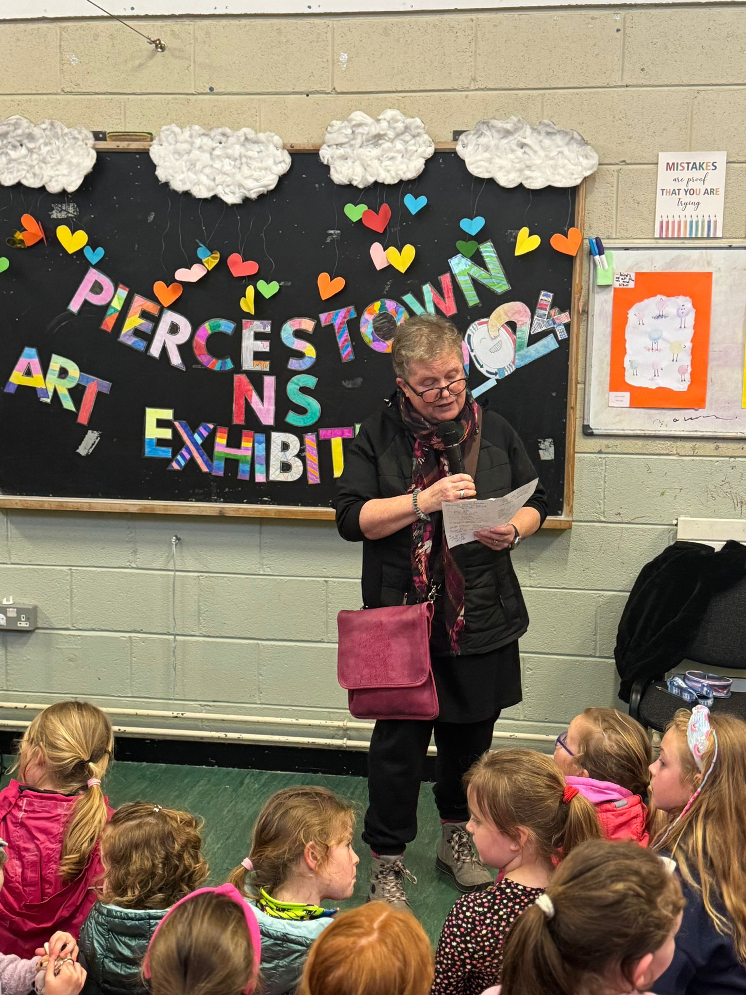 There was a wonderful buzz of excitement and creativity floating through the Piercestown N.S. building on the 25th April, as we celebrated our 10th annual art exhibition, with our very talented artists flocking to the hall with their families and friends, where they were welcomed by Ms. Walsh and special guest and amazing artist Helen Gaynor.