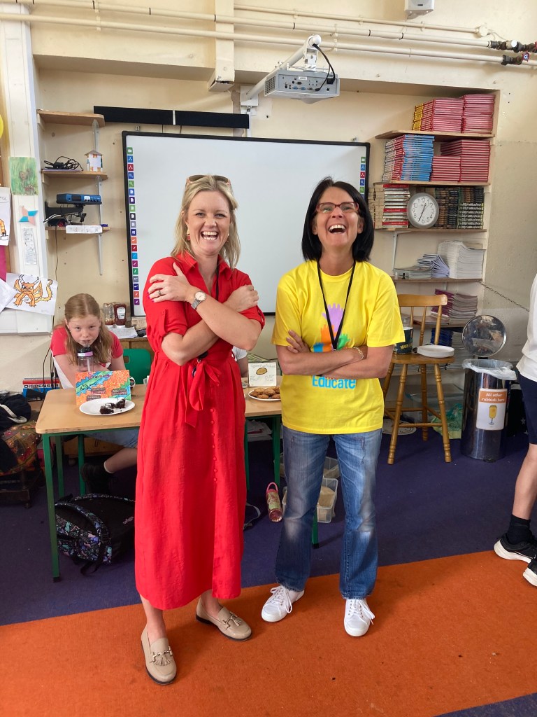 At 12 noon, the wait was no more. Over the intercom, Ms. Walsh announced the arrival of Suzanne and Amanda to hand over the much eyed up mystery boxes! Each teacher had randomly selected two children from their class to receive the box on behalf of the class and return it for the grand reveal.