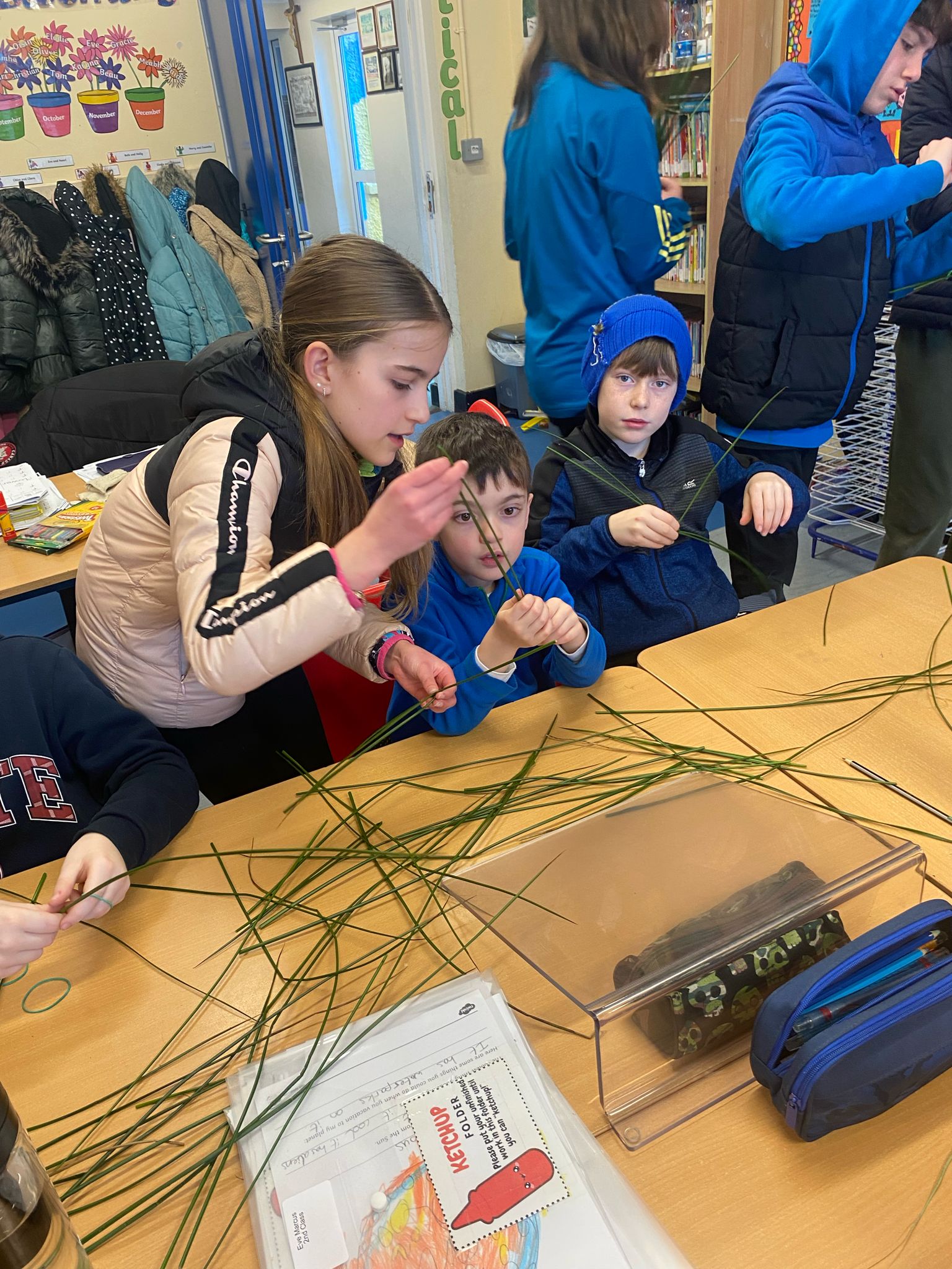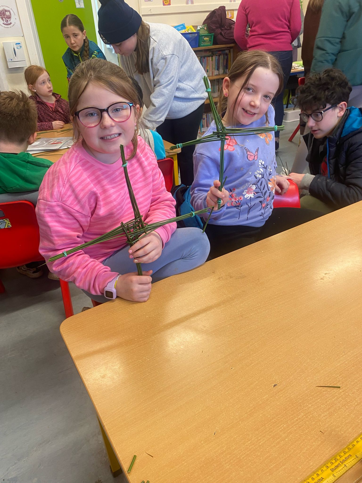 Well done to the children in 6th class who were on hand to help 1st class children make their St. Brigid’s crosses today. Beannachtaí Lá Fhéile Bríde from everyone i Rang a Sé!