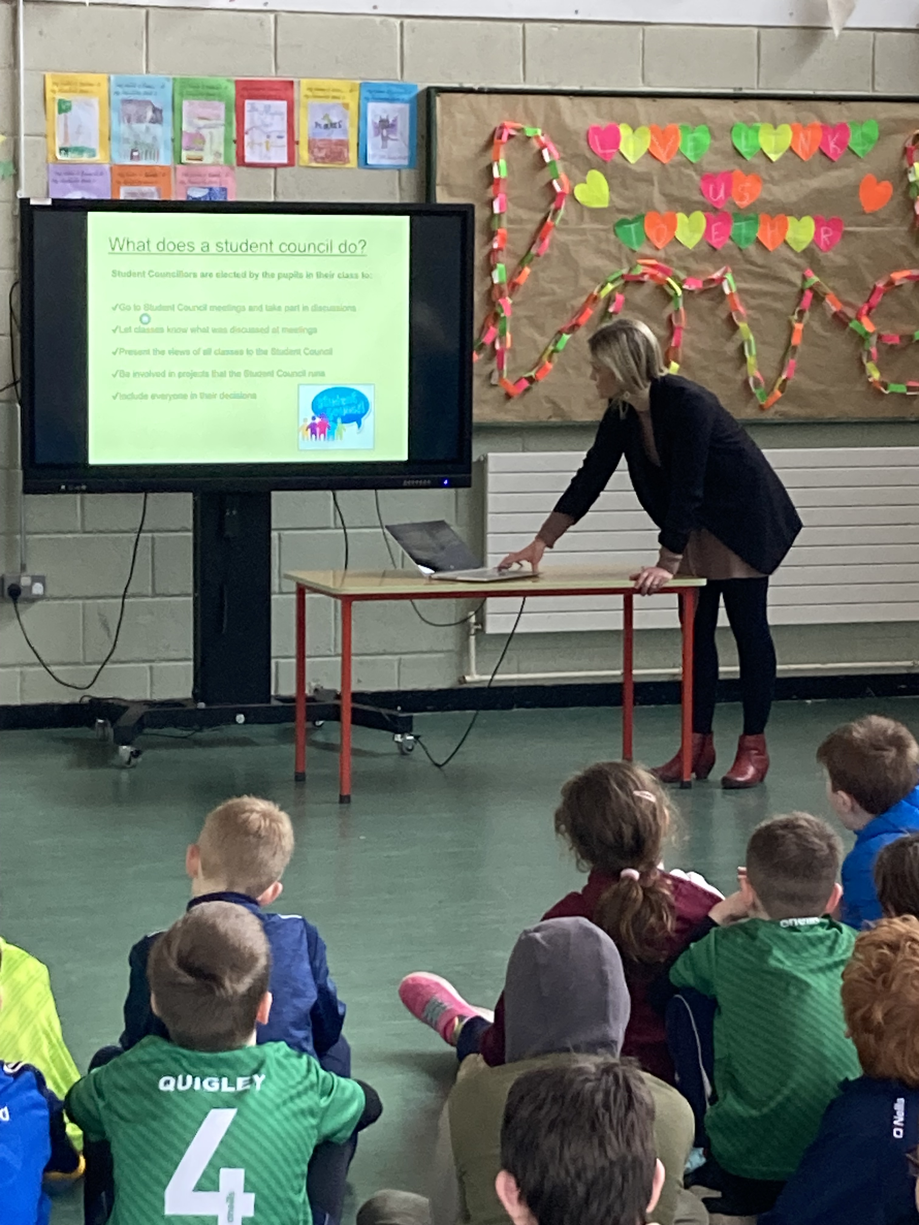 Post Covid, we are delighted to announce the return of our Student Council! The children were so excited last Friday, 24th February when a special assembly was held for 3rd to 6th classes, to reintroduce our Student Council. Ms. Walsh talked to the children about the qualities needed to make a good student councillor and the important role that a Student Council can play. She also explained to them how the election process will work.